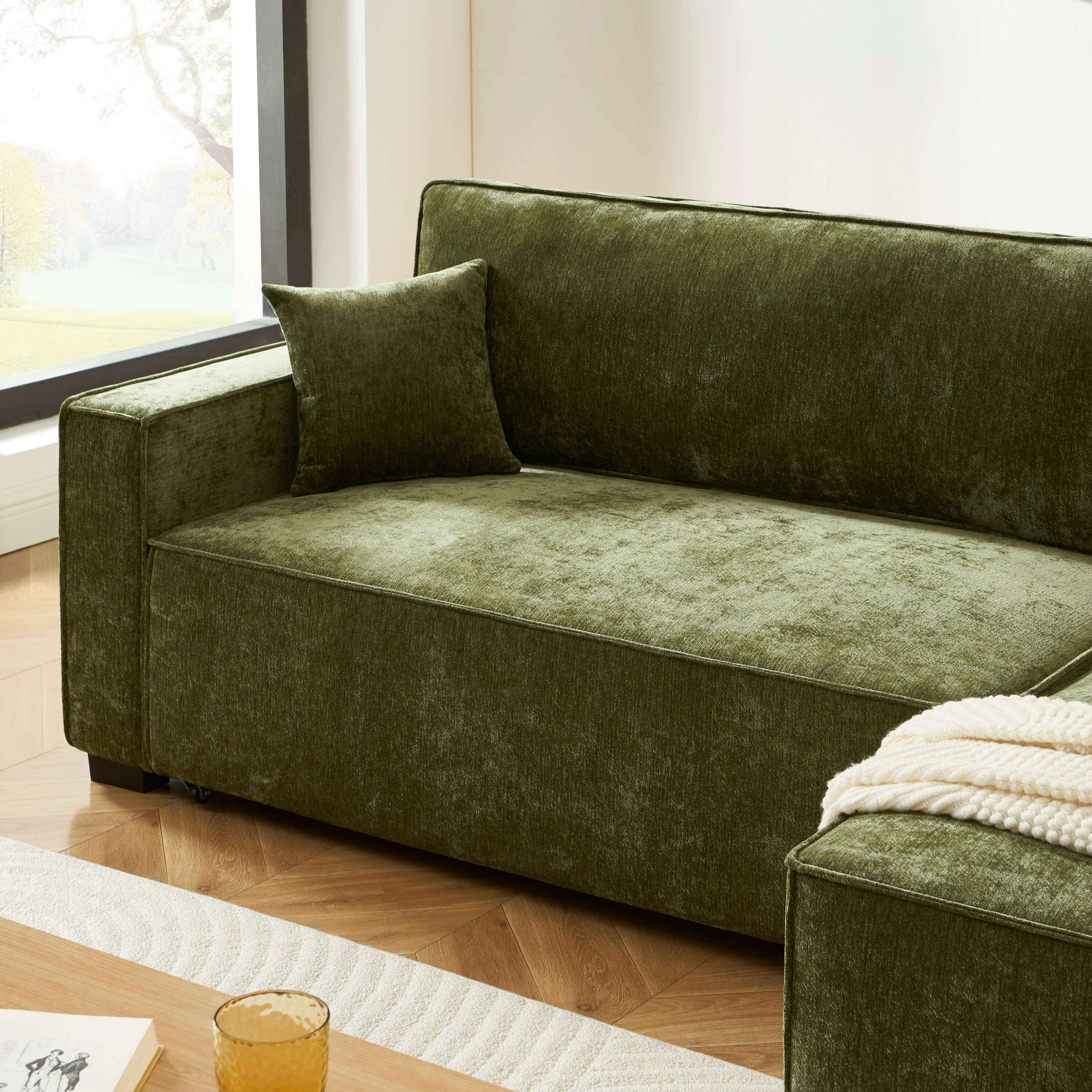 Wendbares Ecksofa GAVI mit Schlafplatz für 4 Personen, Stoff grün