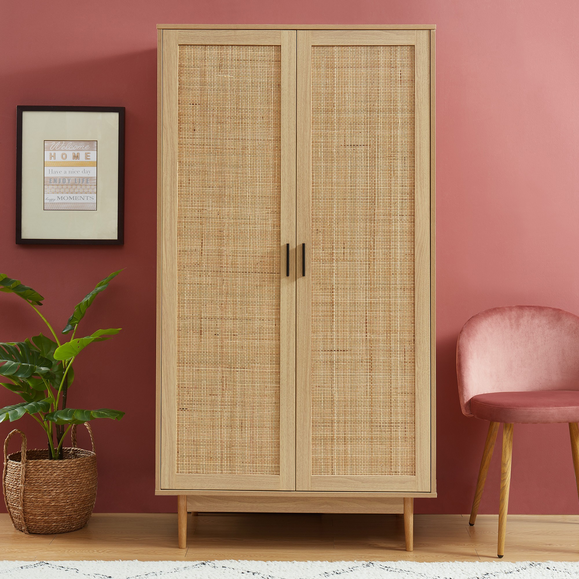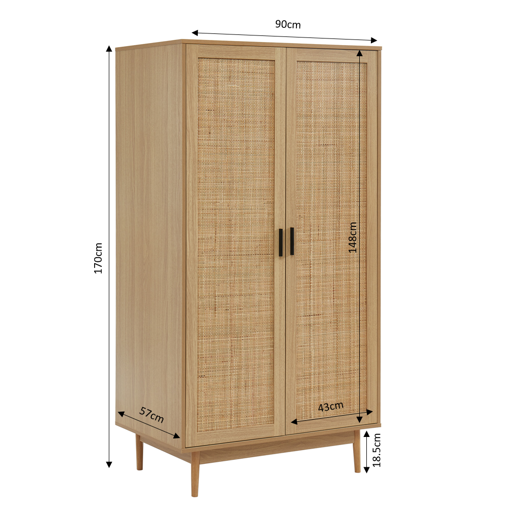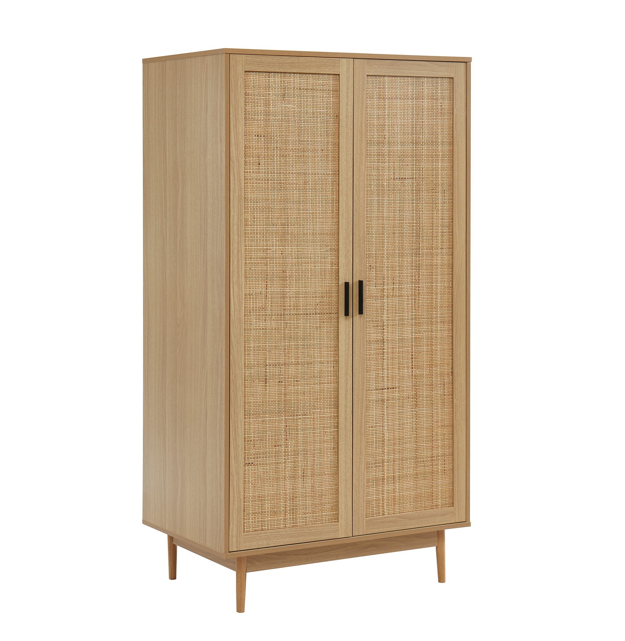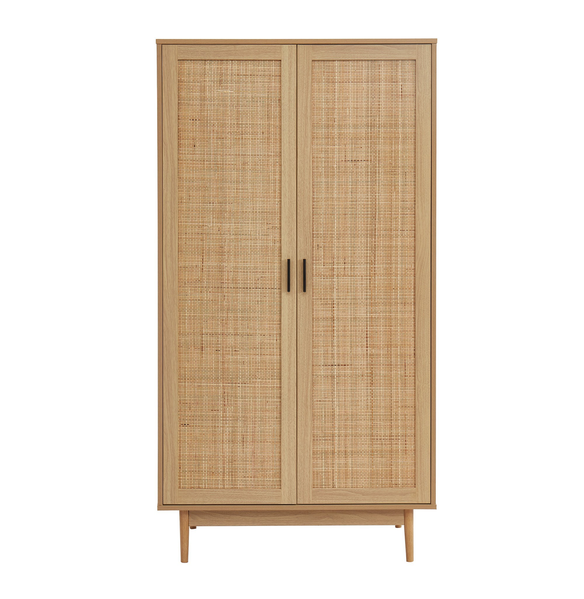 Schrank AMANA in Eichenoptik und Rattangeflecht 2 Türen h170cm