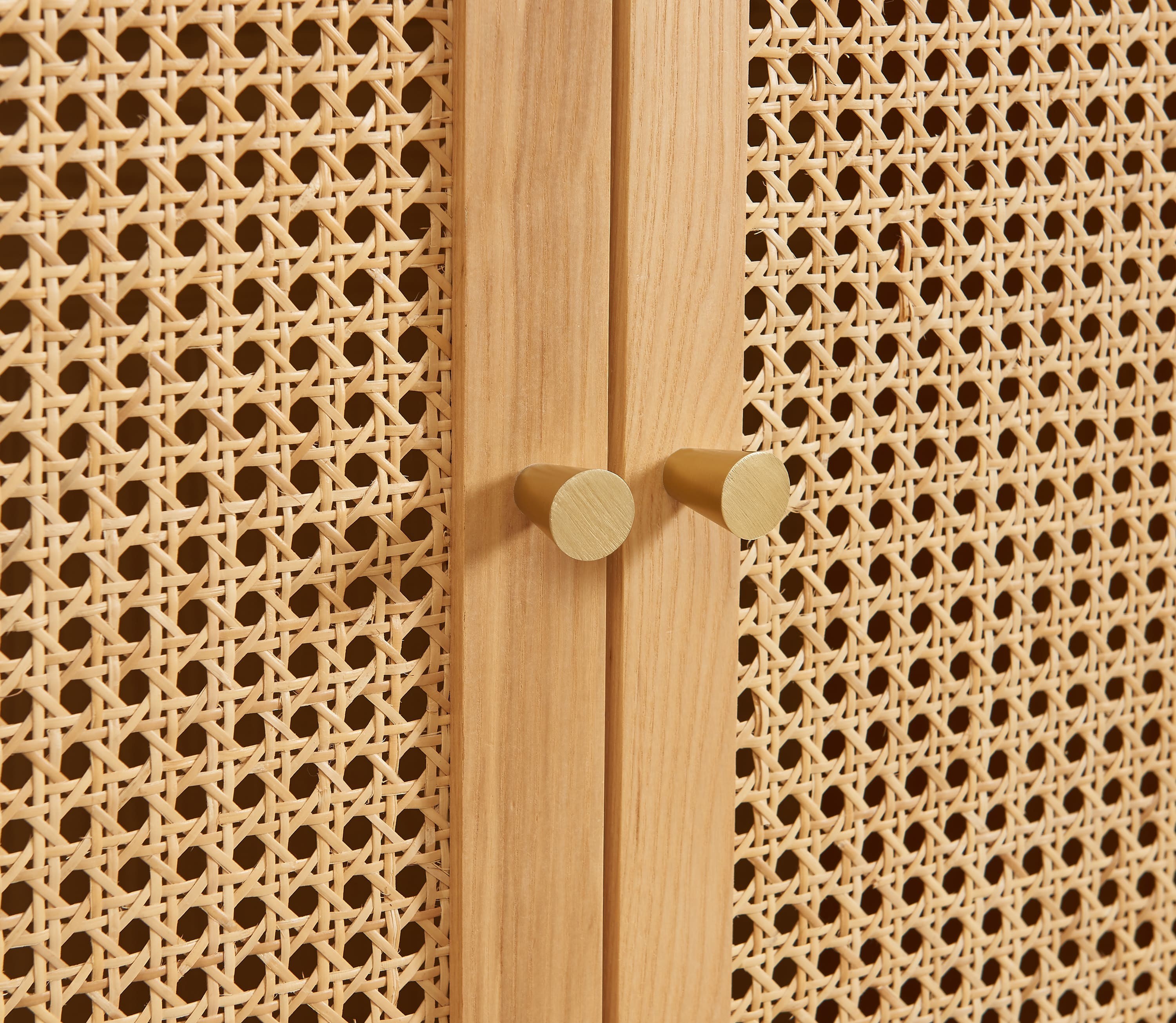 Schlagen Sie zu wegen seiner 2 Türen aus natürlichem Rattangeflecht, sowie seinen Füßen und Griffen aus goldfarbenem Messingfinish, die ganz im Trend der Zeit liegen.