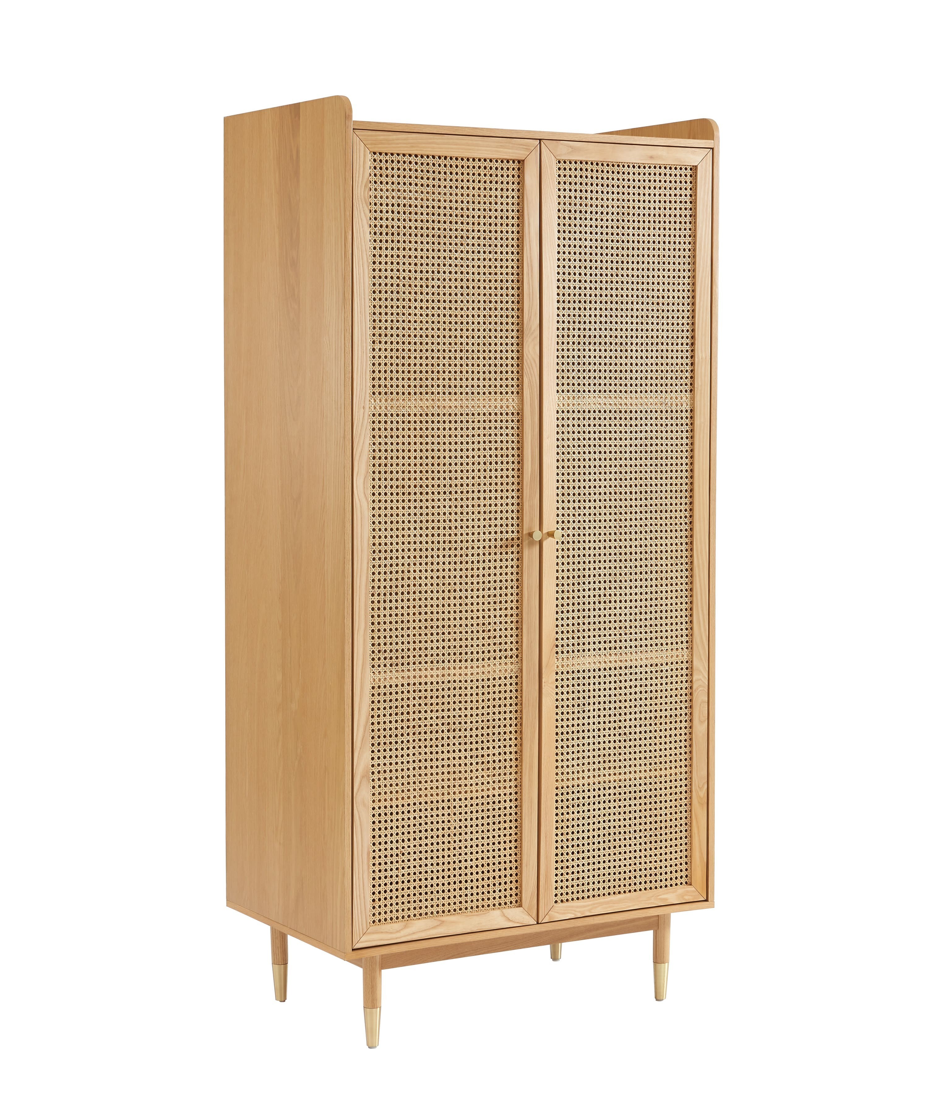Schrank AMANA in Eichenoptik und Rattangeflecht 2 Türen h170cm
