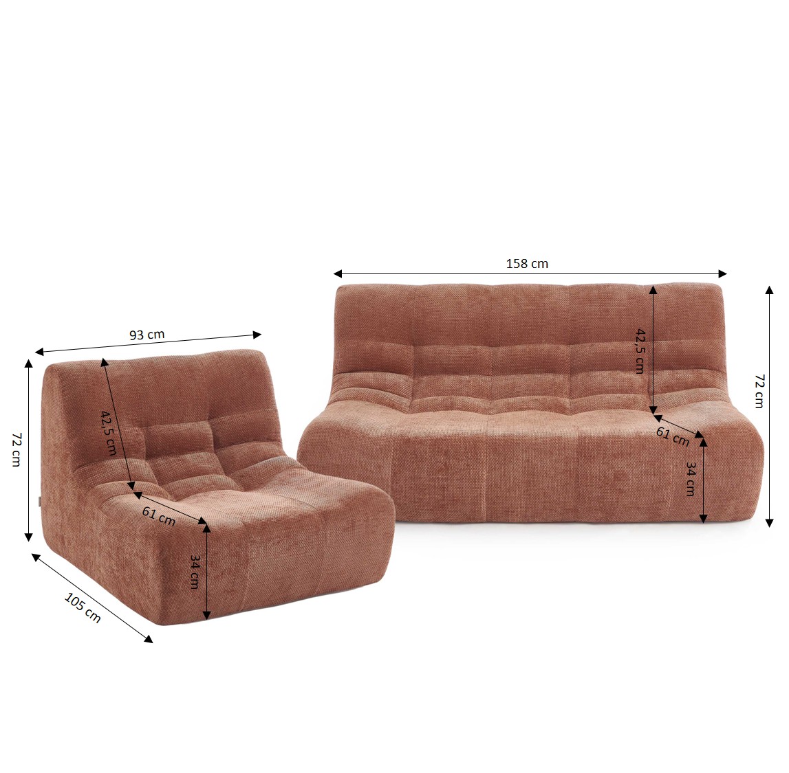 Modulares 3-Sitzer-Set JANIS mit Bank und Sessel, Stoff Chenille terrakotta