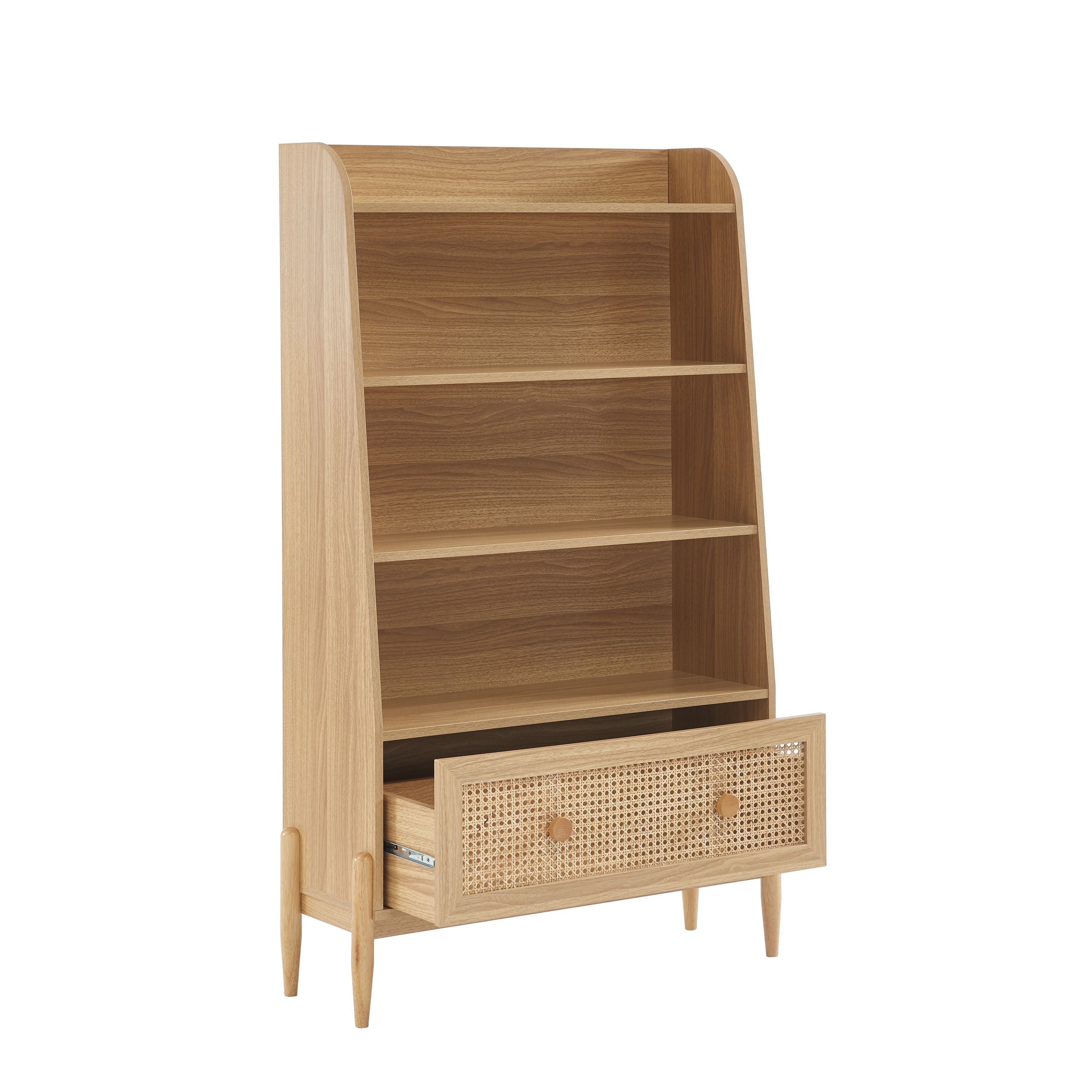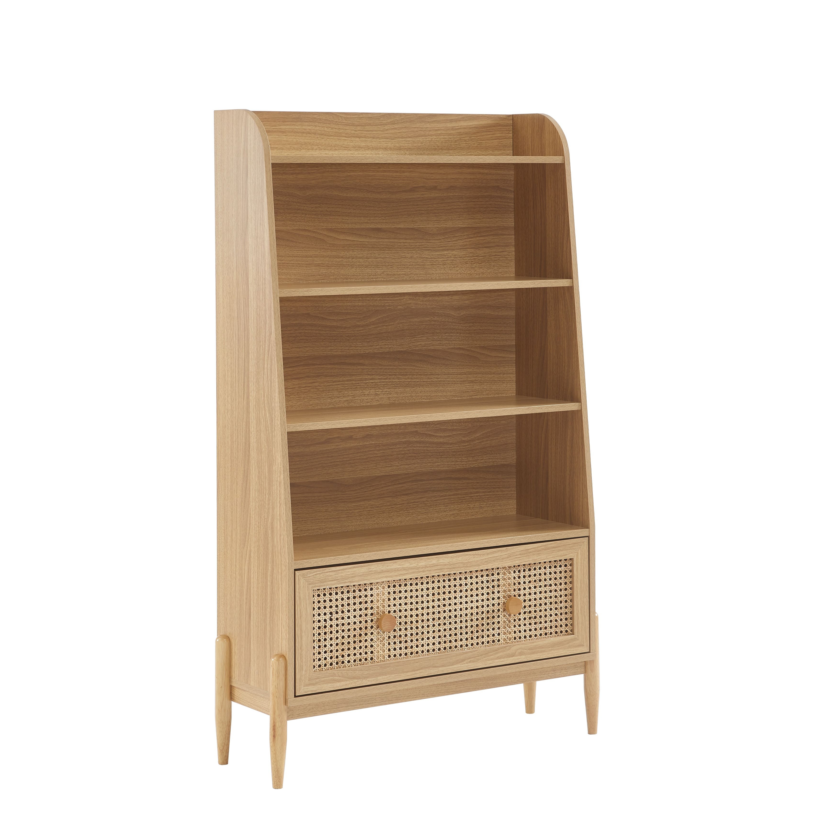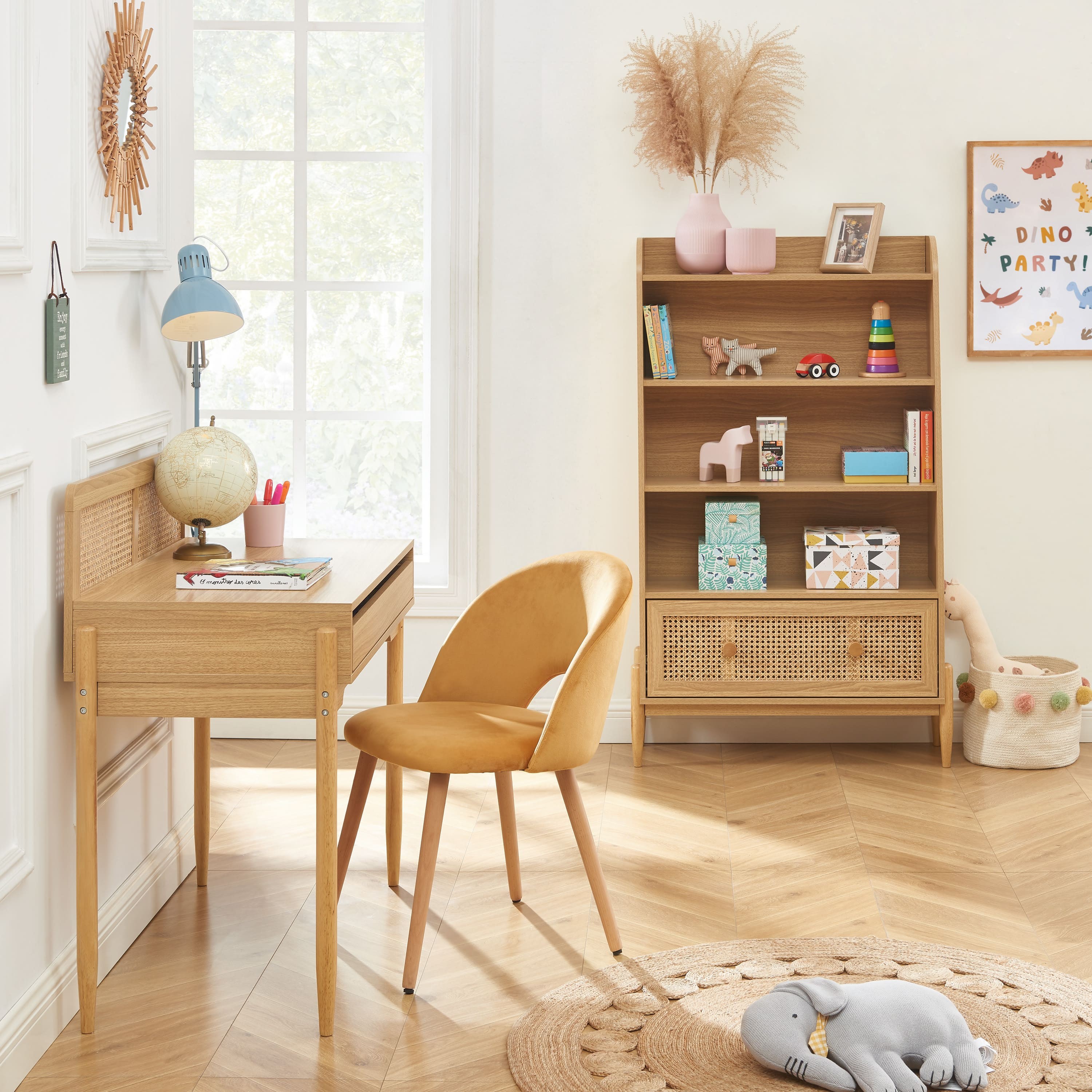 Mit seinen drei Regalen und der Schublade aus Rohrgeflecht bietet dieses Bücherregal viel Platz für die Bücher, Spielsachen und Lieblingsstücke Ihres Kindes. Die Regale sind perfekt dimensioniert, um Bücher aller Größen aufzunehmen, während die Schublade Platz für kleine Schätze und persönliche Gegenstände bietet. Dies macht es zu einem vielseitigen Möbelstück, das ideal ist, um die Organisation und Kreativität Ihres Kindes zu fördern.