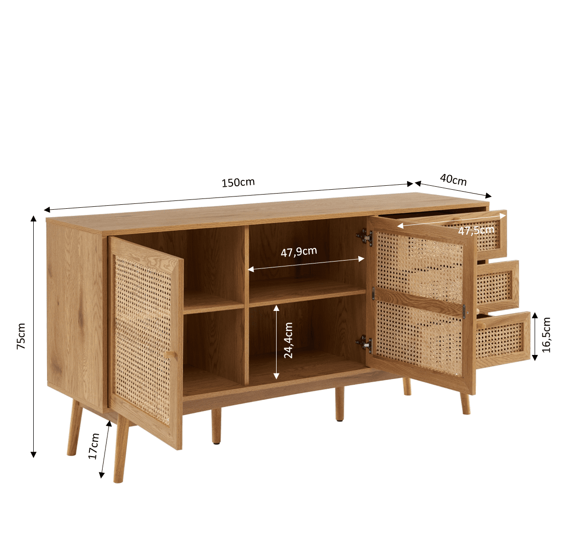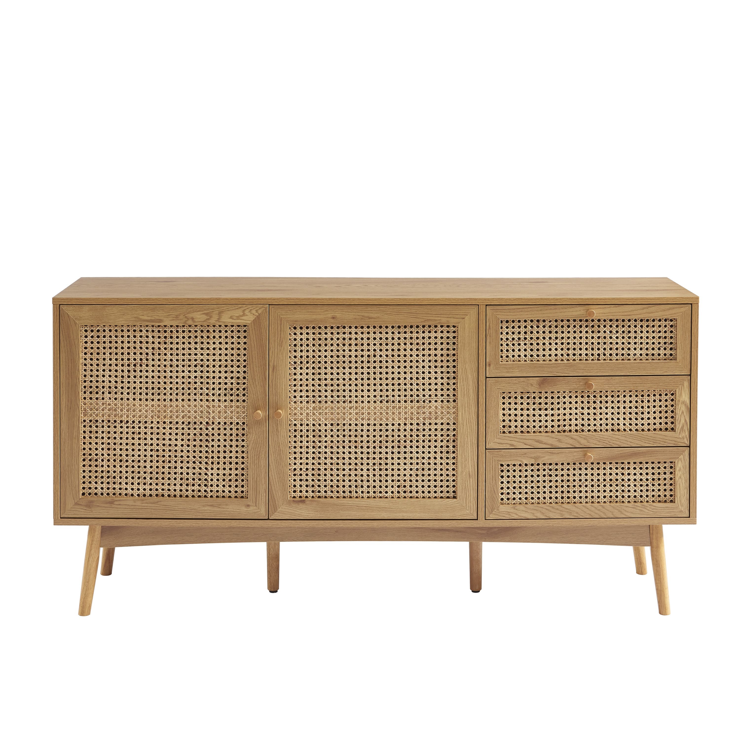 Anrichte INES mit Eichenholz und Rattangeflecht l150cm