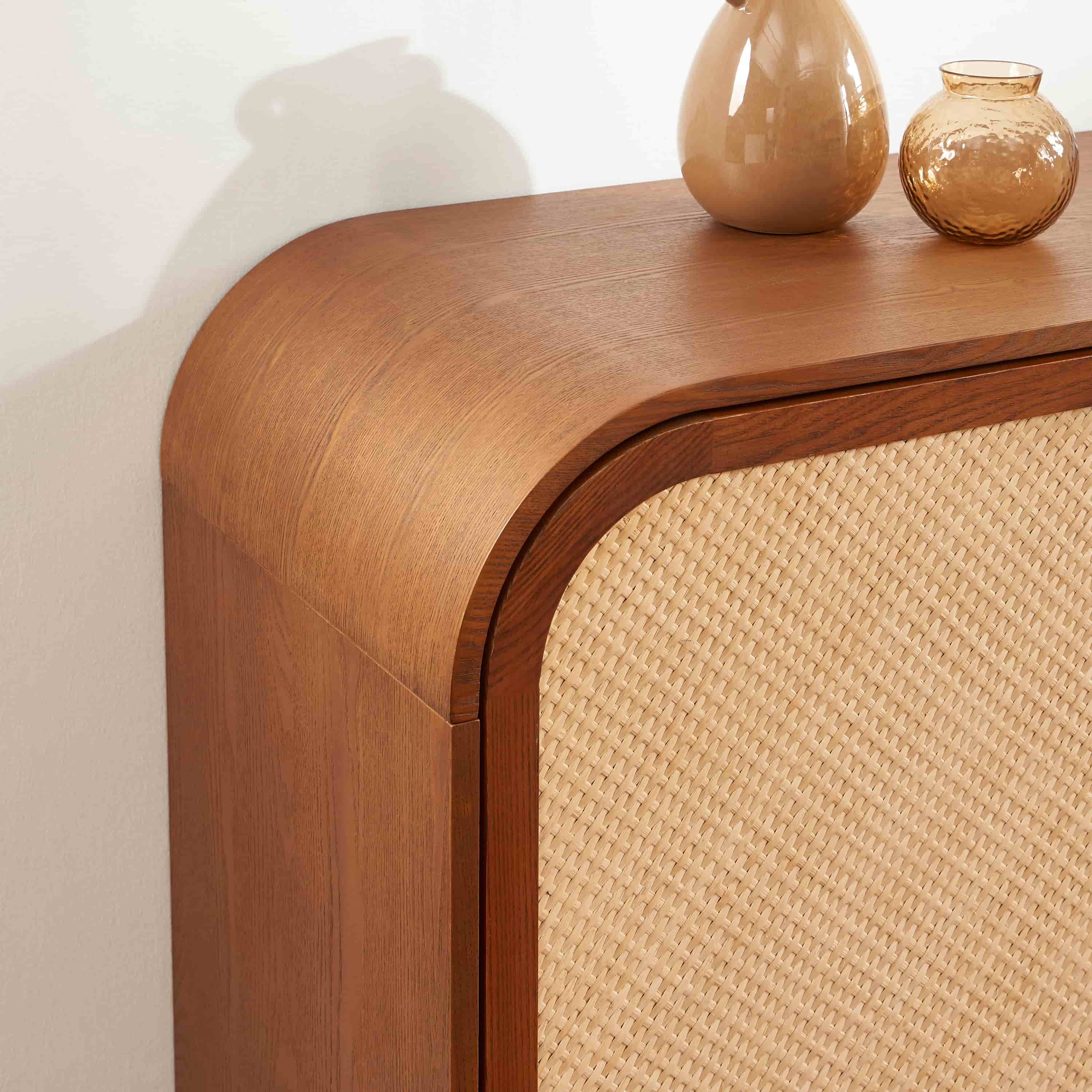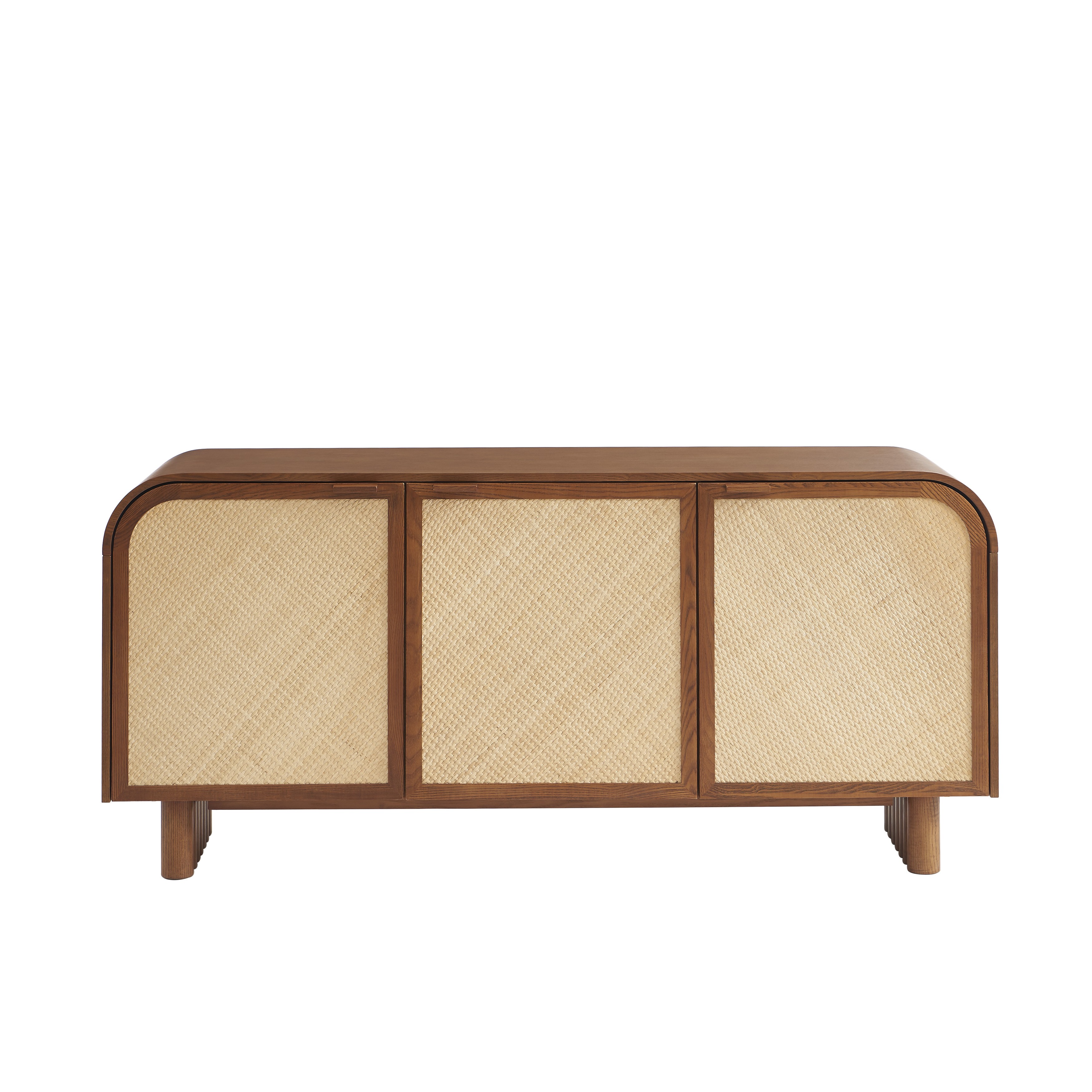 Das 3-türige LUA Buffet ist dank seines Designs und seiner edlen Materialien eine echte Bereicherung für Ihr Zuhause. Aus robustem MDF mit Eschenfurnier gefertigt, vereint dieses Sideboard die Authentizität von Naturholz mit der Eleganz von Rohrgeflecht. Das Design und die Verarbeitung machen es zur idealen Wahl für eine moderne und warme Einrichtung.