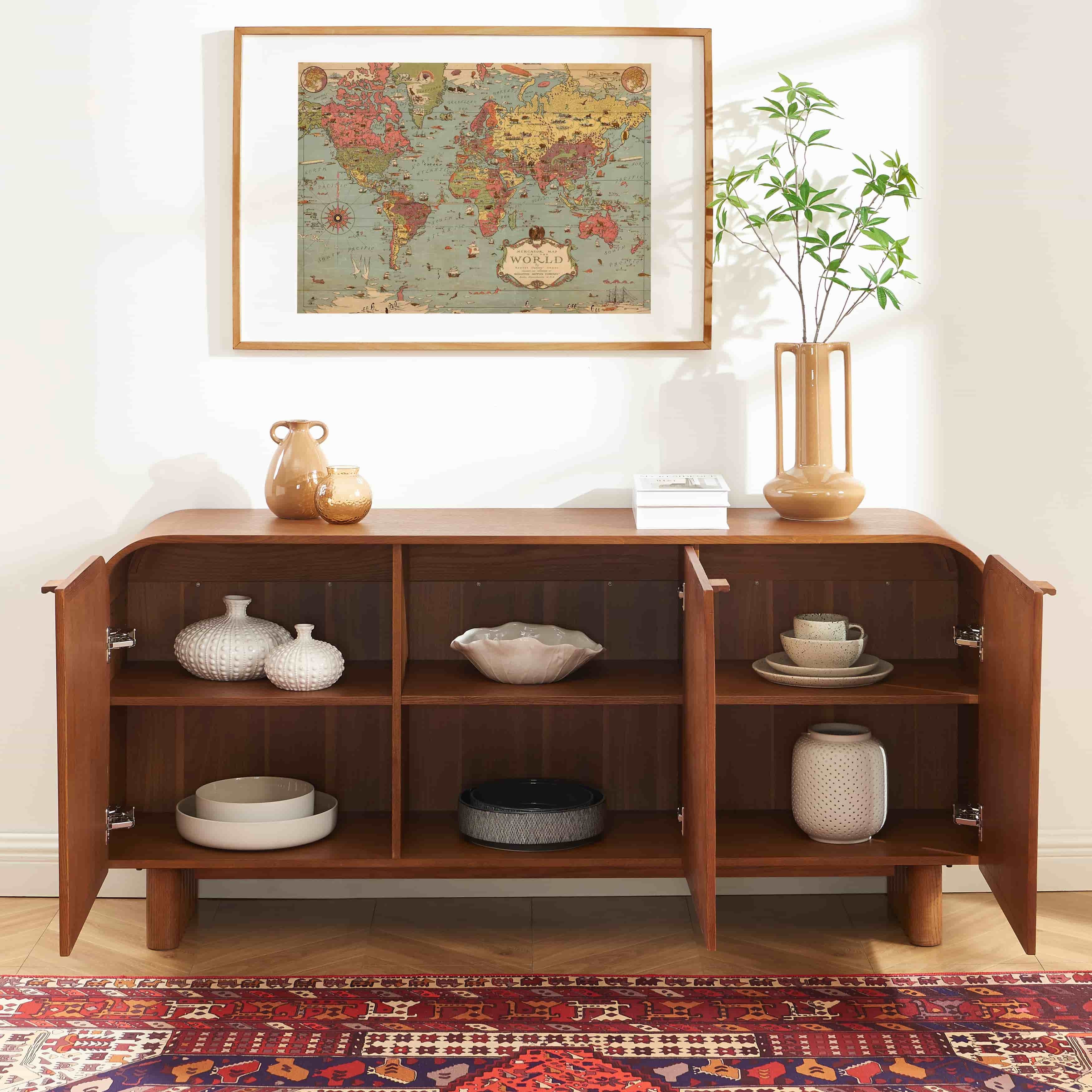 Mit seinen 3 Türen bietet Ihnen das LUA Sideboard viel Stauraum, um Ihre Sachen zu organisieren. In jedem Fach können Sie Geschirr, Dekorationsartikel oder Alltagsgegenstände aufbewahren. Praktisch und funktional, hilft es Ihnen, Ihr Zuhause ordentlich zu halten und gleichzeitig einen Hauch von Stil zu verleihen.