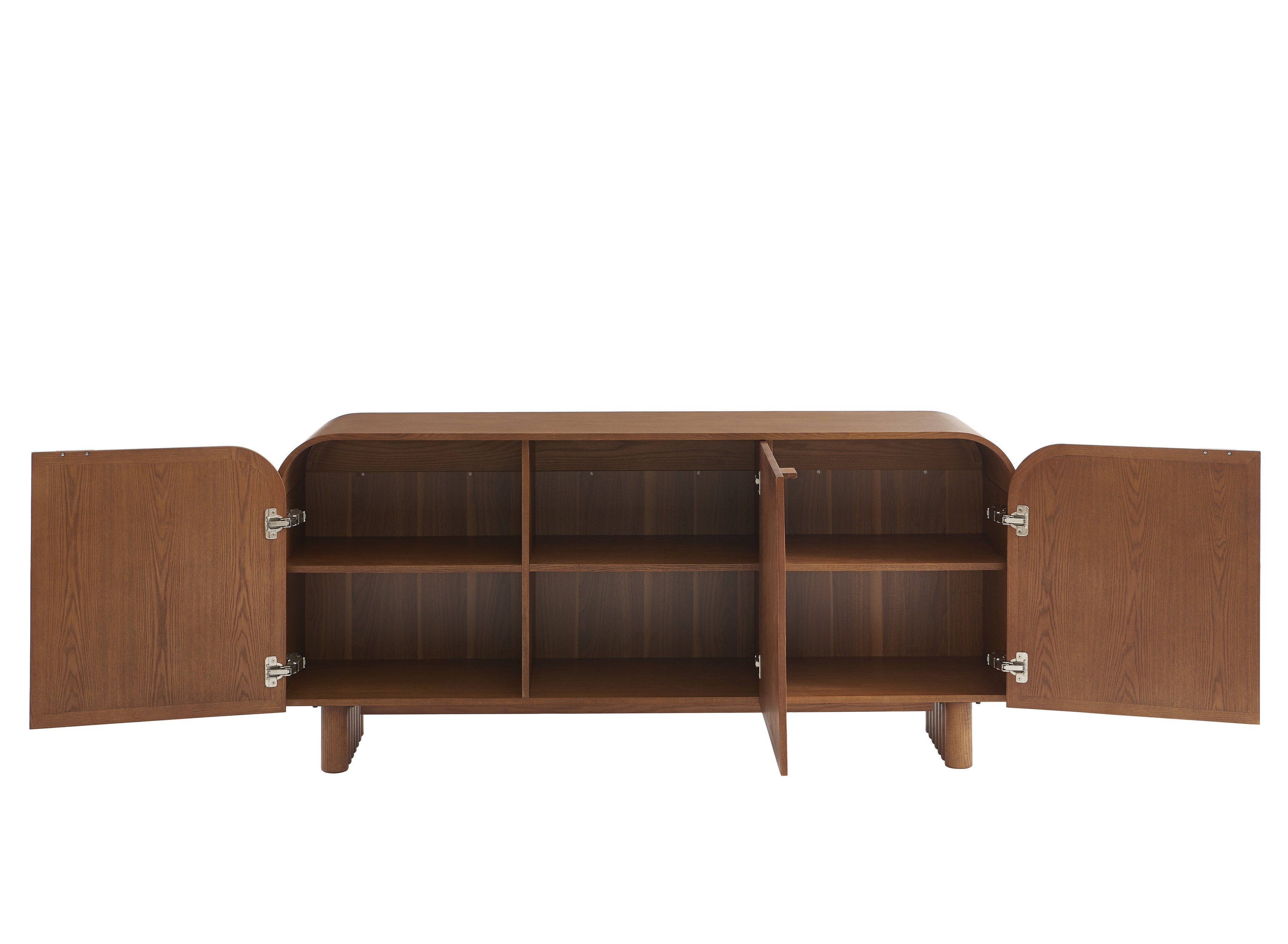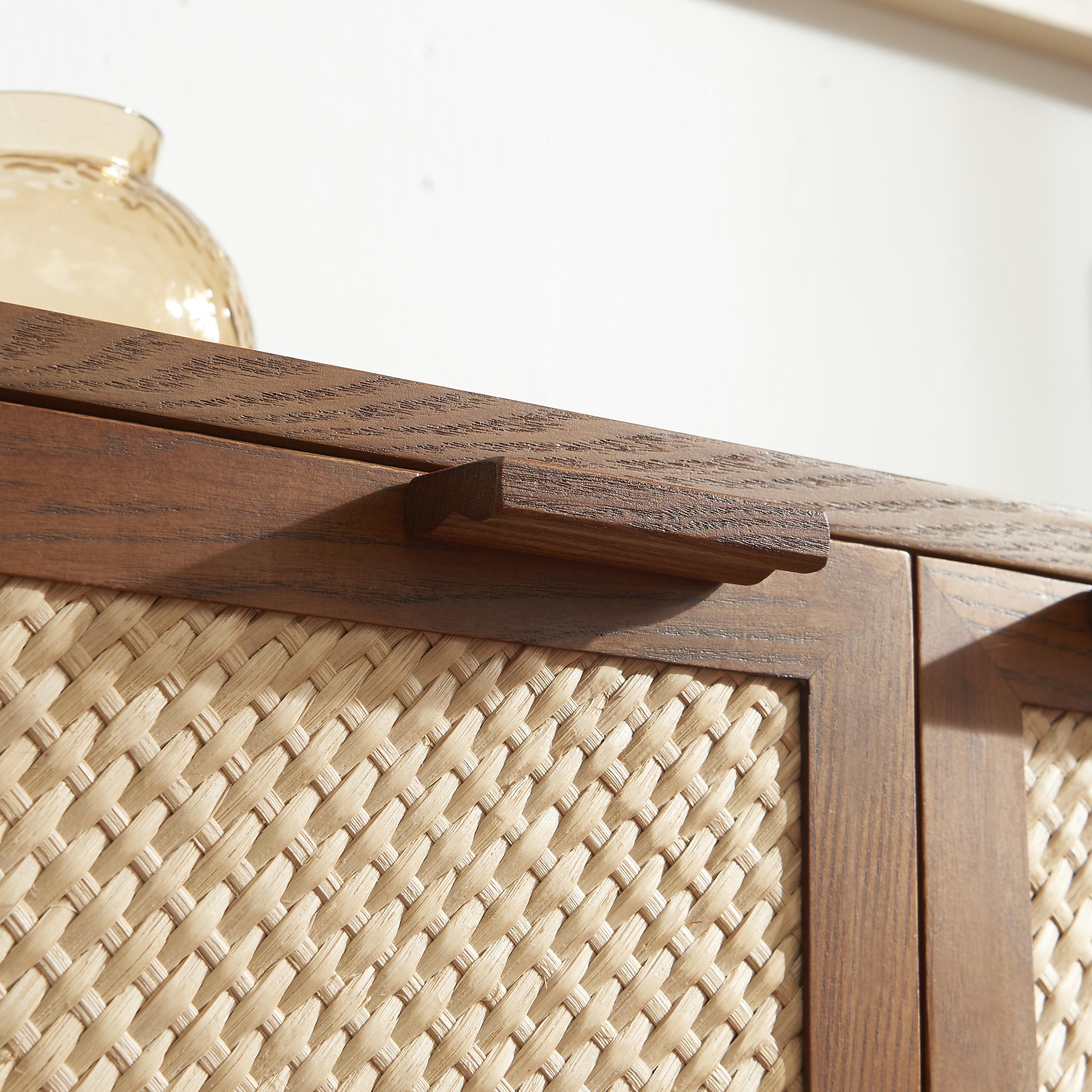 Das LUA Sideboard ist nicht nur funktional: seine Griffe und sein Gestell aus Massivholz verleihen ihm einen zusätzlichen Hauch von Raffinesse. Das Rohrgeflecht in Kombination mit dem Eschenfurnier verleiht Ihrer Dekoration ein Spiel der Texturen.
