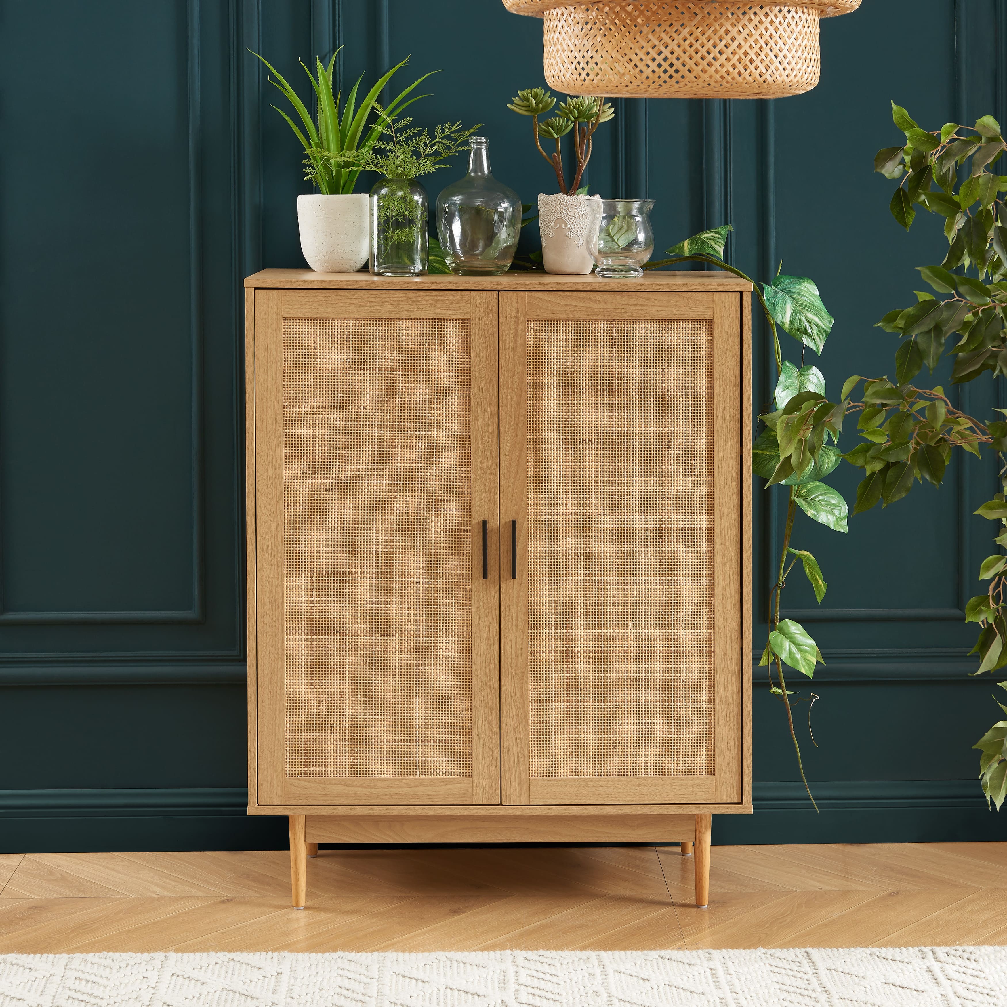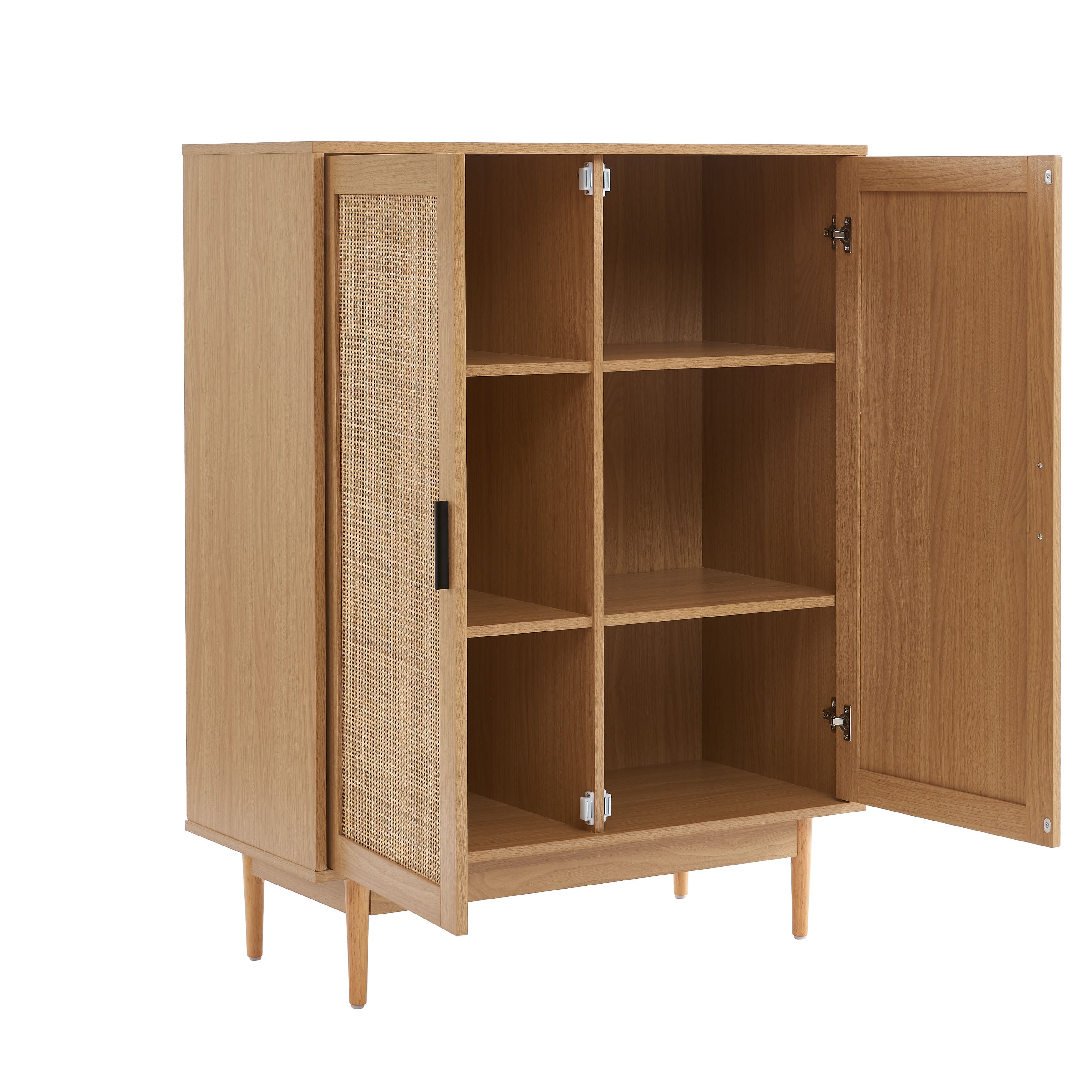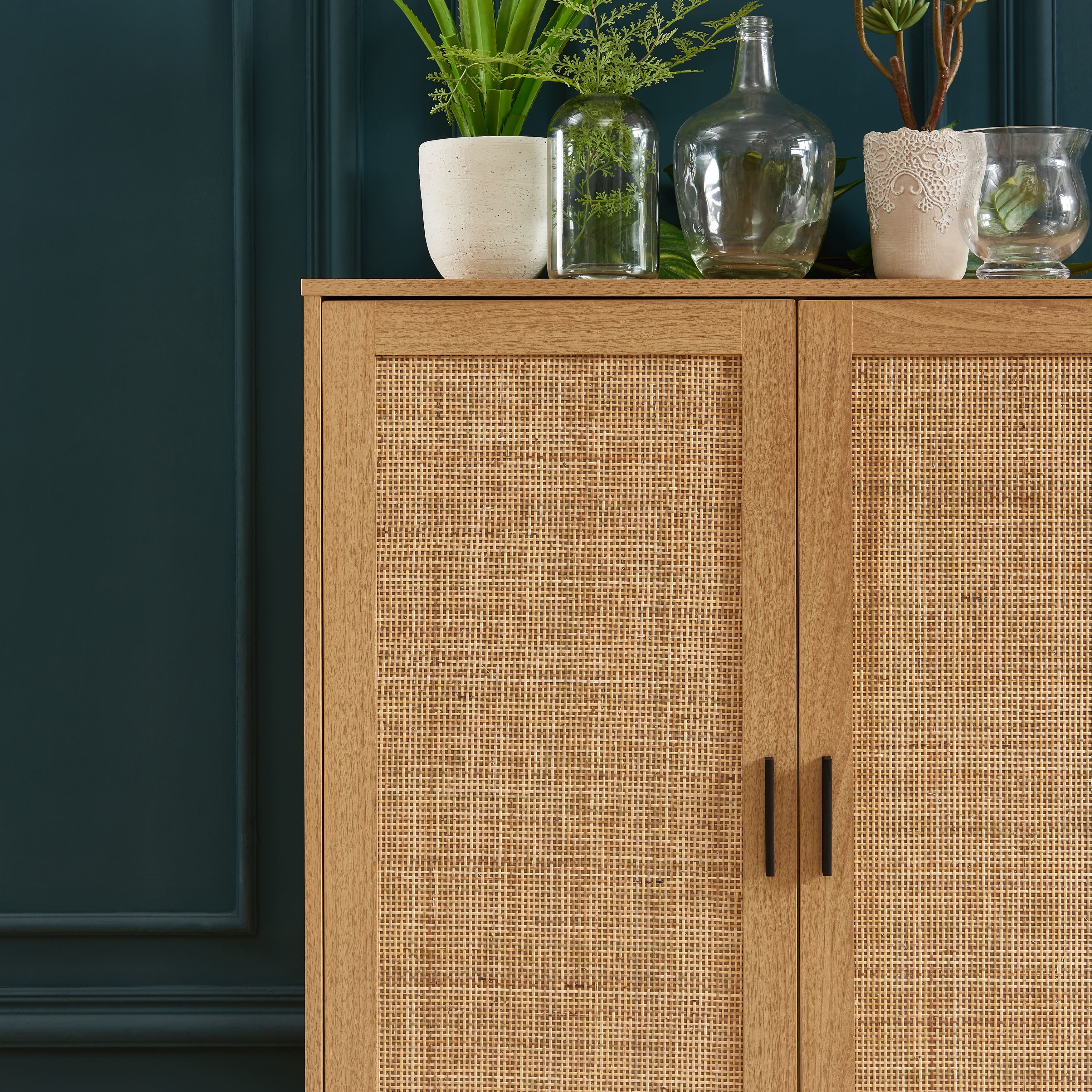 Highboard AMANA in Eichenoptik und Rattangeflecht, 2 Türen