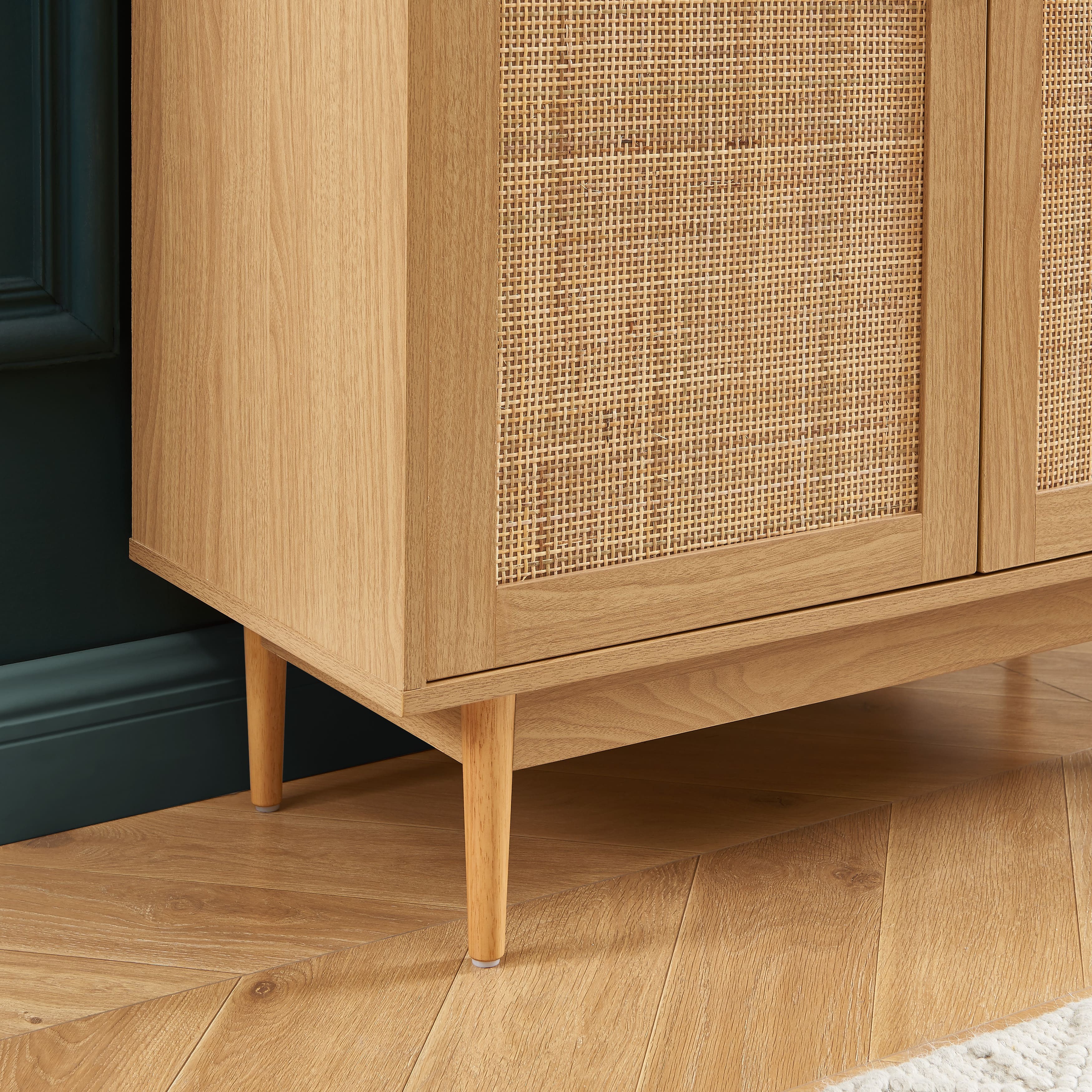 Das Sideboard AMANA besticht durch seine beiden Türen aus geflochtenem Rohrgeflecht, einem zeitlosen Material, das Ihrem Zuhause eine natürliche und handgefertigte Note verleiht. Das Rohrgeflecht vermittelt eine raue und authentische Ästhetik und schafft eine einladende und ruhige Atmosphäre. Dieses einzigartige Finish verleiht einen Hauch von Raffinesse und erinnert an die Schönheit der Natur.