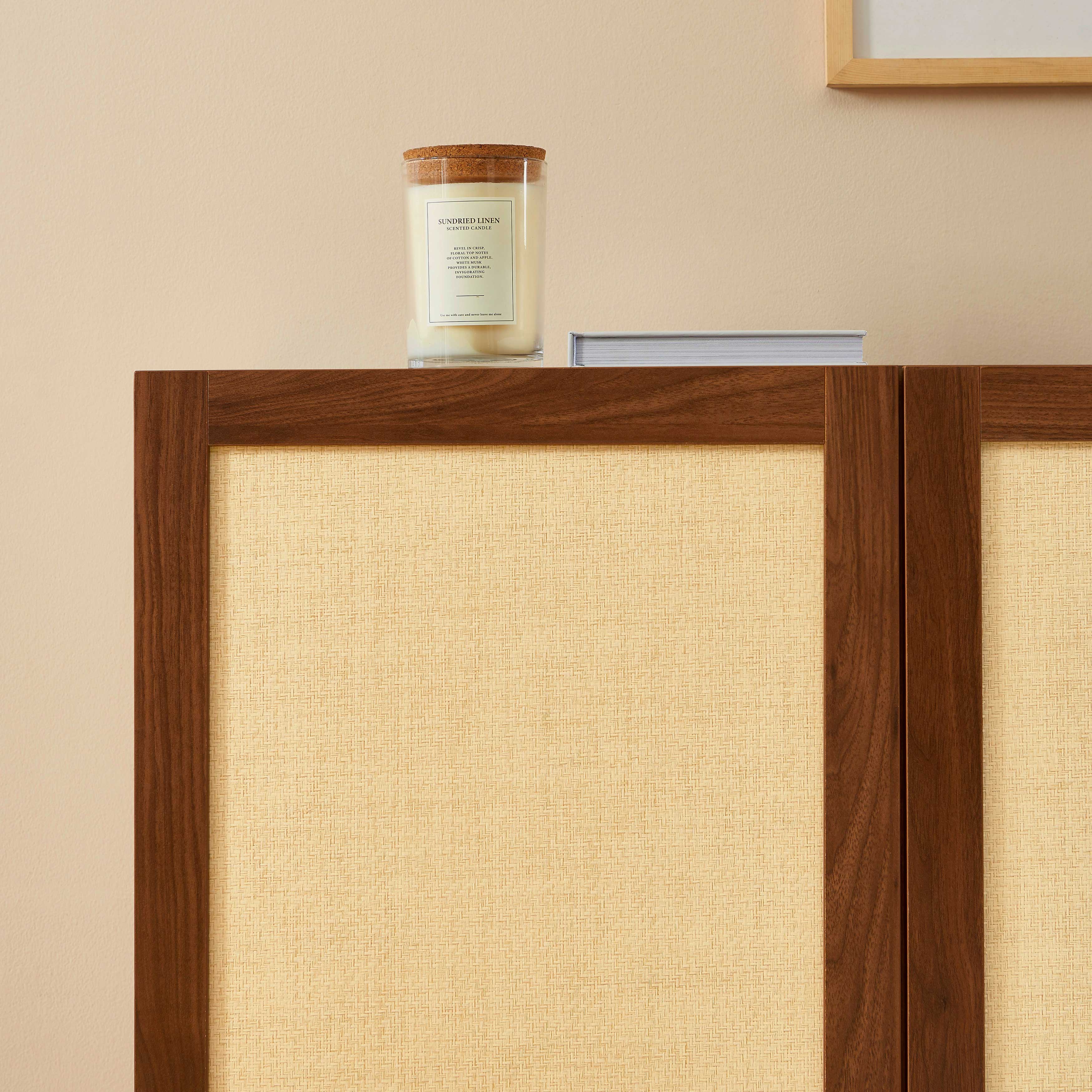 Perfekte Kombination aus Nussbaumfarbe und natürlichem Rattan