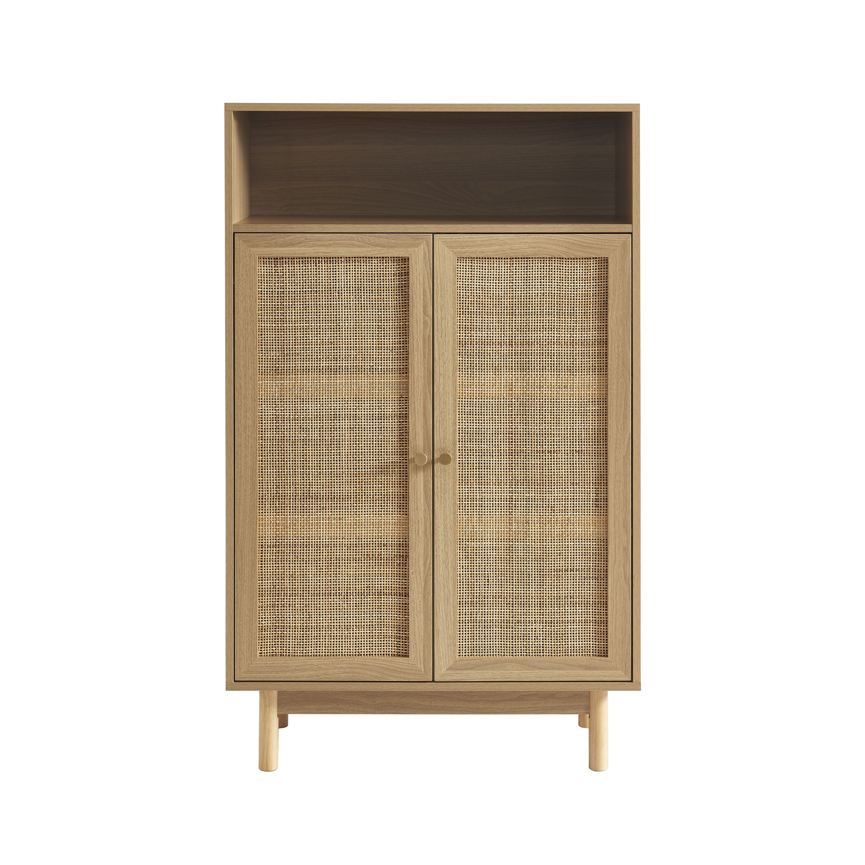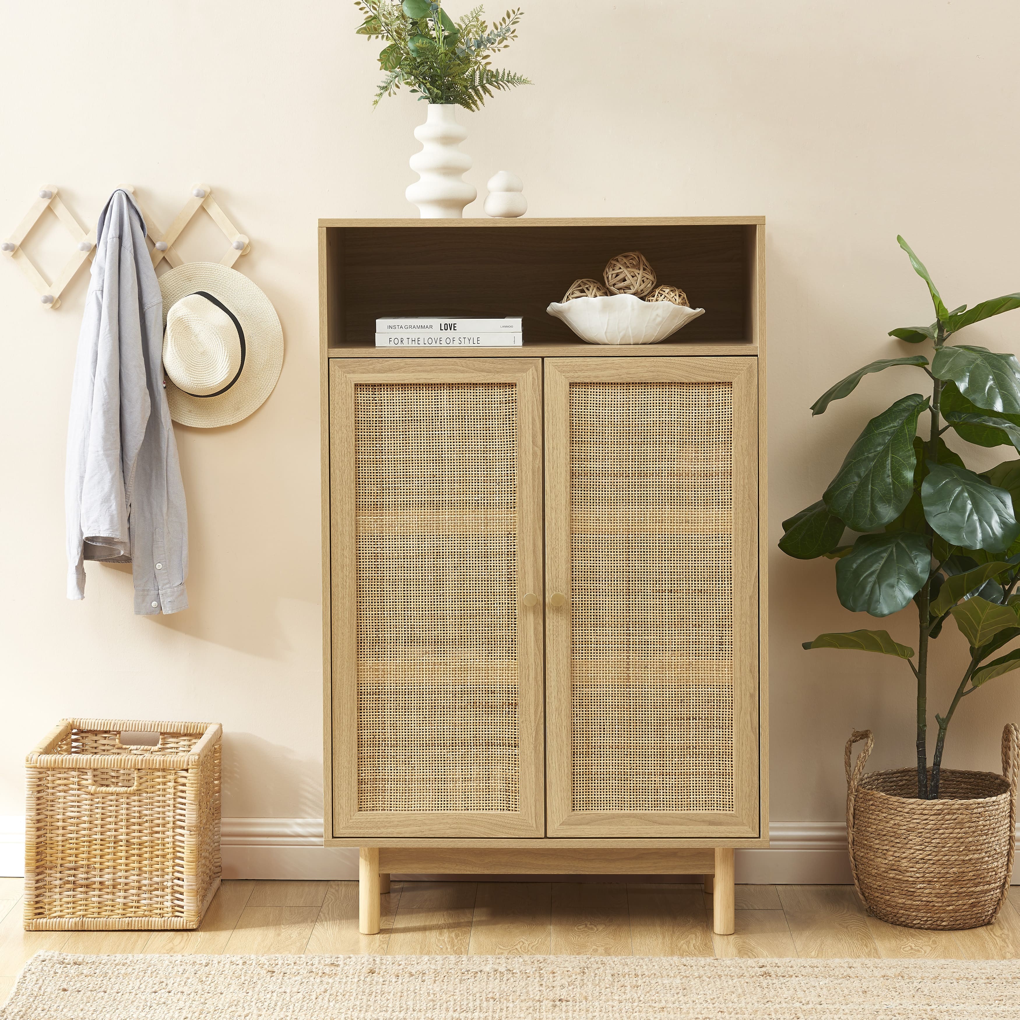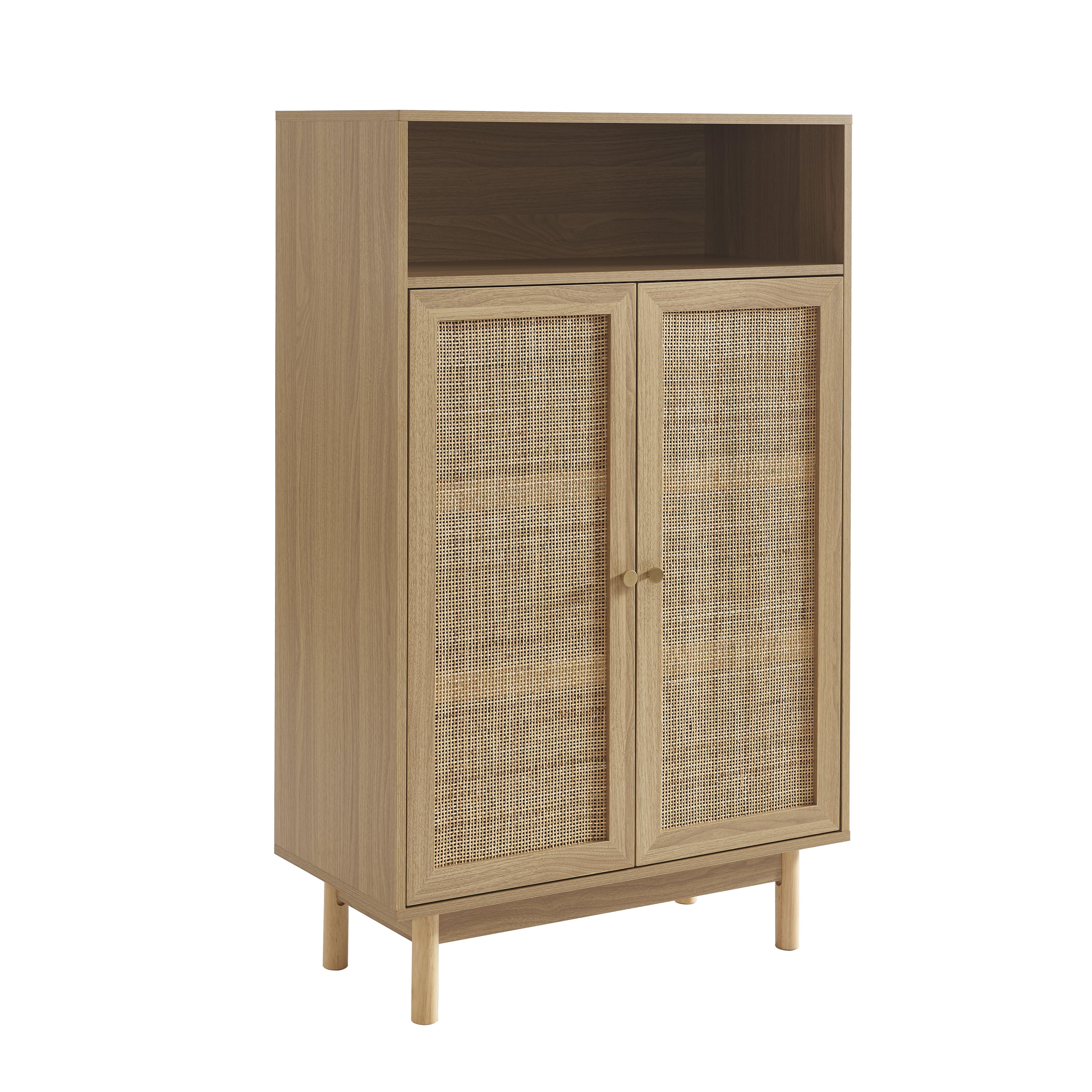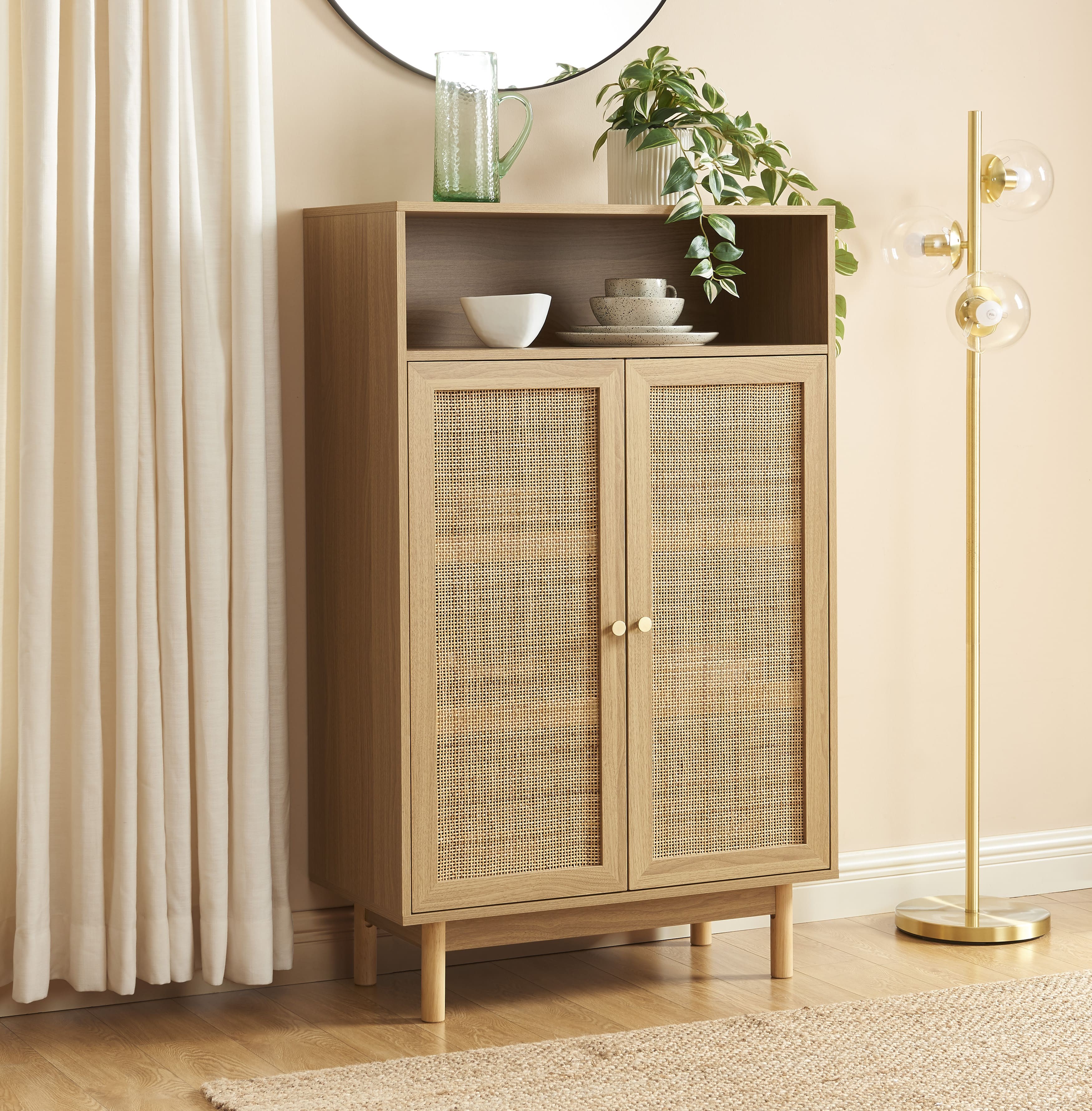 Sideboard HELENA in Eichenoptik und Rattangeflecht 2 Türen 80 cm