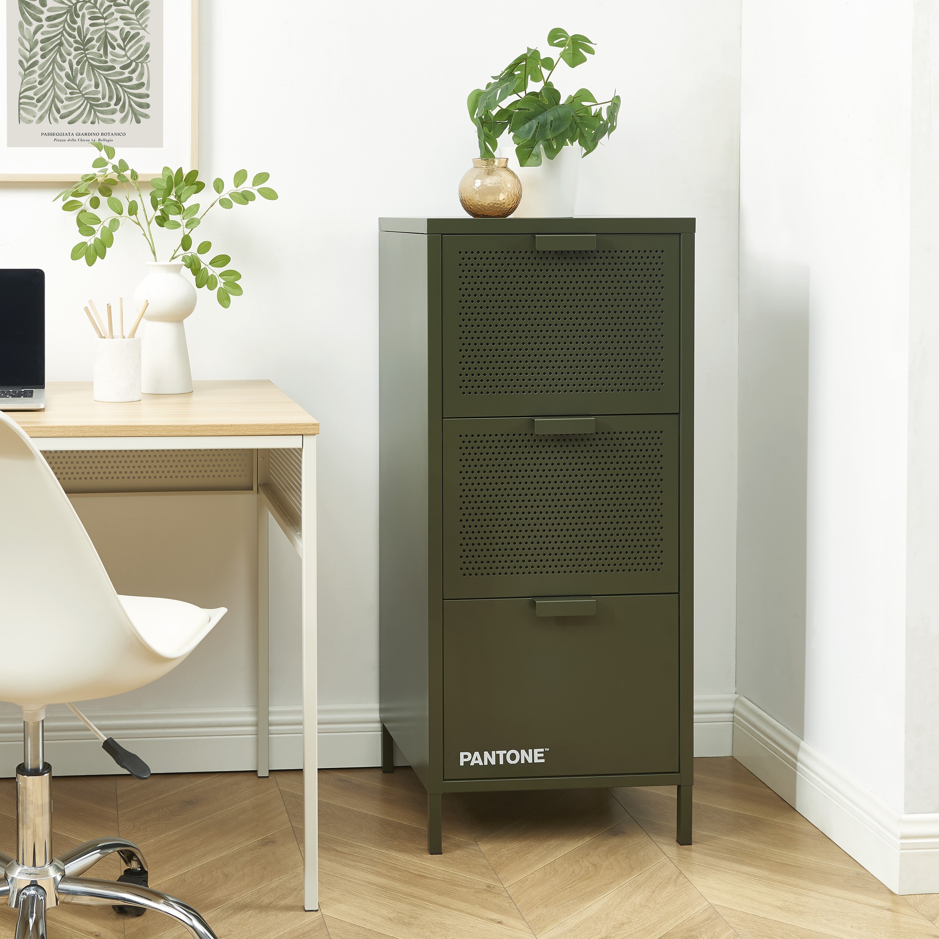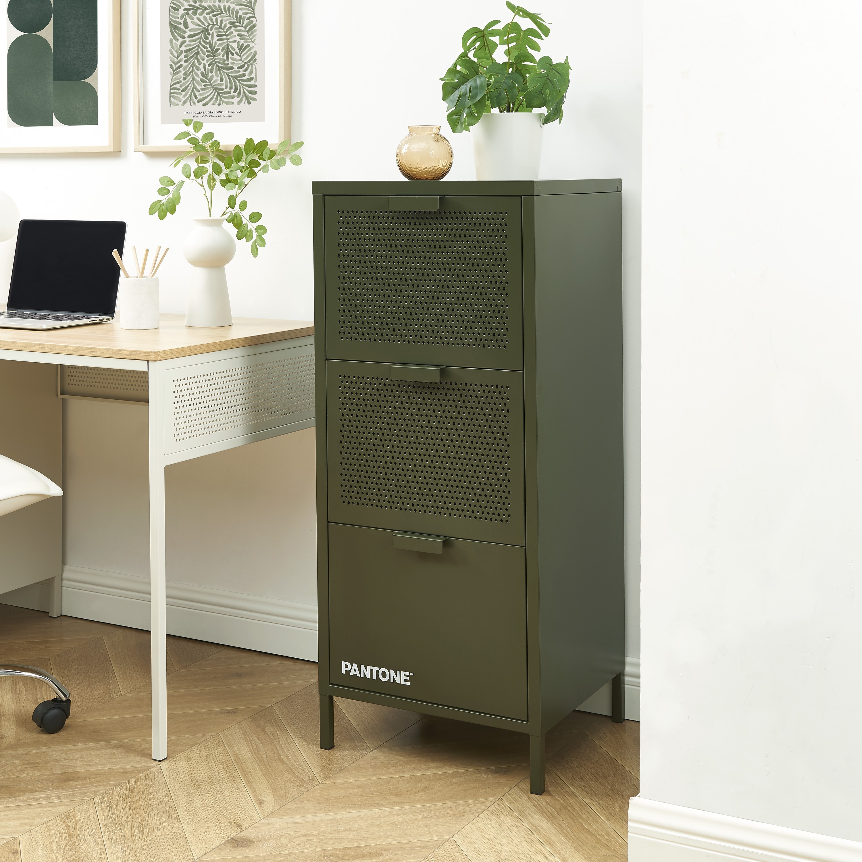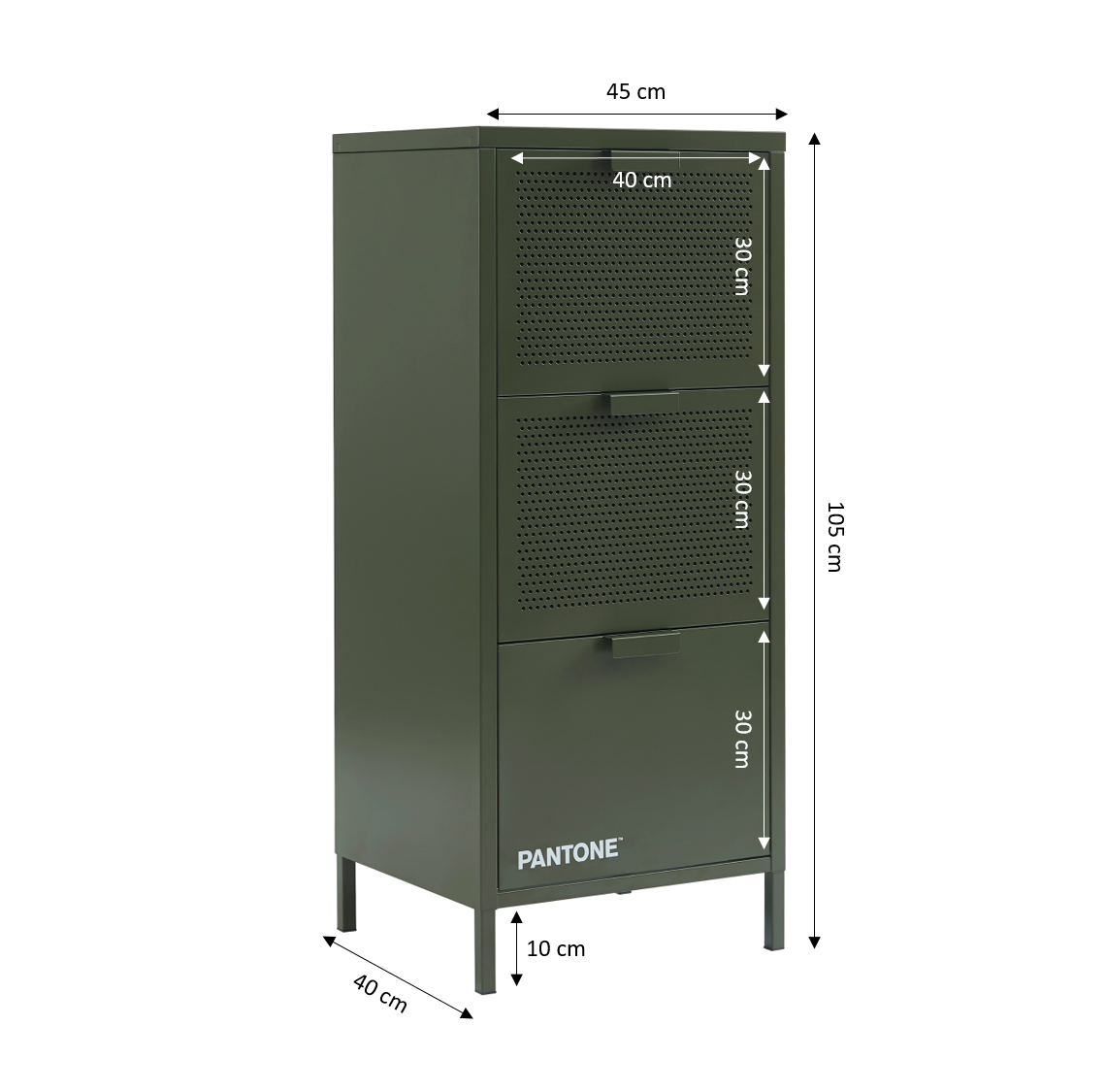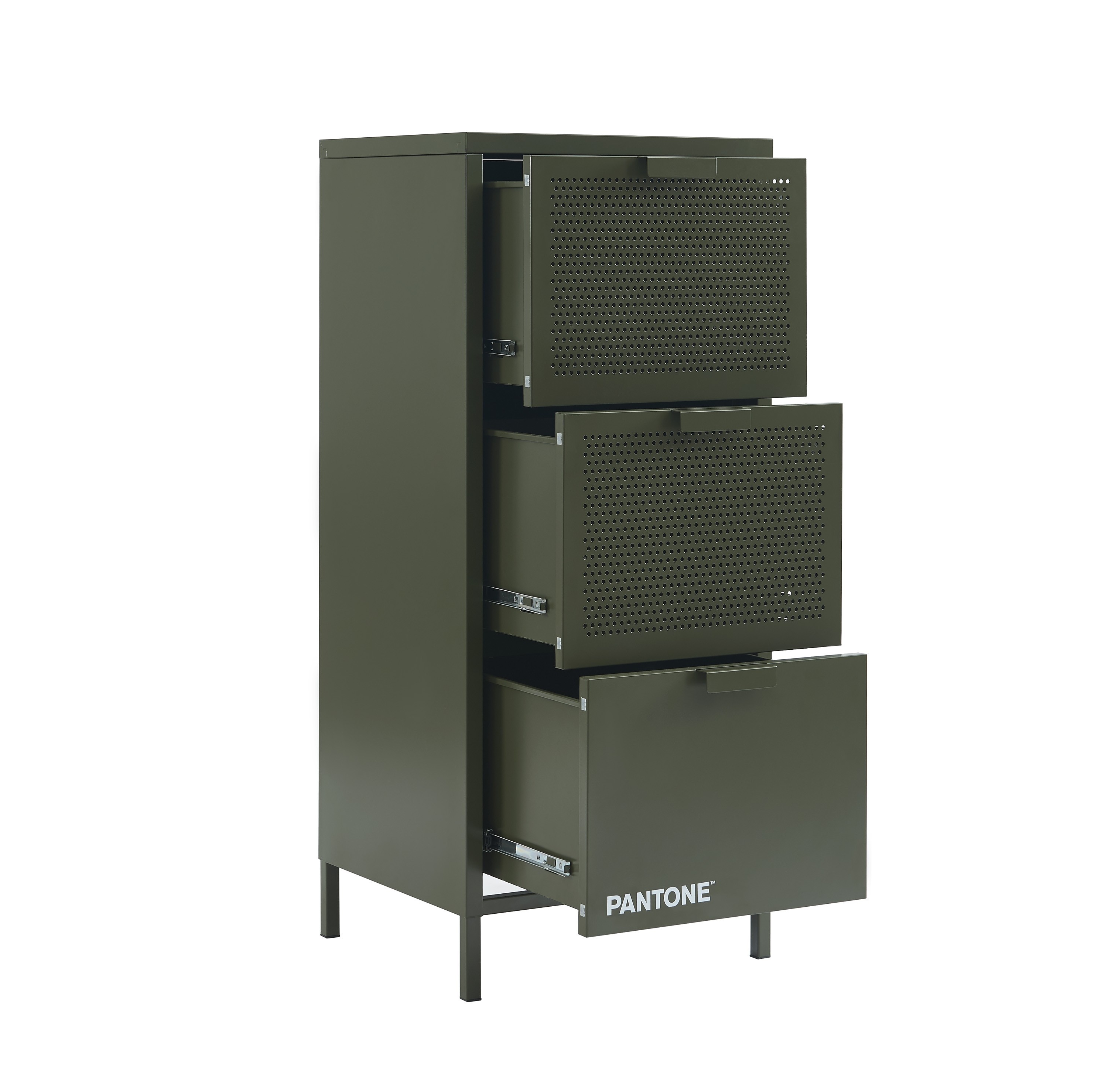 Schrank PANTONE Metall olivgrün 3 Schubladen h105cm