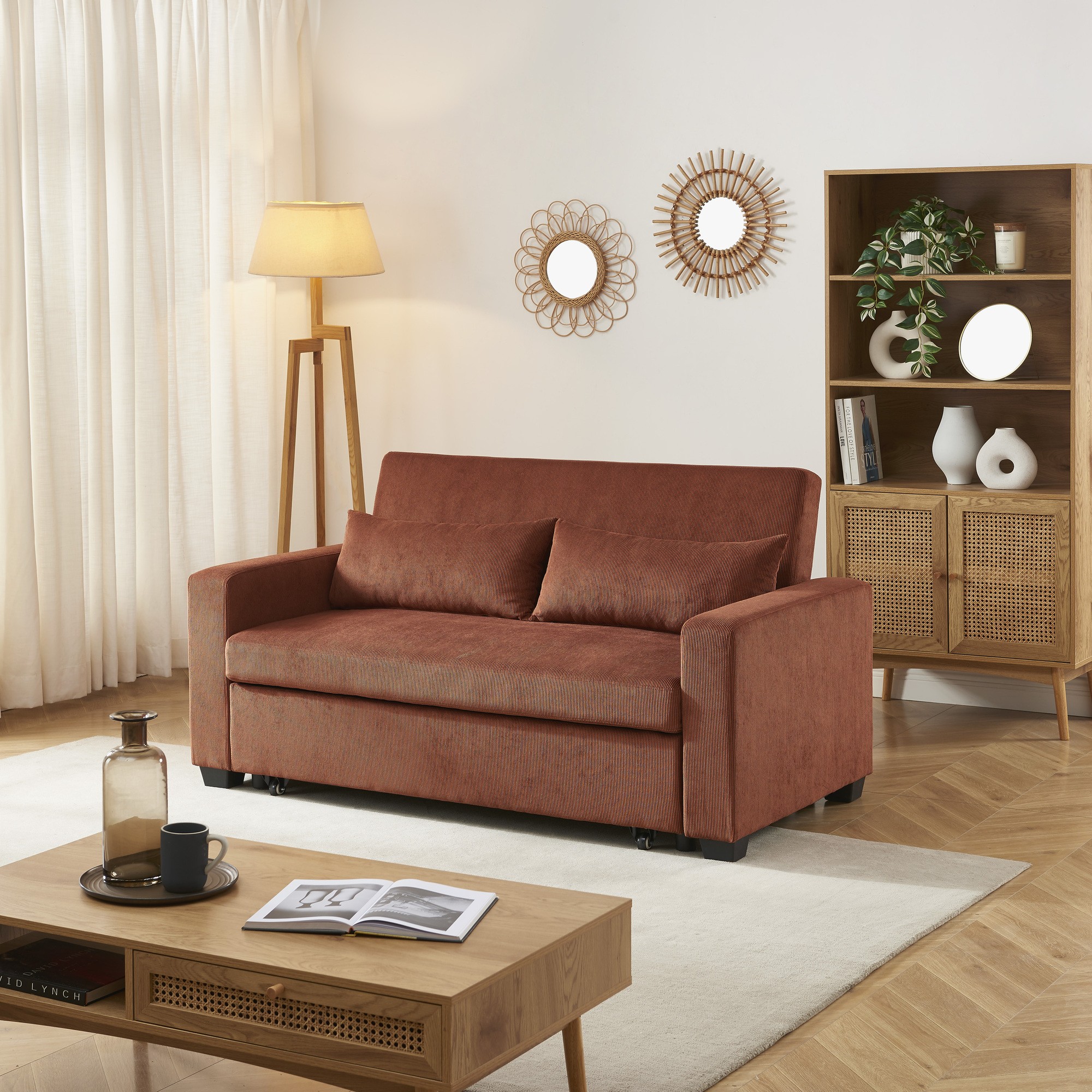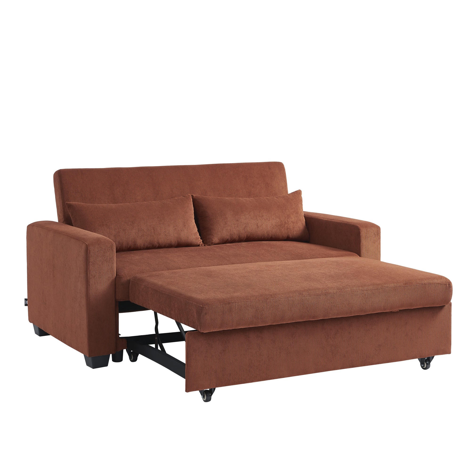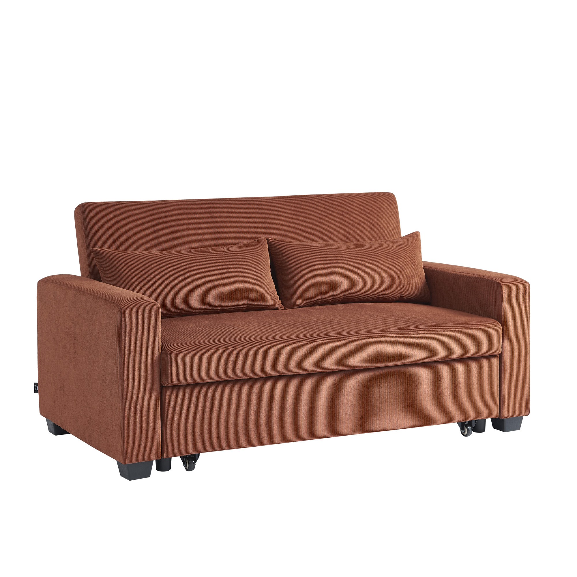 Gerades Schlafsofa EVA 3-Sitzer aus terrakottafarbenem Cord. Maße des Sofas: 170 x 91,5 x 89 cm. Maße der Liegefläche: 140 x 190 cm