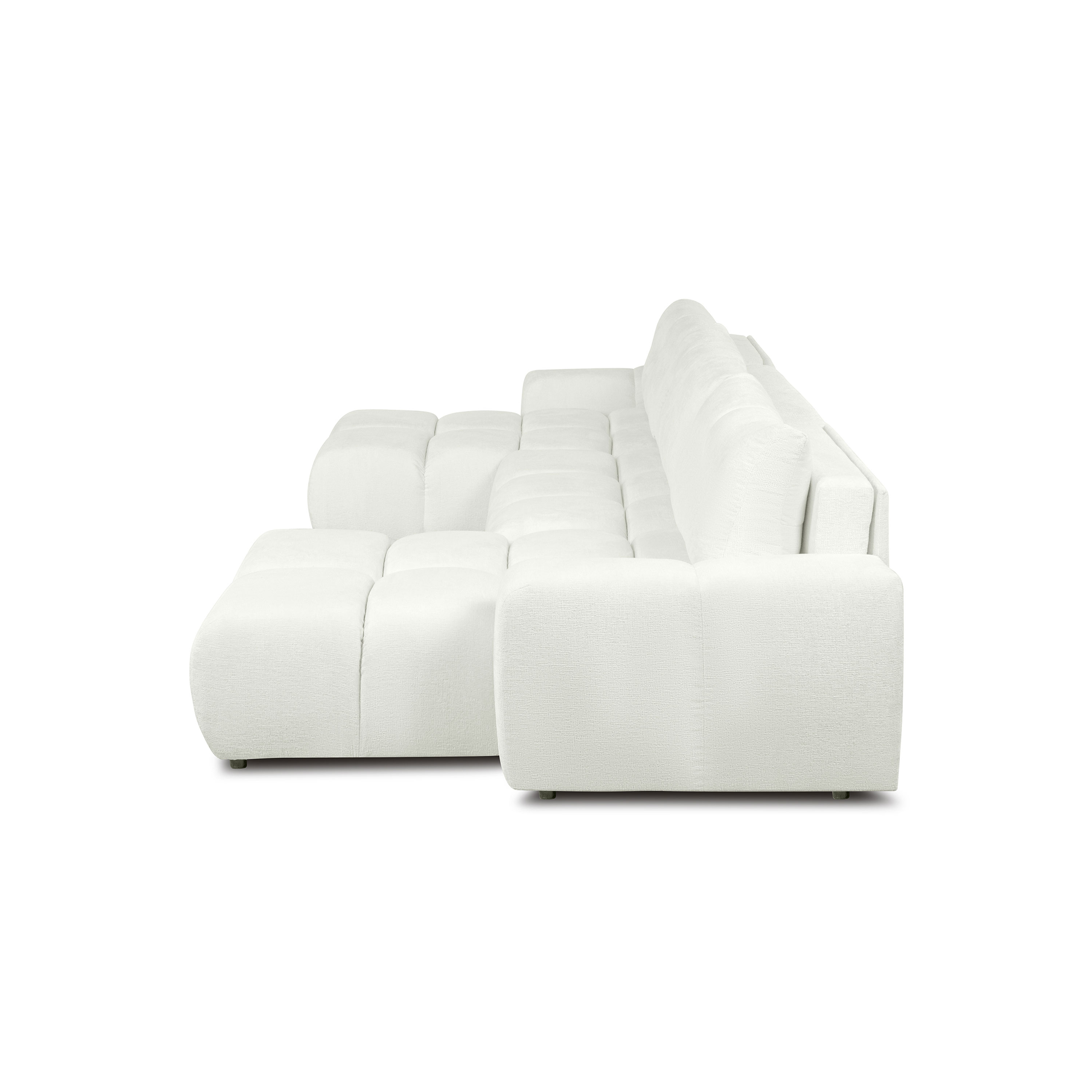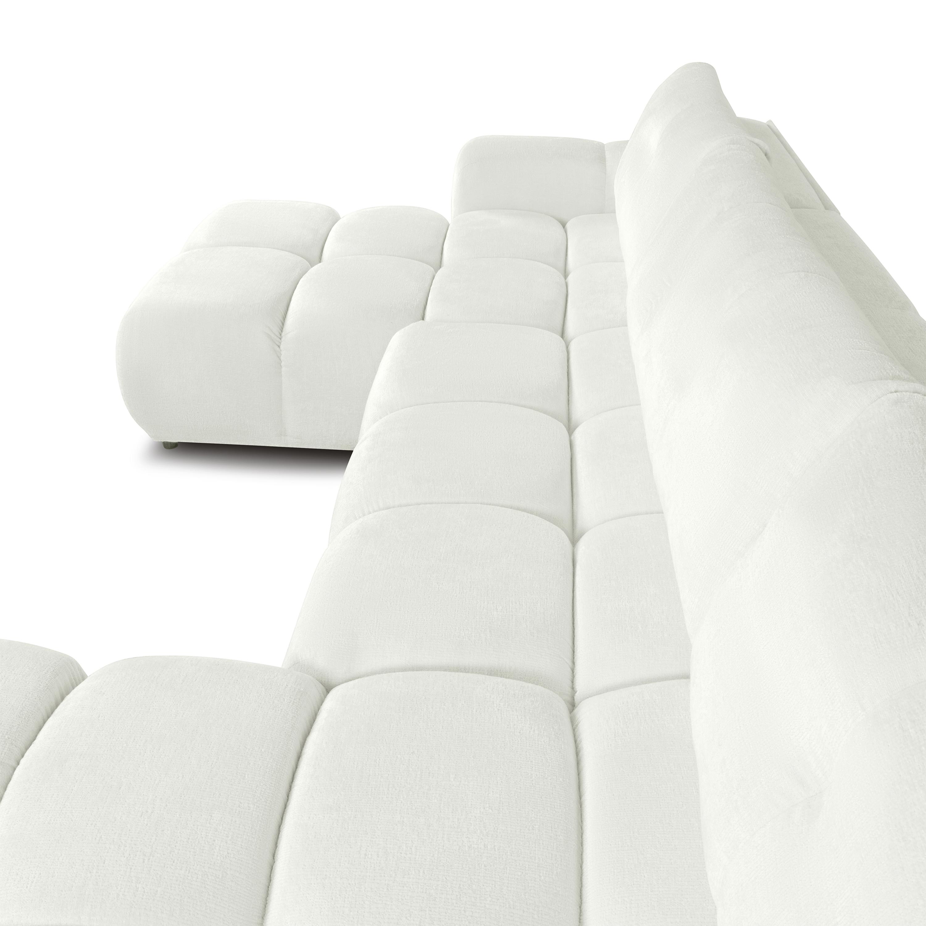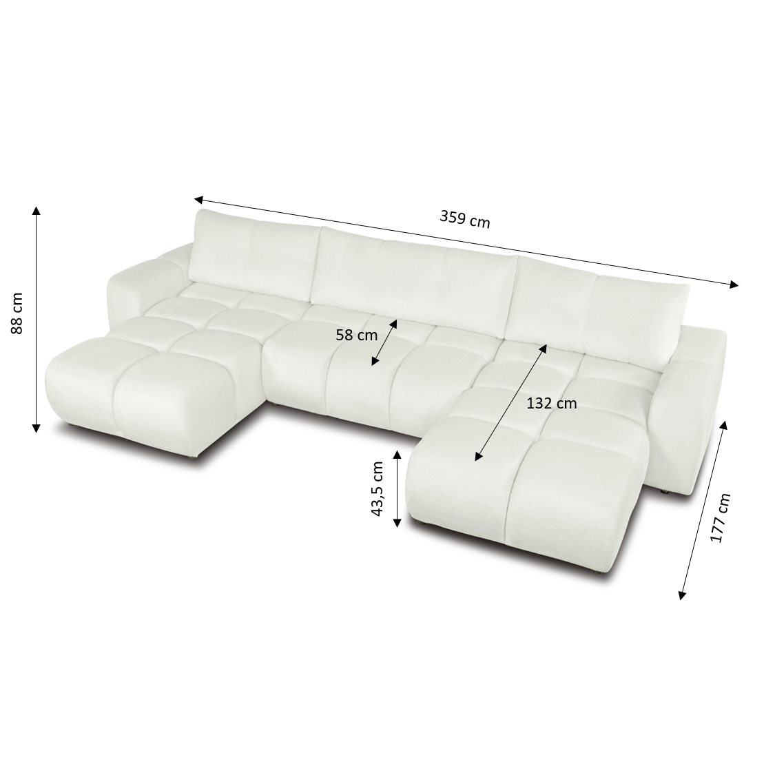 Das Panoramasofa SORELLA aus Chenille-Stoff ist ein Modell, das für große Räume und große Familien konzipiert wurde. Mit seinen 6 Sitzplätzen, zwei Liegeflächen und seiner weichen Sitzfläche lädt es ganz natürlich zum Entspannen ein.