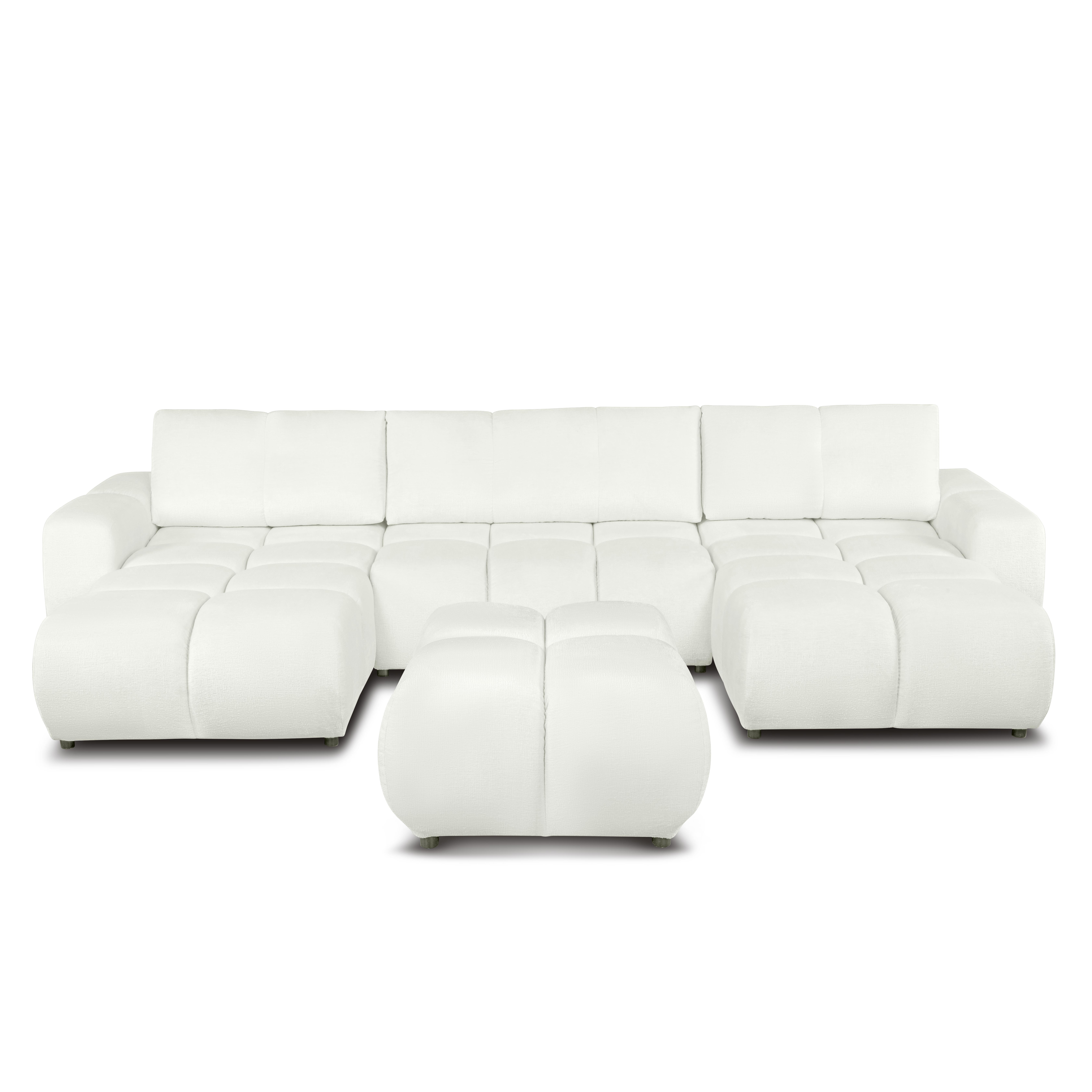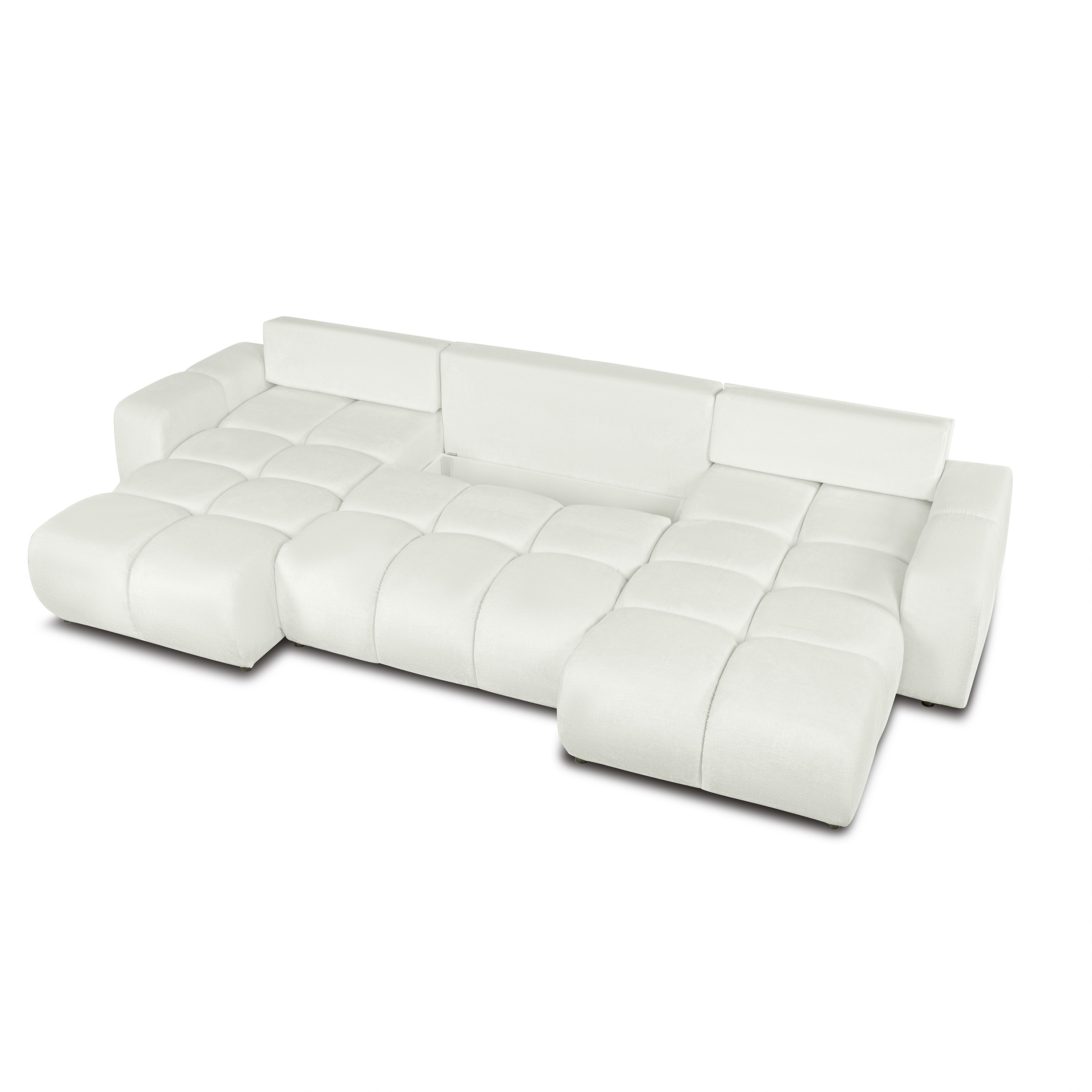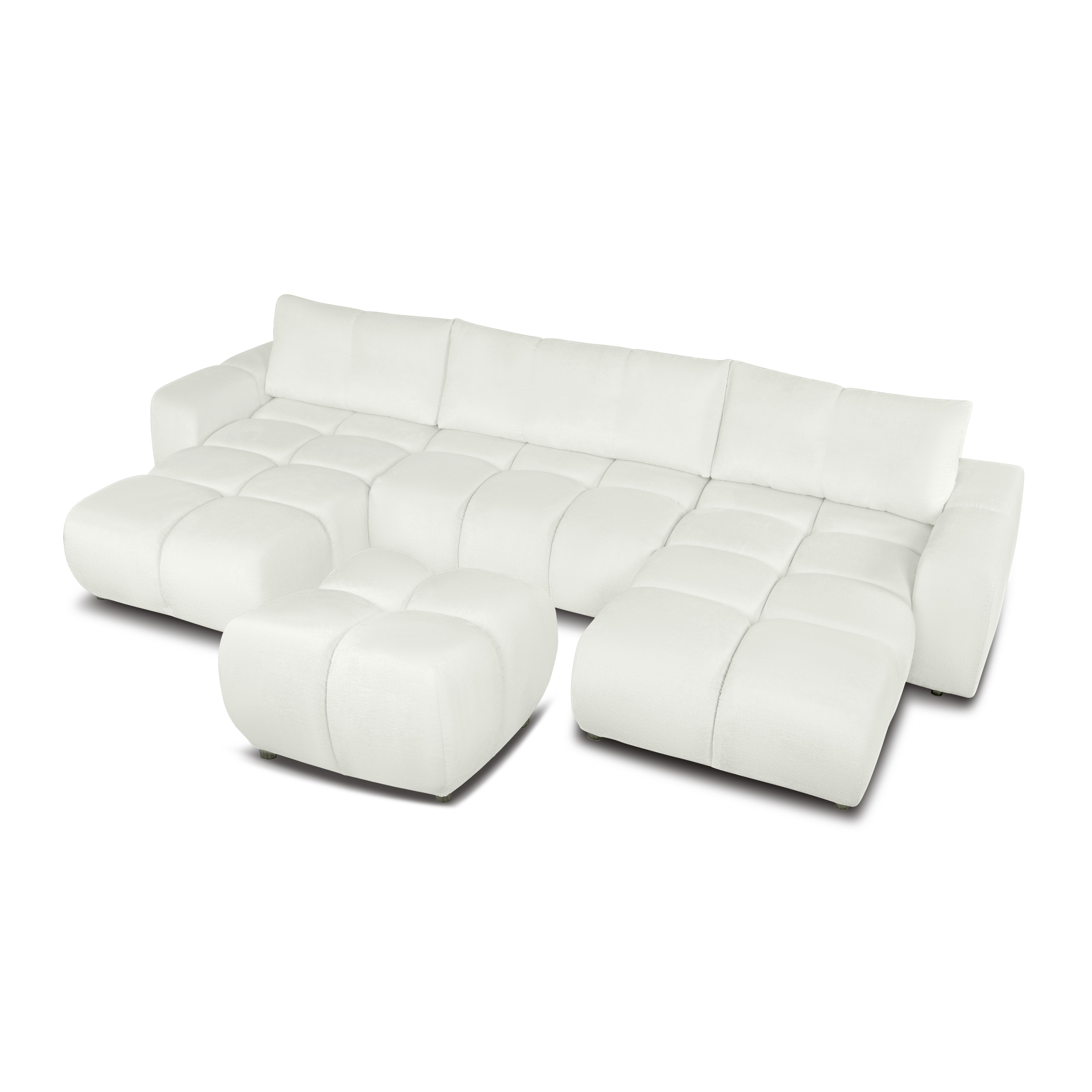 Das Panoramasofa SORELLA aus Chenille-Stoff ist ein Modell, das für große Räume und große Familien konzipiert wurde. Mit seinen 6 Sitzplätzen, zwei Liegeflächen und seiner weichen Sitzfläche lädt es ganz natürlich zum Entspannen ein.