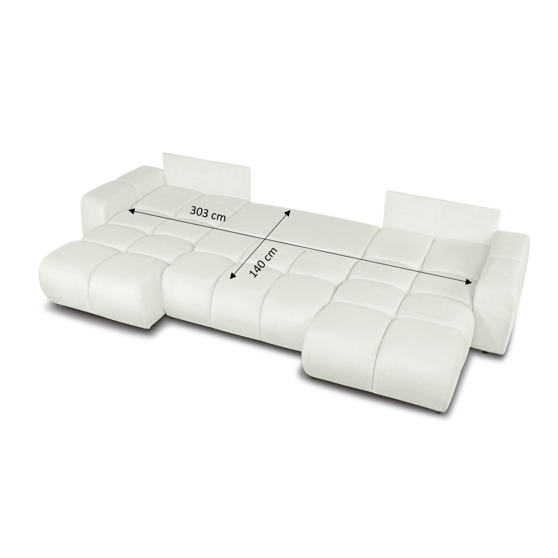 Dank seiner Verwandlungsfunktion lässt sich das Sofa SORELLA leicht in ein 140 x 303 cm großes Zusatzbett verwandeln. Ideal, um Familie oder Freunde spontan unterzubringen, ohne auf Komfort verzichten zu müssen. Und damit Ihr Wohnzimmer immer aufgeräumt bleibt, ist unter der Sitzfläche ein Stauraum integriert, in dem Sie Decken, Kissen oder Bettwäsche verstauen können.