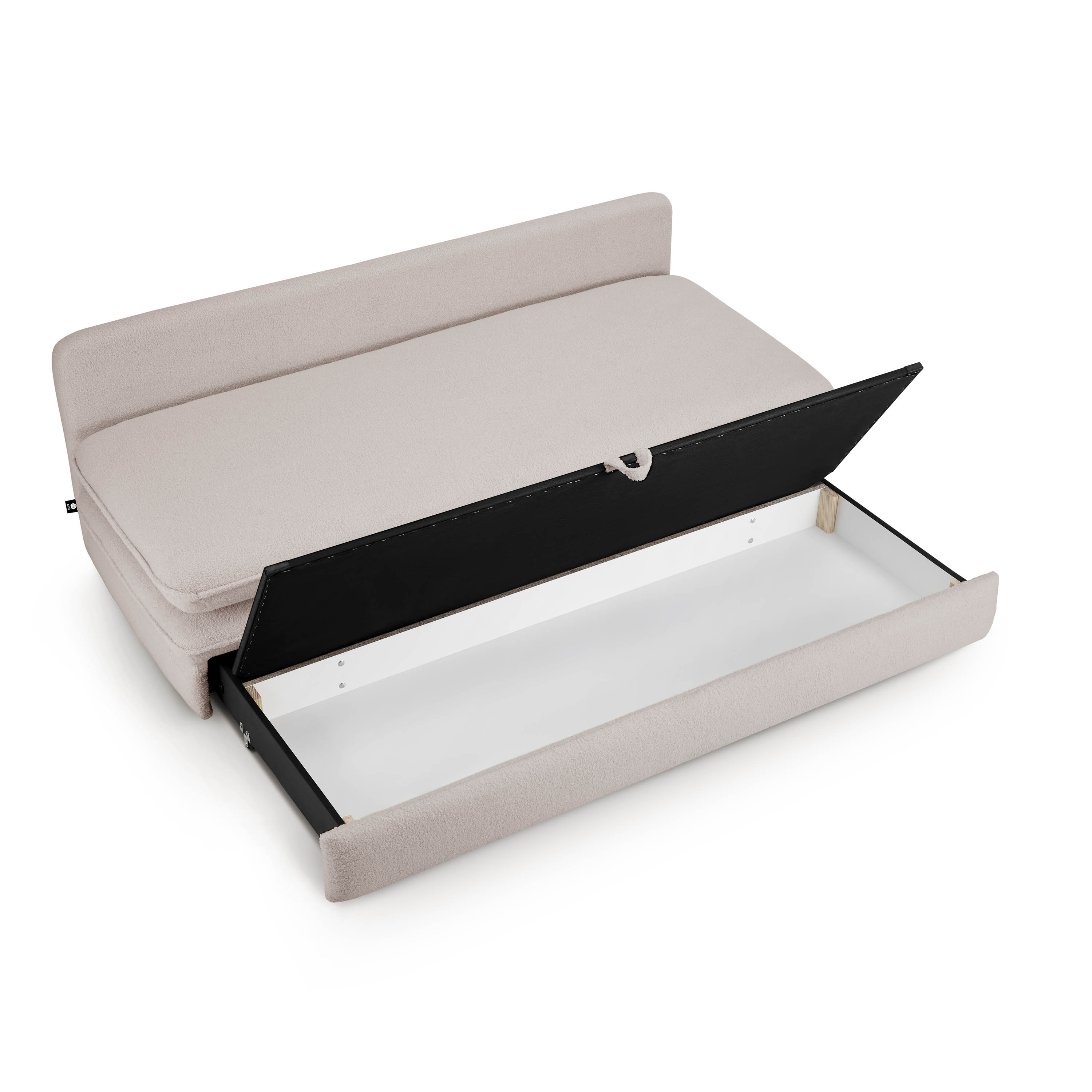 Die Bank NOMA vereint originelles Design, zusätzliche Schlafmöglichkeit und integrierten Stauraum. Sie ist perfekt für kleine Räume und in verschiedenen Materialien und Farben erhältlich, um sich all Ihren Wünschen anzupassen.