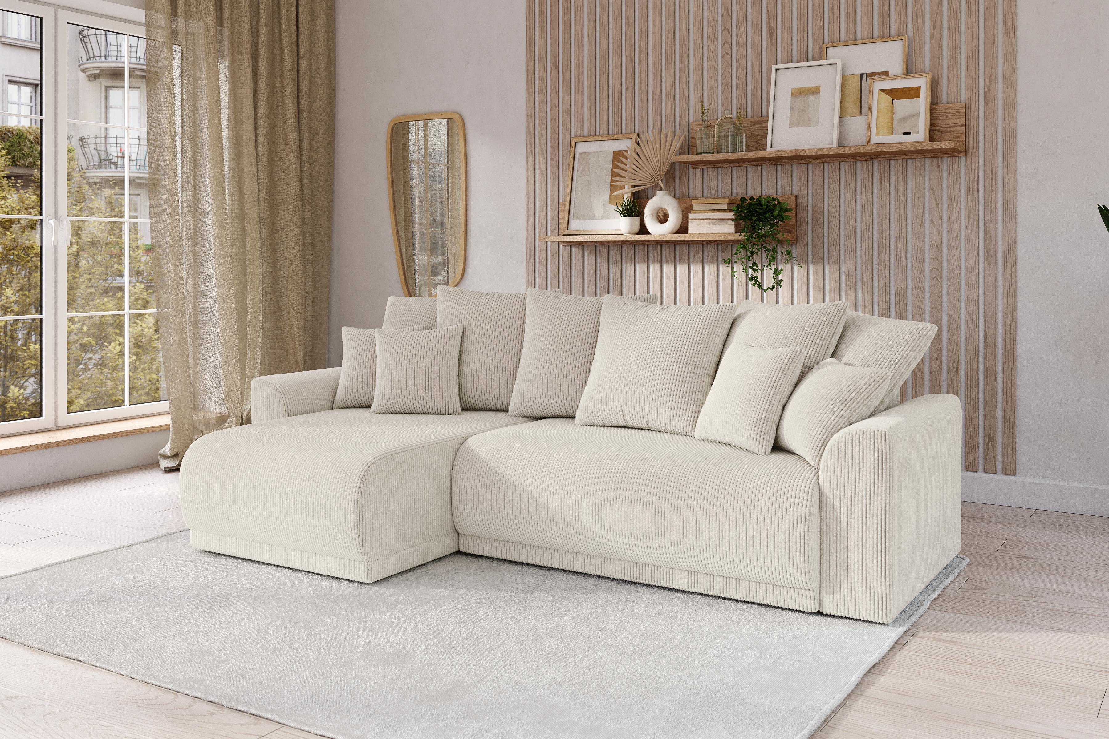 NOVA Ecksofa, umwandelbar, Cord beige, 4-Sitzer