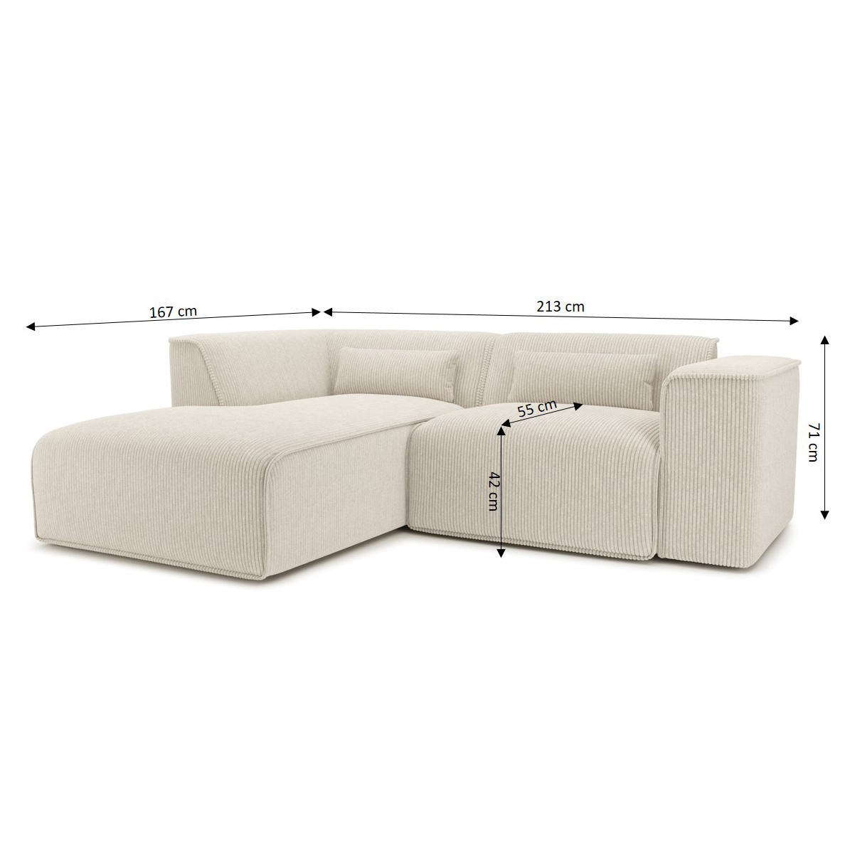 Festes Ecksofa NUNA mit 4 Sitzplätzen aus beigem Cord