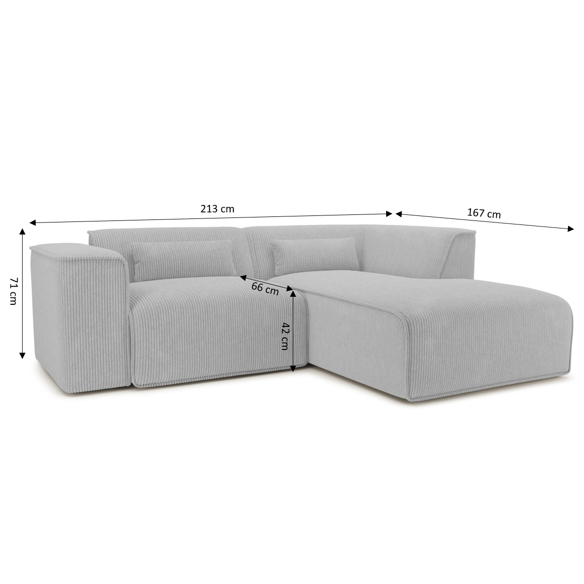 Ecksofa rechts feststehend NUNA 4-Sitzer Cord grau