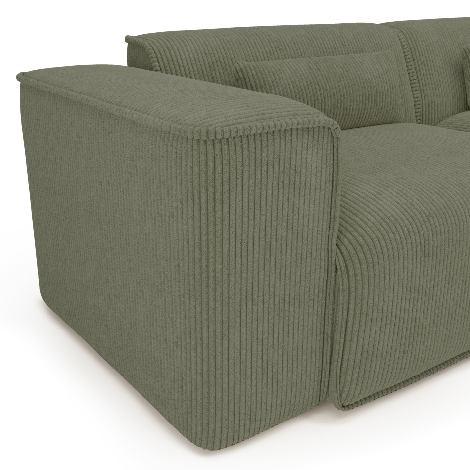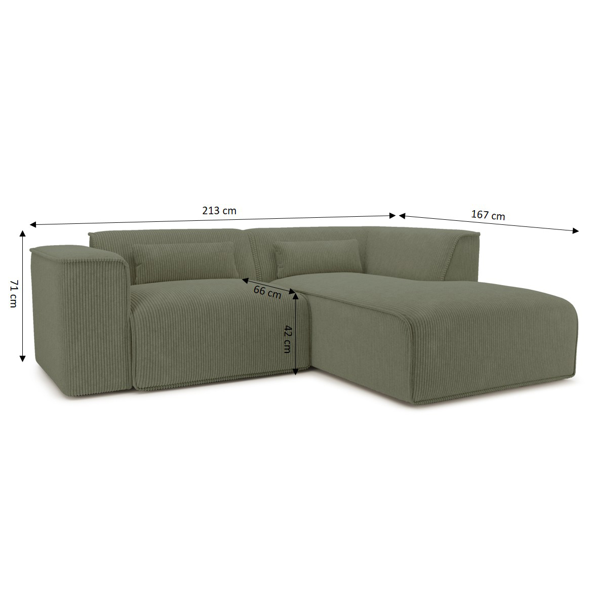 Ecksofa NUNA mit fester rechter Ecke, 4-Sitzer, grüner Cord