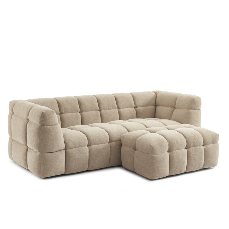 Das Set MOODY kombiniert ein 3-Sitzer-Sofa und einen passenden Hocker in minimalistischem Design. Seine schlichten Linien und seine großzügige Silhouette machen es zu einem harmonischen Ensemble, das sich leicht in alle Einrichtungsstile integrieren lässt, egal ob modern, natürlich oder eher klassisch.