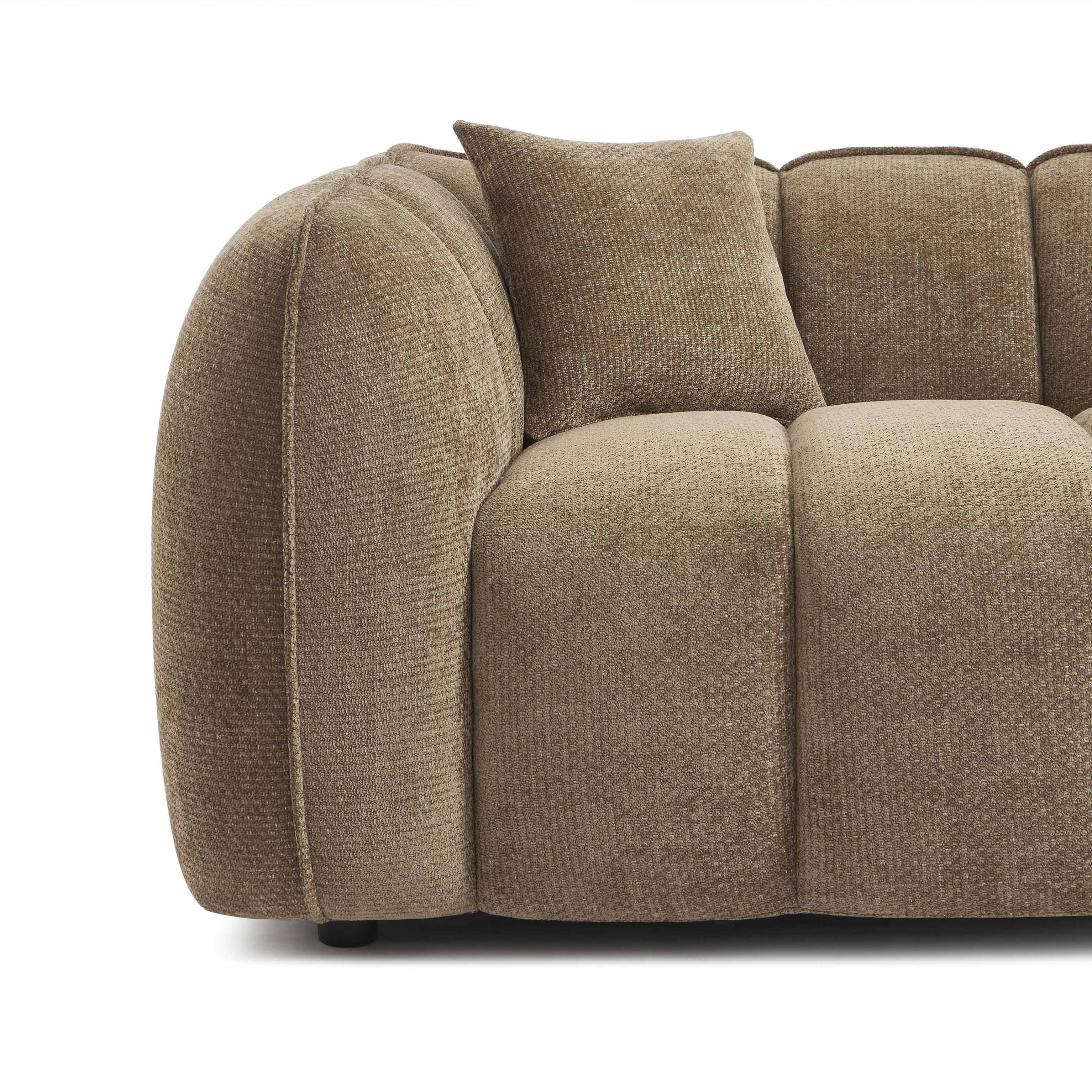 Das 2-Sitzer-Sofa MATILDA vereint zeitgenössisches Design und umhüllenden Komfort dank seines weichen Chenille-Stoffes und seiner großzügigen Linienführung.