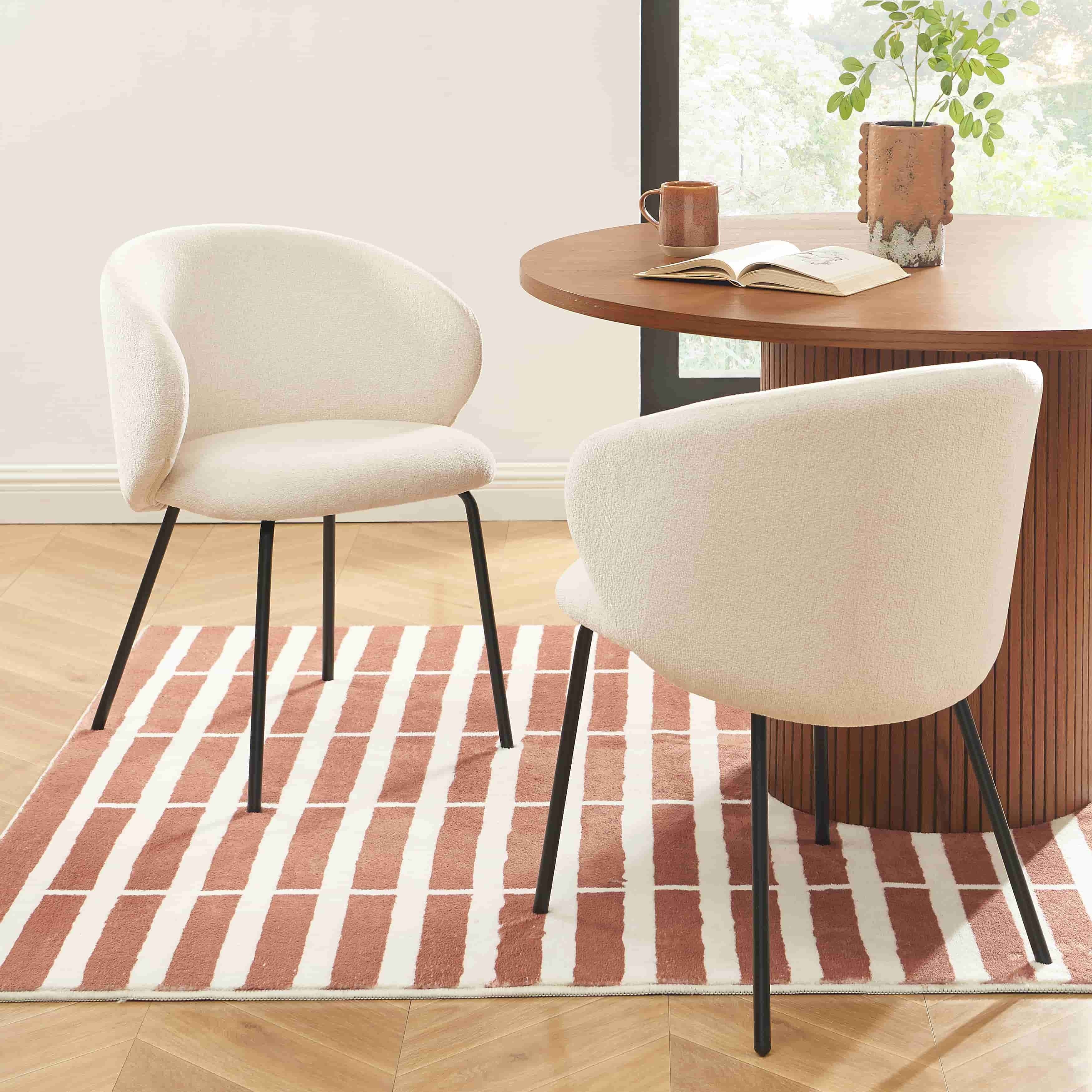 Sie möchten Ihrem Zuhause einen modernen und eleganten Touch verleihen? Dann sollten Sie sich für das 2er-Set CASSIE Stühle entscheiden. Mit ihrem Bezug aus ecrufarbenem Chenille-Stoff kombinieren diese Stühle Weichheit und Stil für eine warme und trendige Ausstrahlung. Der Chenille-Stoff fühlt sich nicht nur angenehm an, sondern passt auch perfekt zu einer modernen, skandinavischen oder minimalistischen Einrichtung.