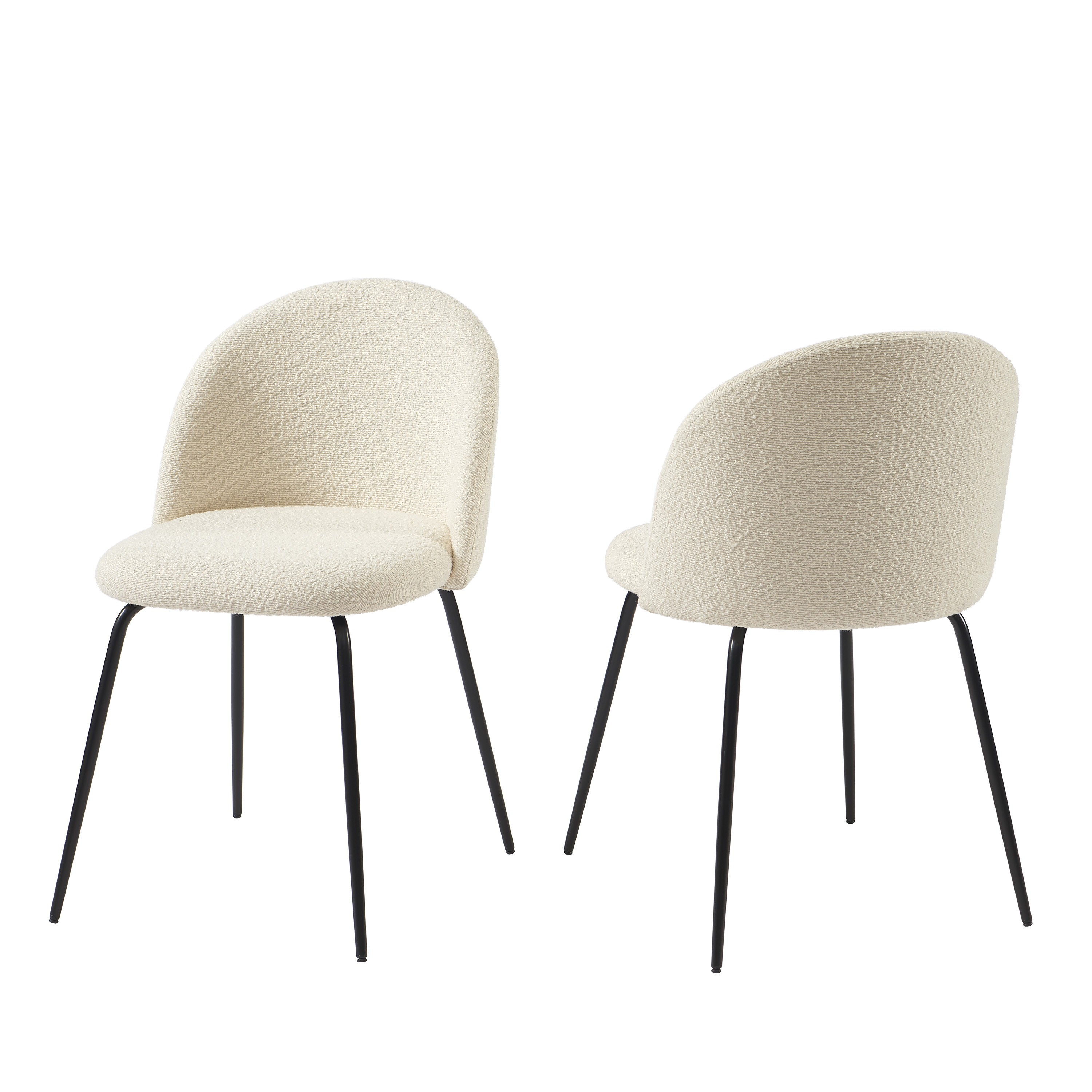Satz von 2 Stühlen MISU aus ungebleichtem Bouclé-Stoff mit schwarzen Metallbeinen