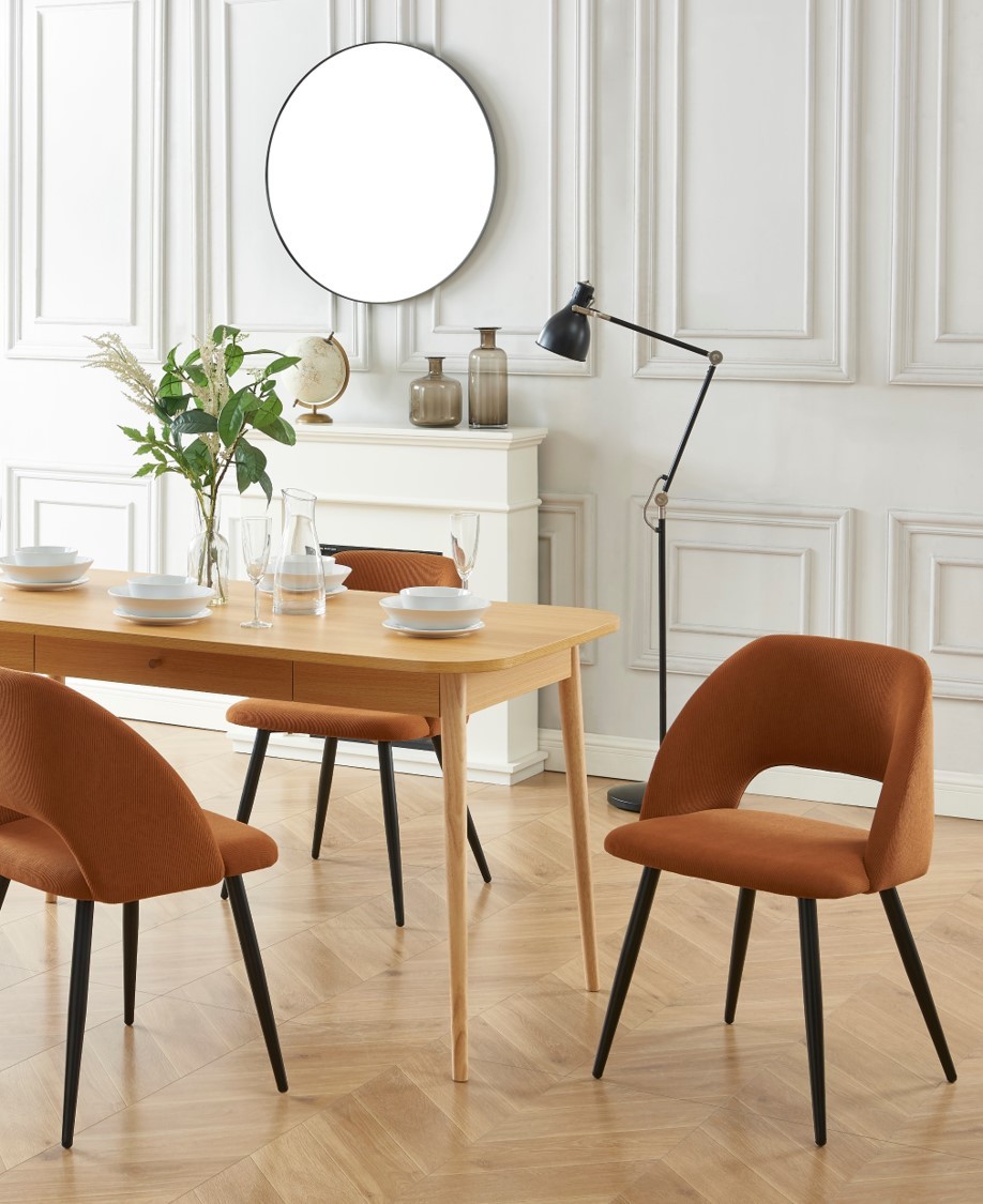 Cord ist wieder da! Aus dem Schrank unserer Großmütter wurde dieser Samt wiederbelebt und es funktioniert. Kombiniert mit schwarzen Metallbeinen ergibt sich ein charaktervolles Stück.