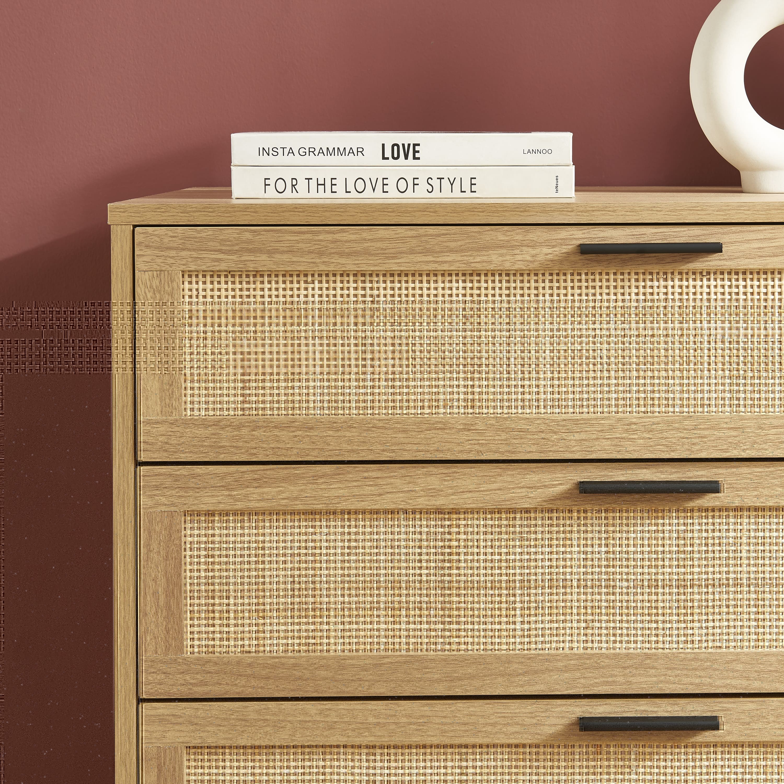 AMANA Kommode in Eichenoptik und Rattangeflecht mit 6 Schubladen