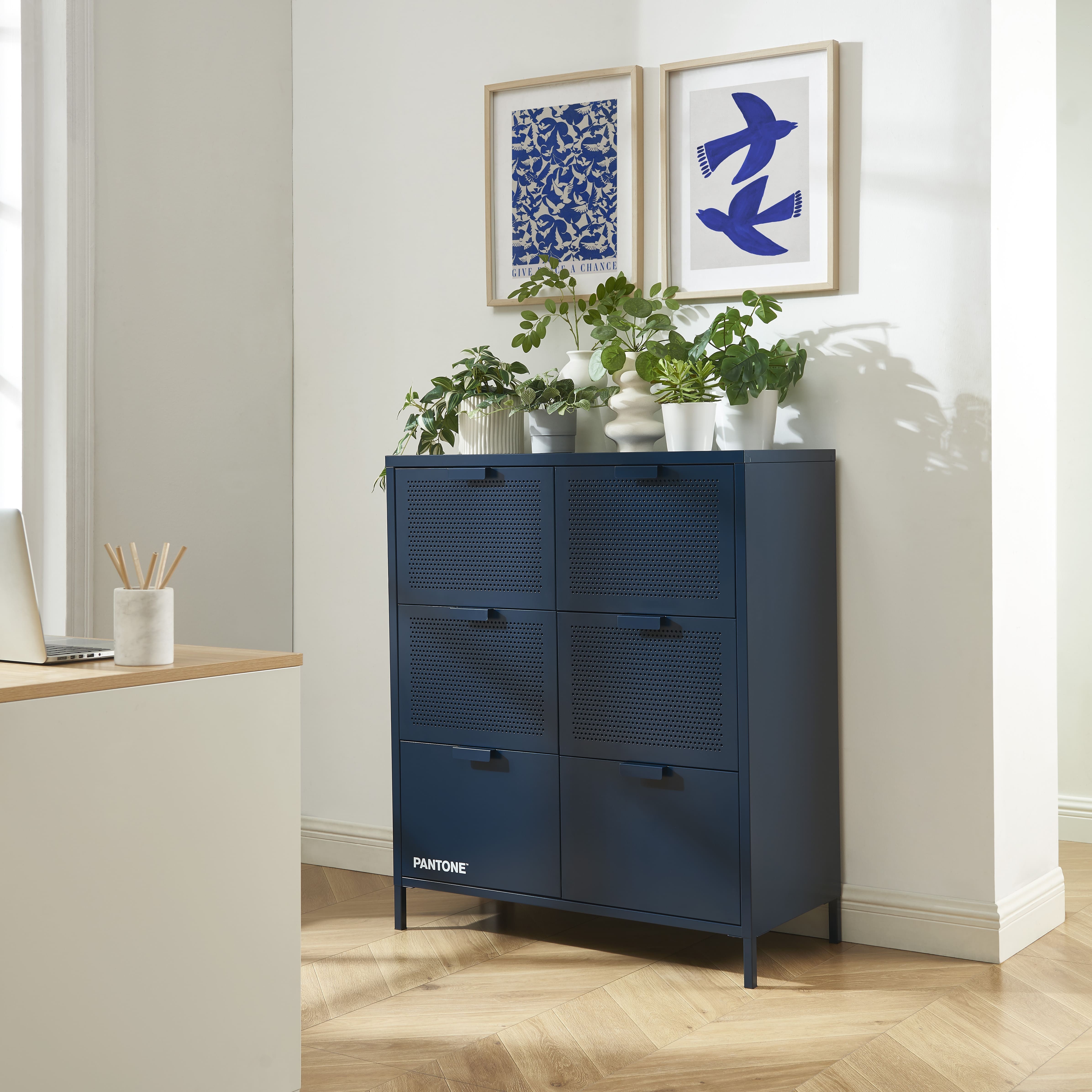 Kommode PANTONE Metall nachtblau 6 Schubladen 90cm