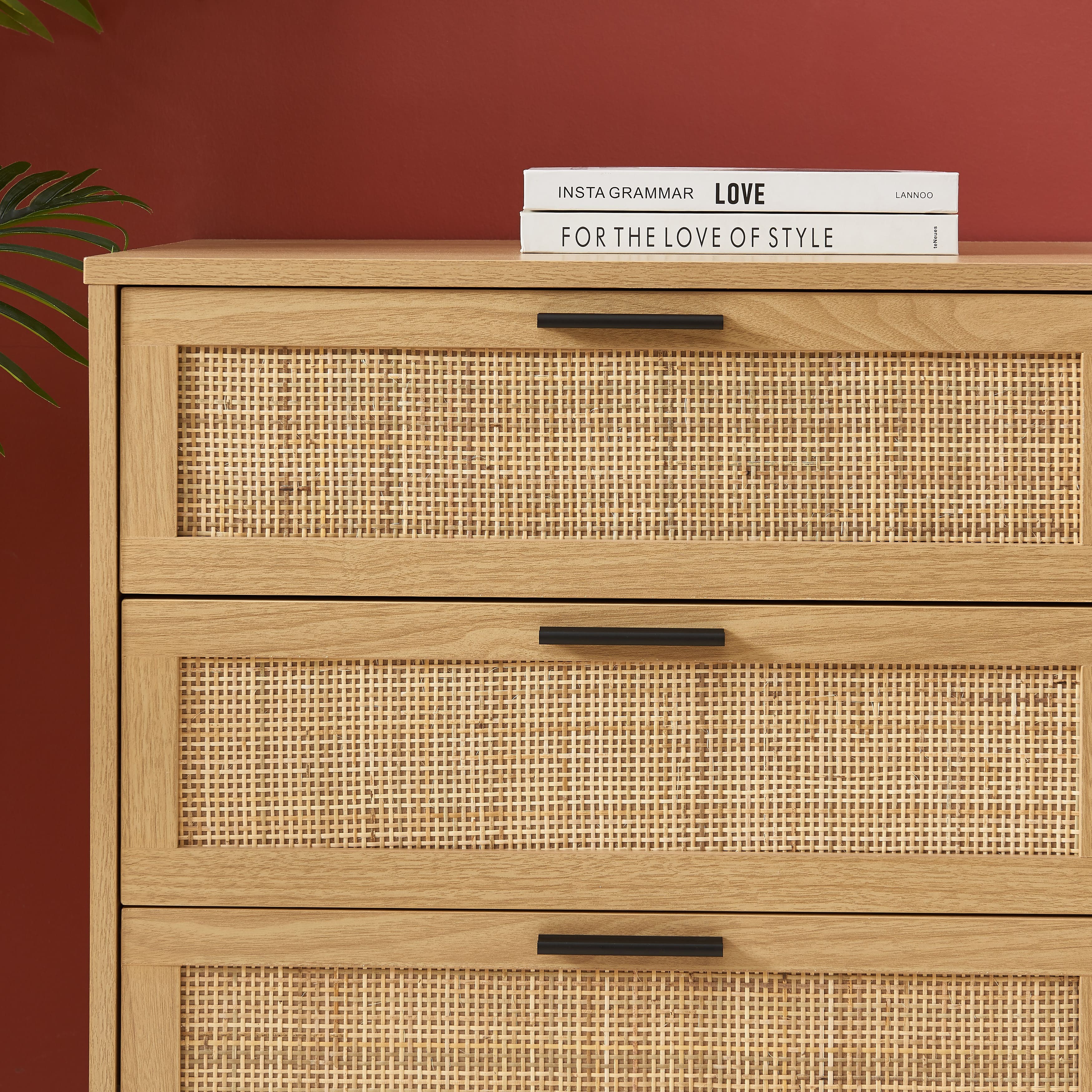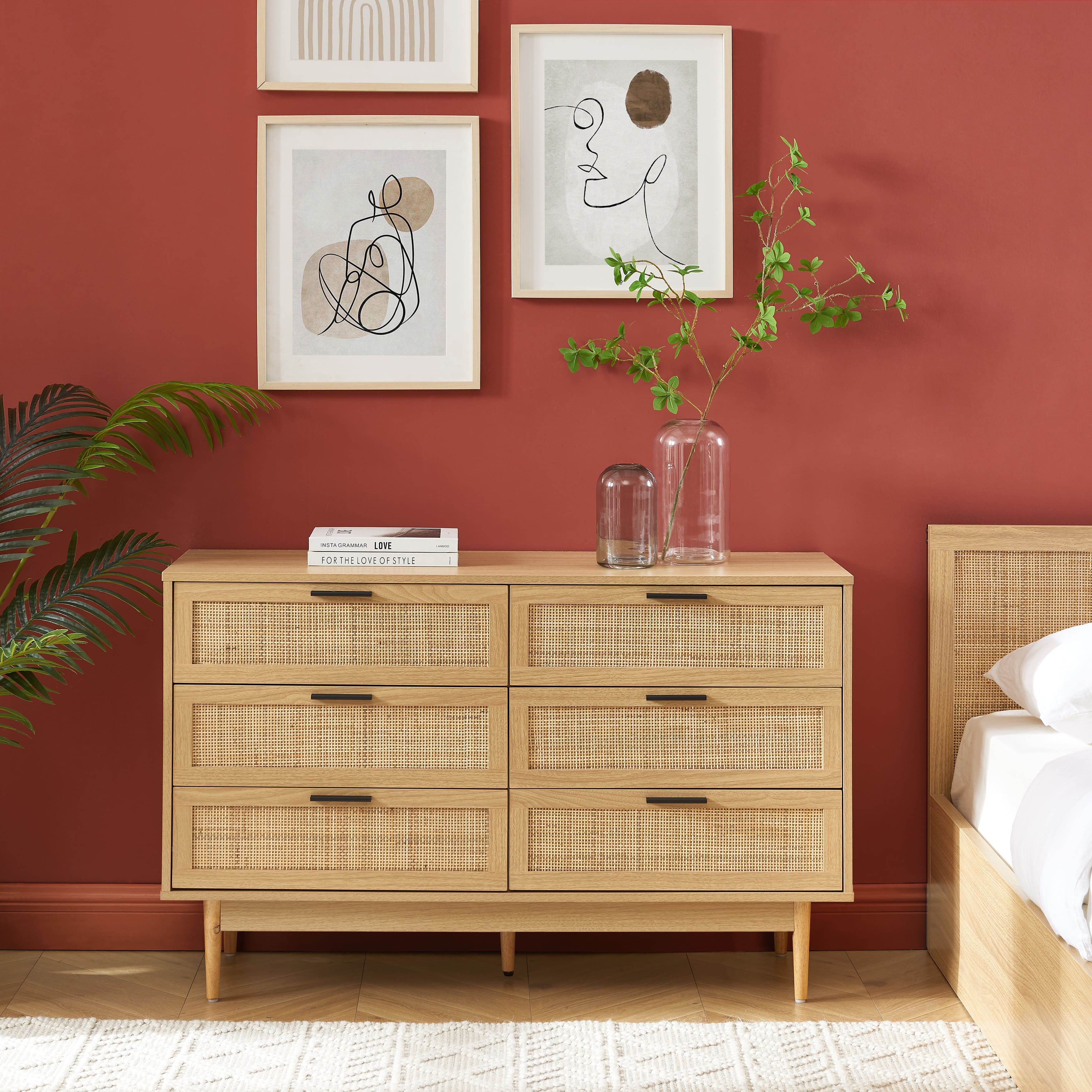 AMANA Kommode in Eichenoptik und Rattangeflecht mit 6 Schubladen
