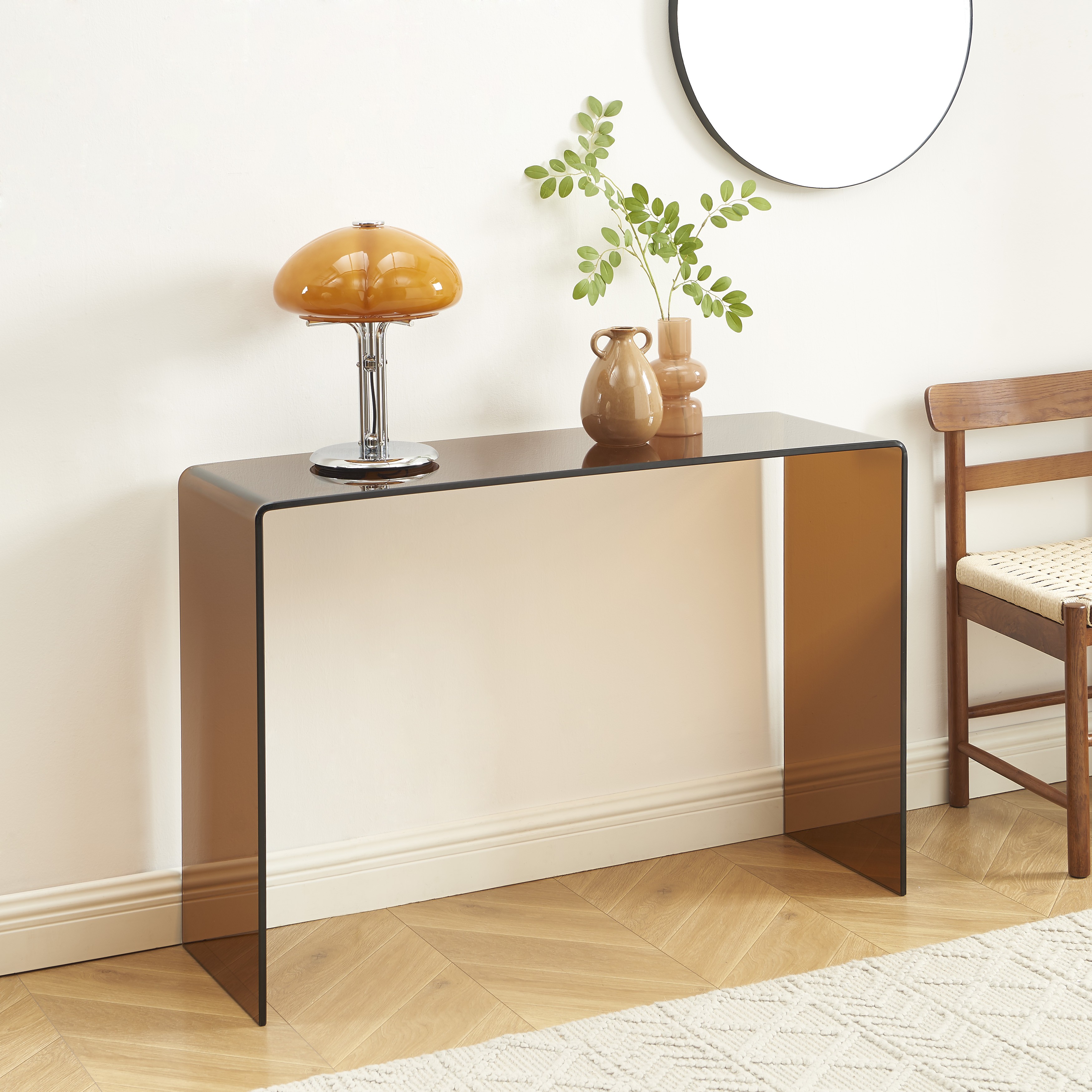 Das 12 mm dicke, gehärtete Glas verleiht der Konsole Robustheit, Stoß- und Kratzfestigkeit und verleiht Ihrer Einrichtung einen Hauch von optischer Leichtigkeit. Die abgerundeten Ecken verleihen dem Ganzen eine fließende Form und machen die Konturen weicher, so dass ein Stück entsteht, das sich in eine Vielzahl von Einrichtungsstilen einfügt, von modern bis zeitgenössisch.