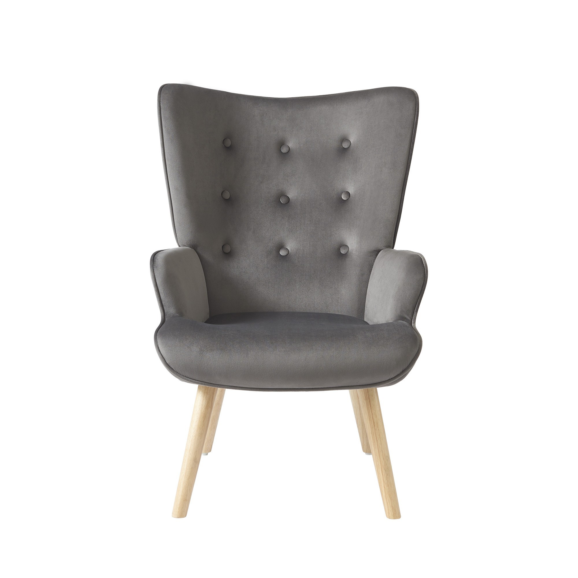 Verschönern Sie Ihr Zuhause mit diesem Sessel im skandinavischen Design und mit klaren Linien. Er ist bequem, hat eine hohe Rückenlehne und integrierte Armlehnen, was ihm einen einladenden Look verleiht. Seine Rückenlehne mit Knopfpolsterung verleiht Ihrem Interieur einen Hauch von Eleganz.