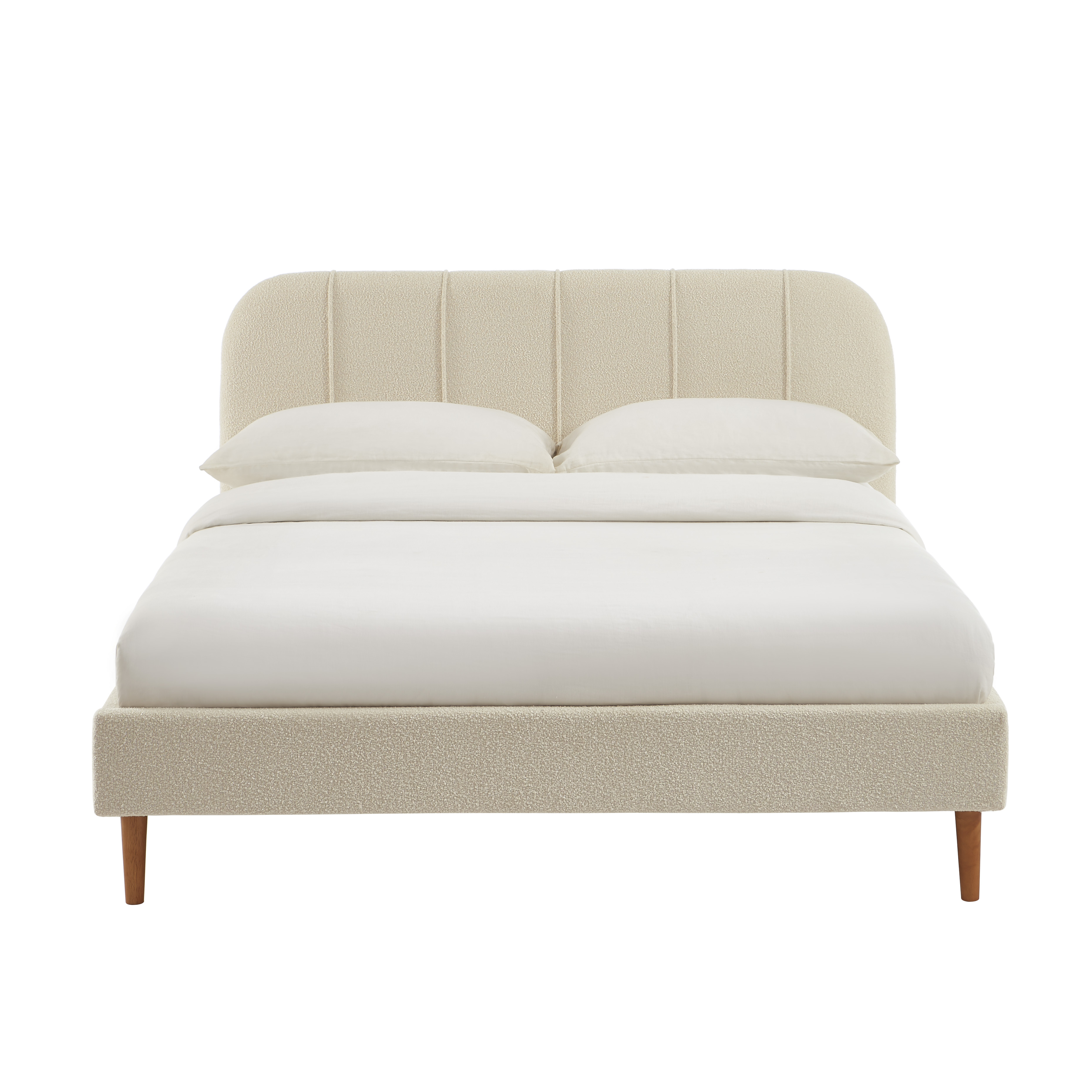 Bett YUME aus beigem Bouclé-Stoff 140 x 190 cm, inklusive Lattenrost