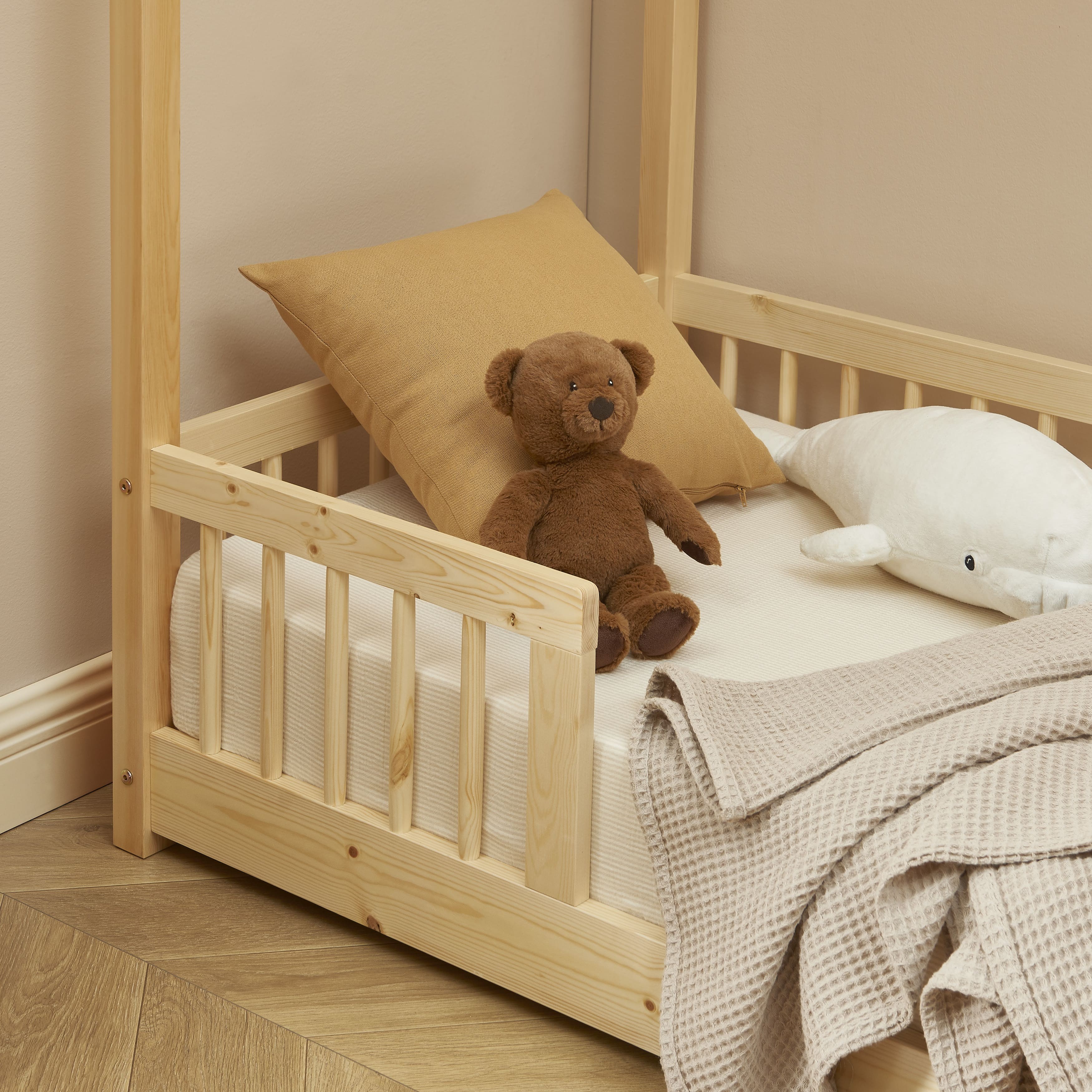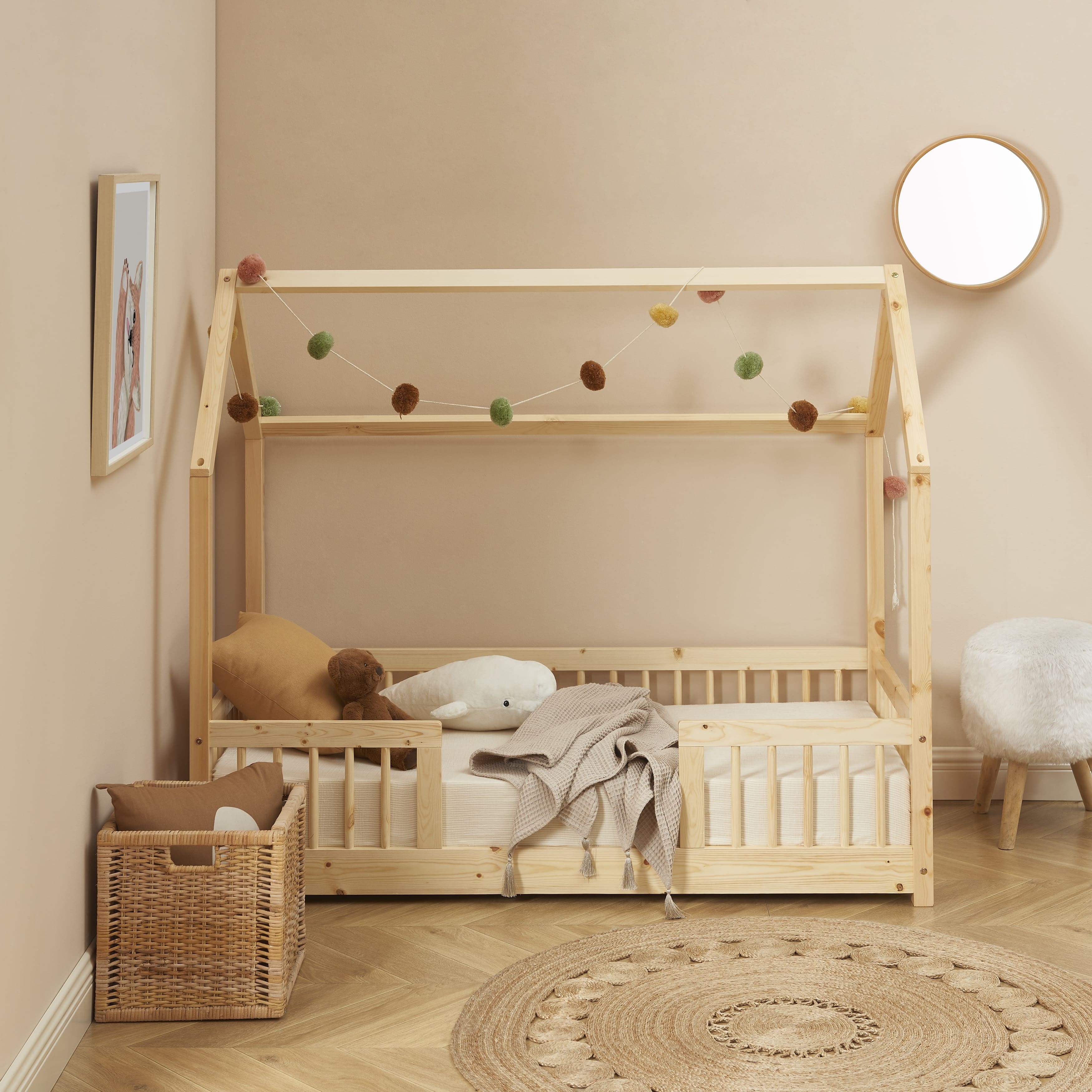 Das Hauptmerkmal des Bettes TINY ist seine Hüttenform, die dem Kinderzimmer einen Hauch von Magie verleiht. Die eingebauten Sicherheitsgitter sorgen dafür, dass Ihr Kleines in Ruhe schlafen kann, und verhindern nächtliche Stürze. Dieses einzigartige Design regt den Drang nach Erkundung und Abenteuer an und lädt Kinder dazu ein, unter die Bettdecke zu schlüpfen, um Nächte voller wunderbarer Träume zu erleben.