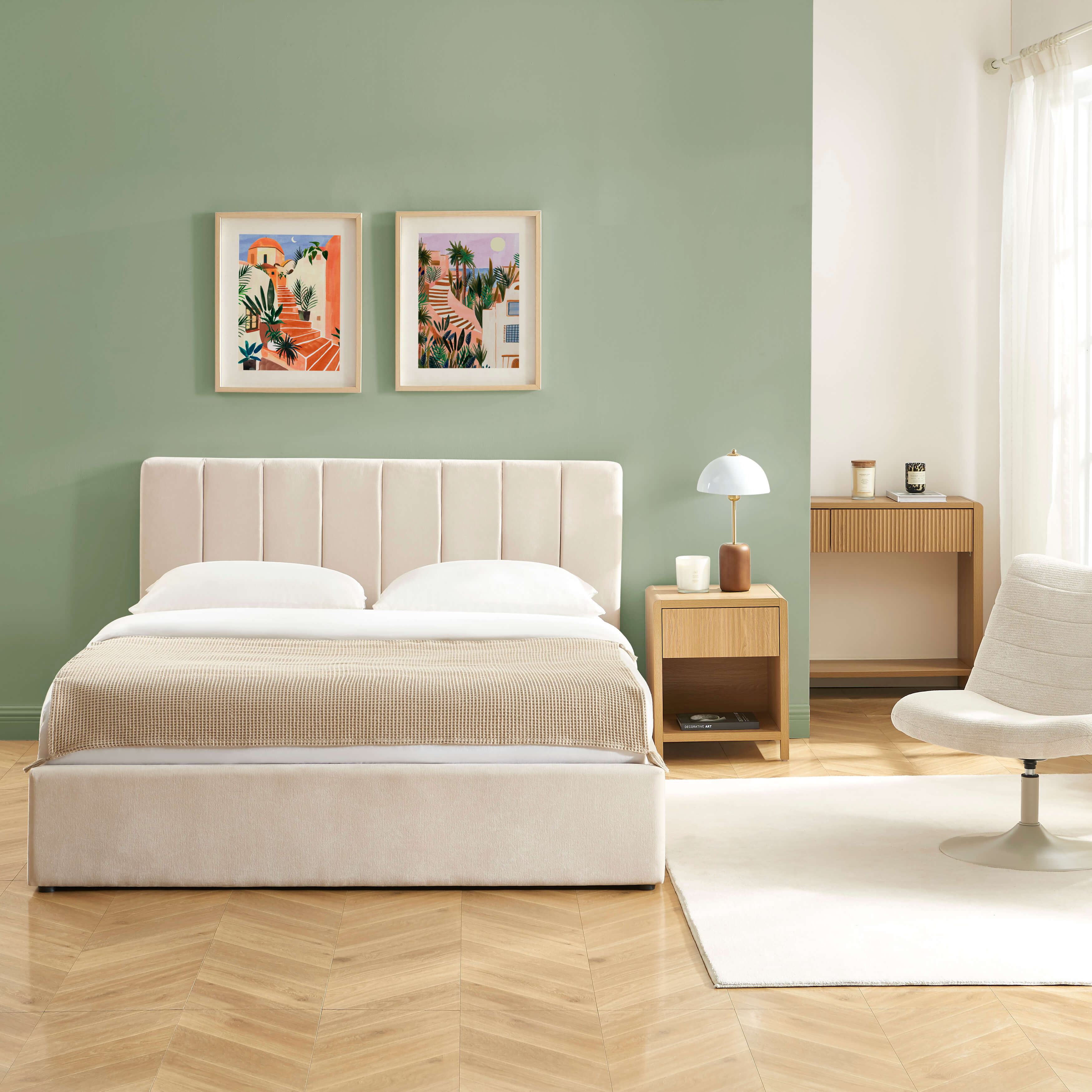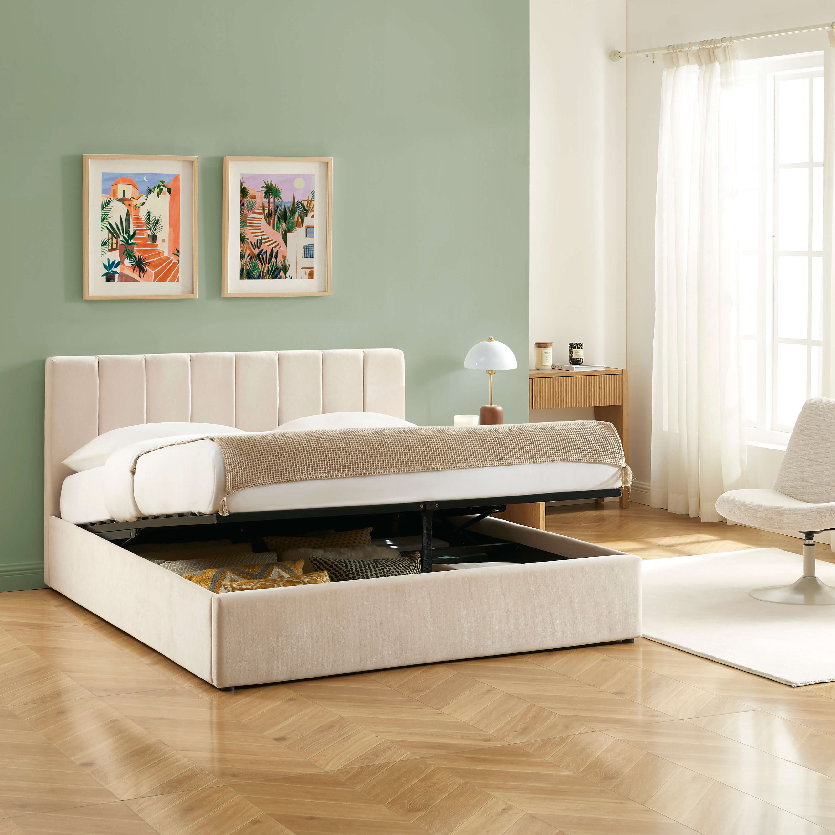 Der praktische und funktionale integrierte Stauraum bietet viel Platz für Bettwäsche, Decken oder Kissen. Dank seines Hebesystems lässt er sich leicht anheben und ermöglicht Ihnen so eine mühelose Raumoptimierung.