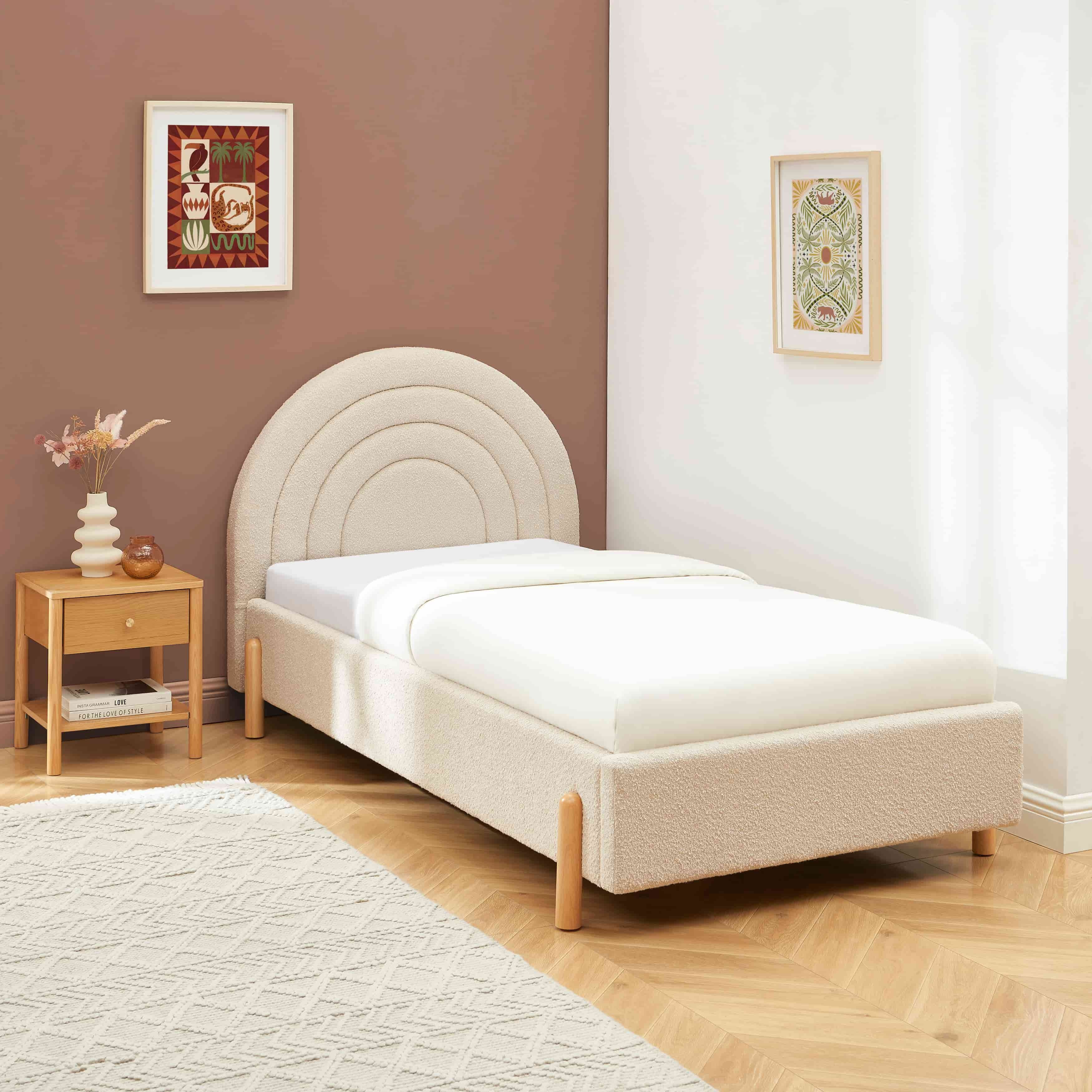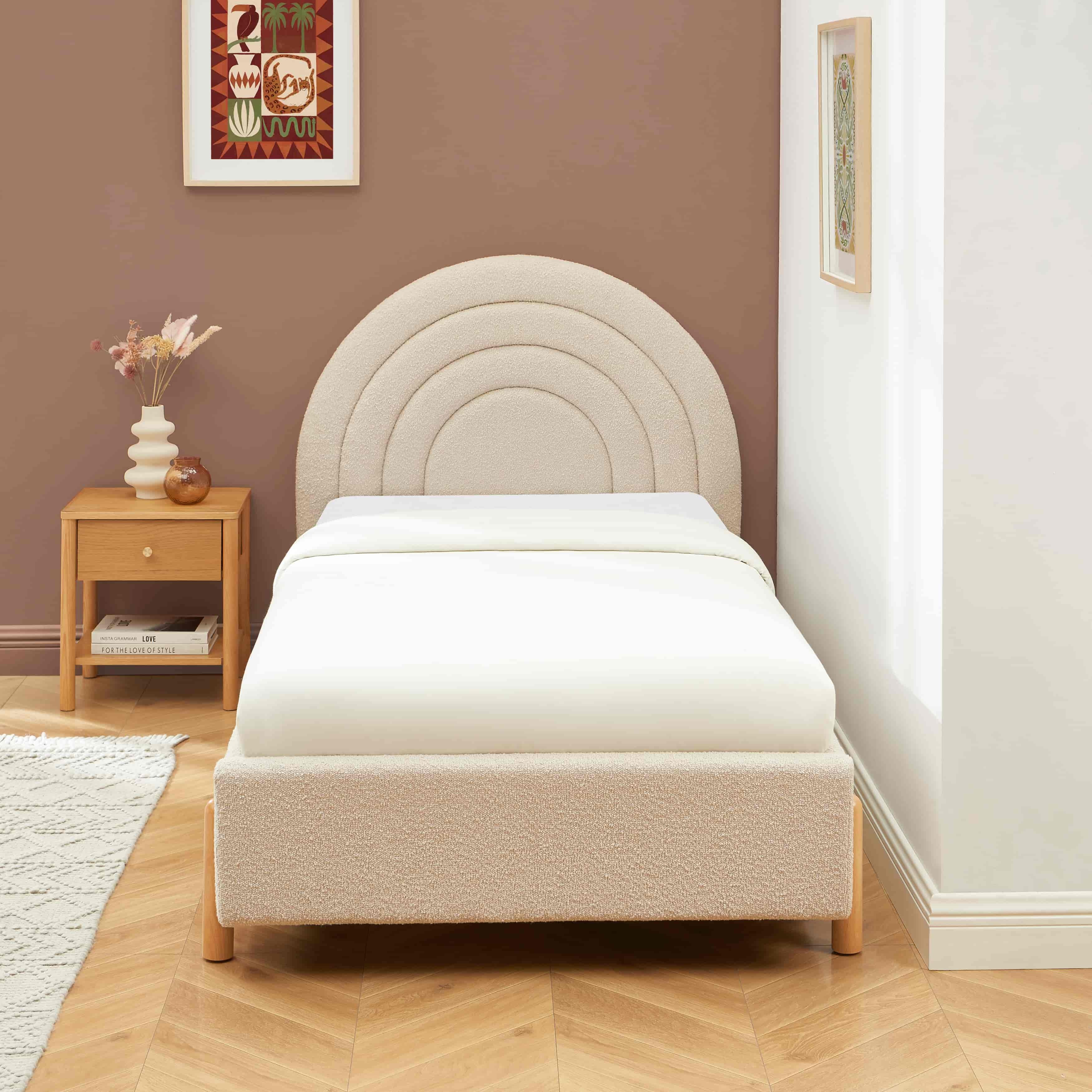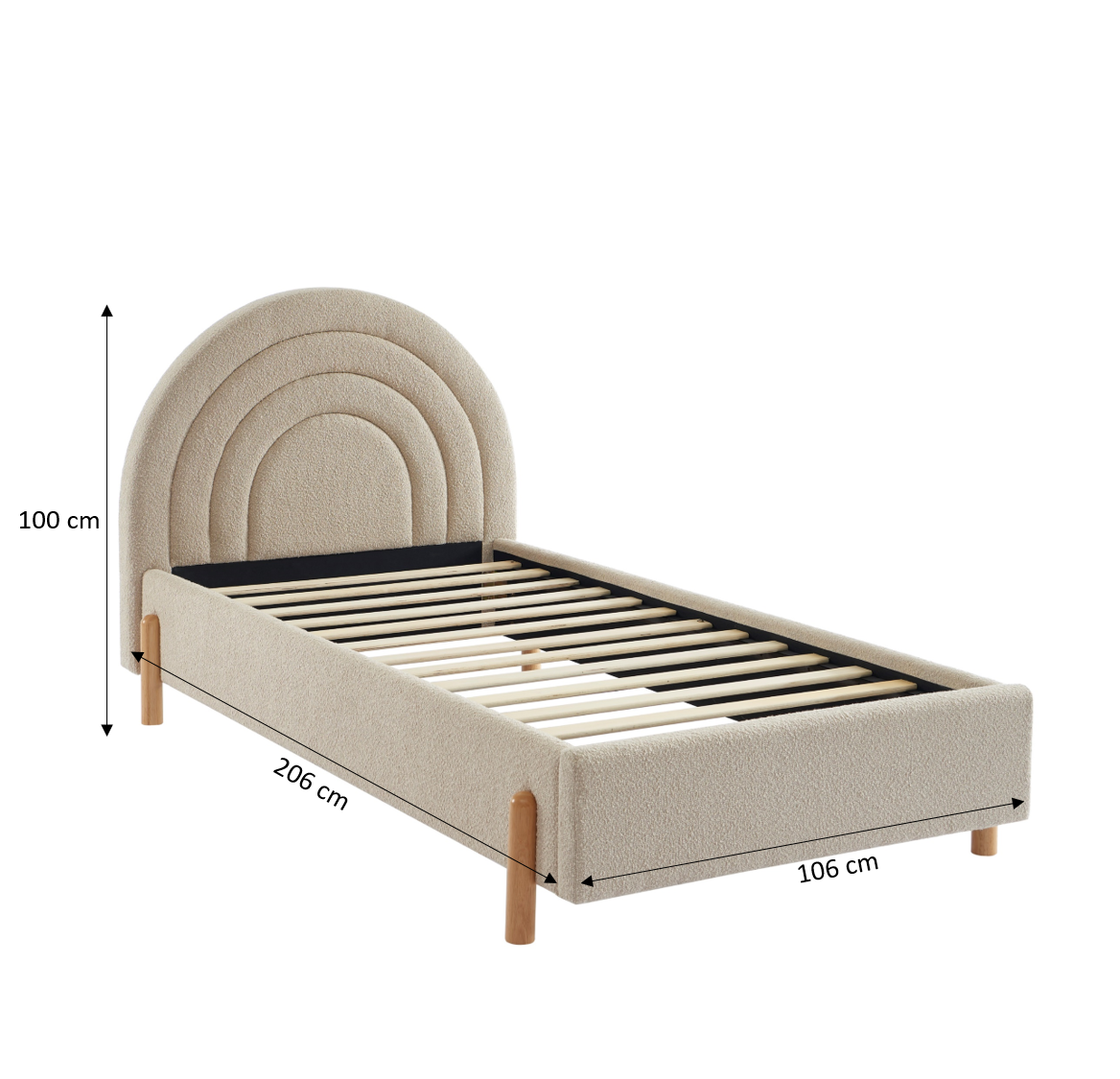 Kinderbett BOO aus Bouclé-Stoff beige 90x190 inkl. Lattenrost
