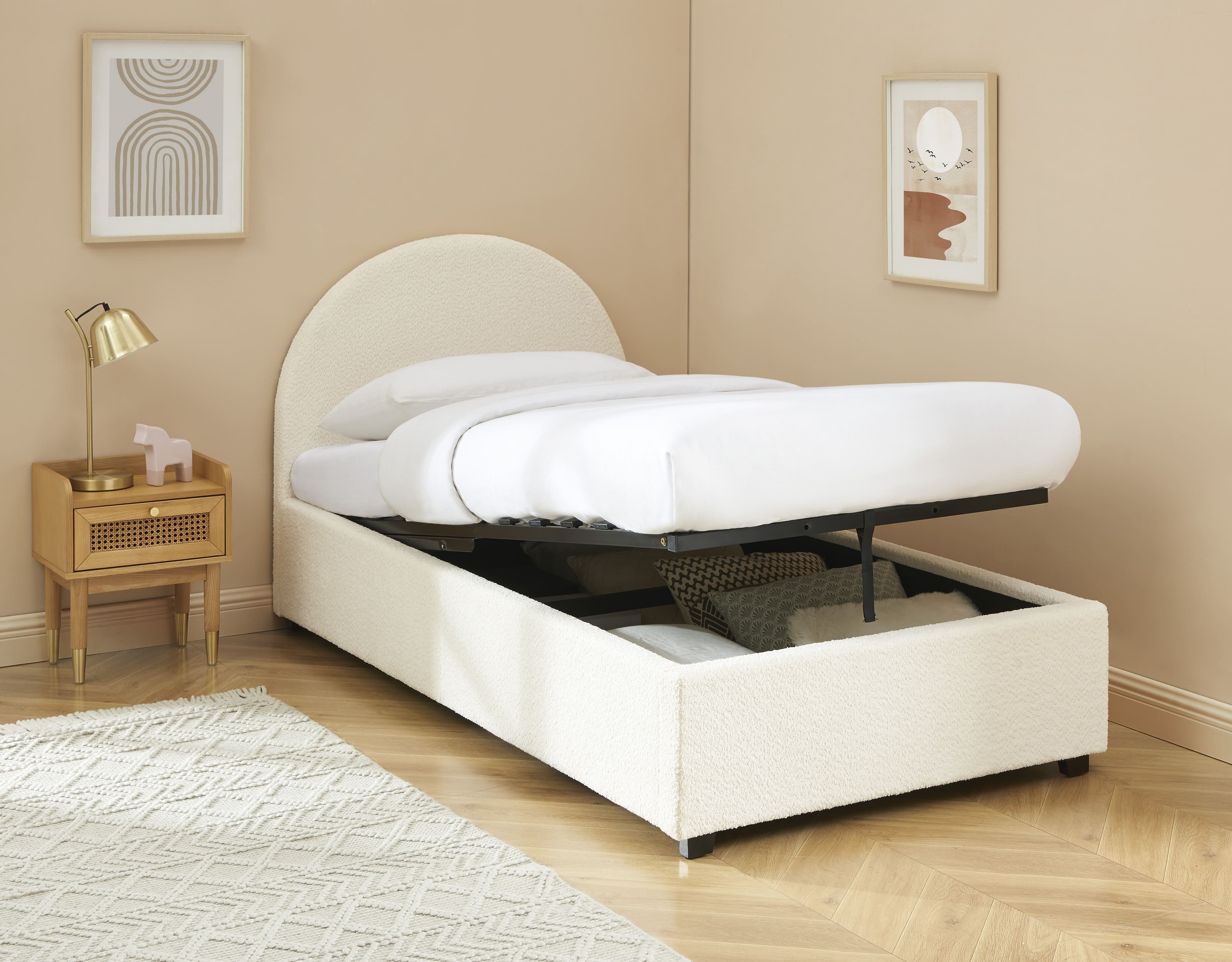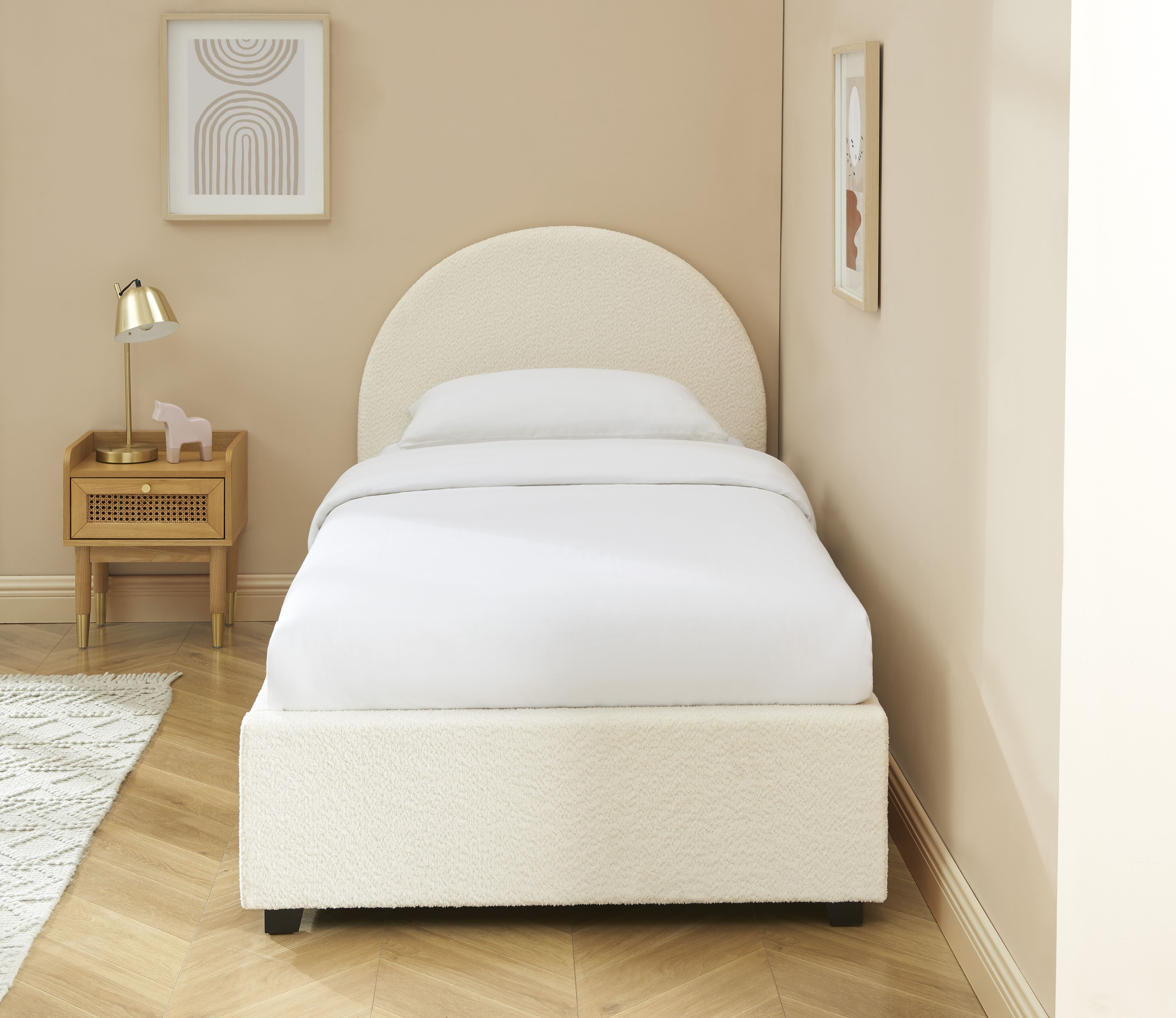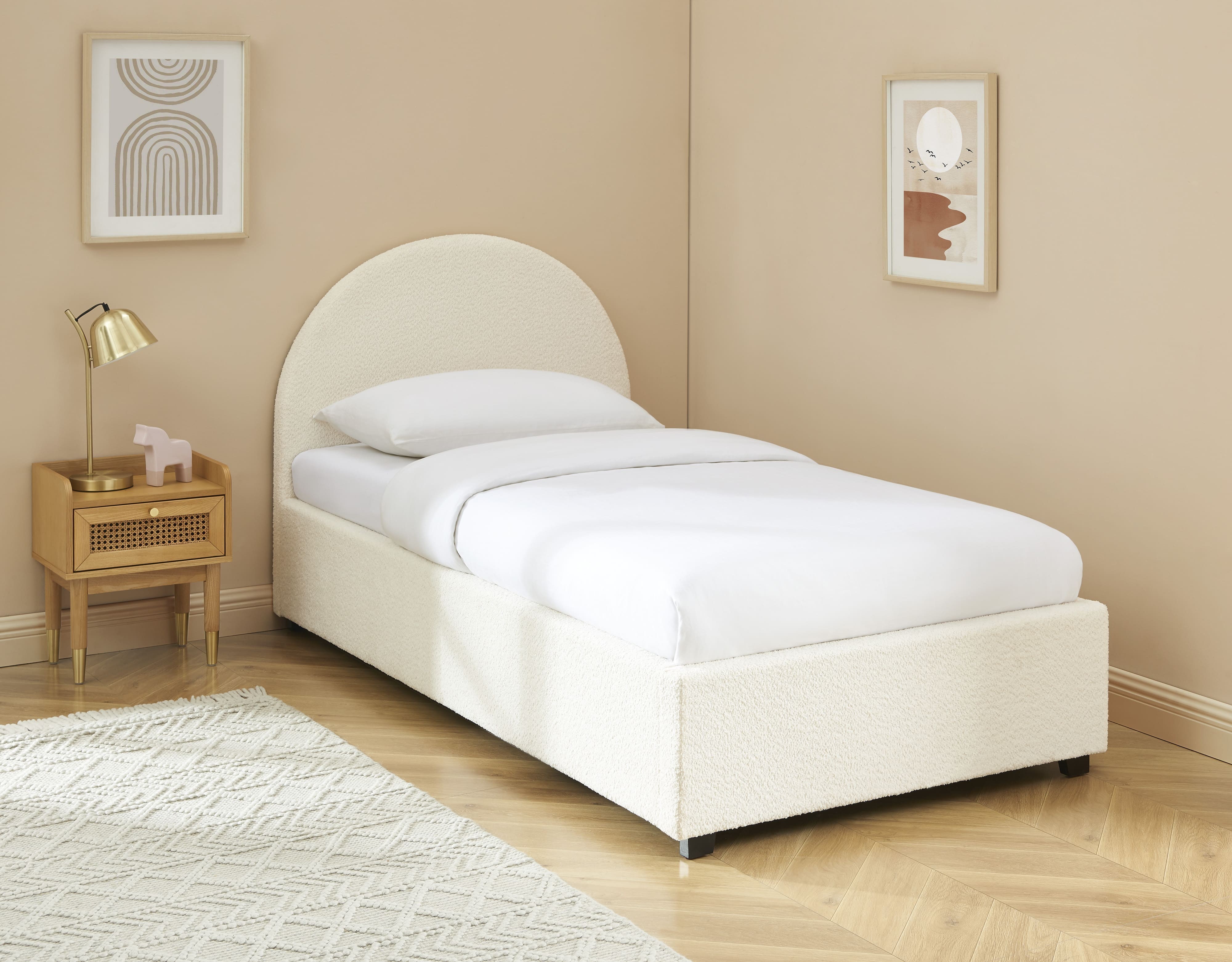 Sie sind auf der Suche nach einem Bettkasten für Ihr Kind? Dann sollten Sie sich unsere OLAF-Serie ansehen. Mit seinem Kopfteil und dem Rahmen aus Bouclé-Stoff passt dieses Bett perfekt in ein Mädchen- oder Jungenzimmer. Die trendige Farbe ecru wird Ihrem Kind sicher gefallen!