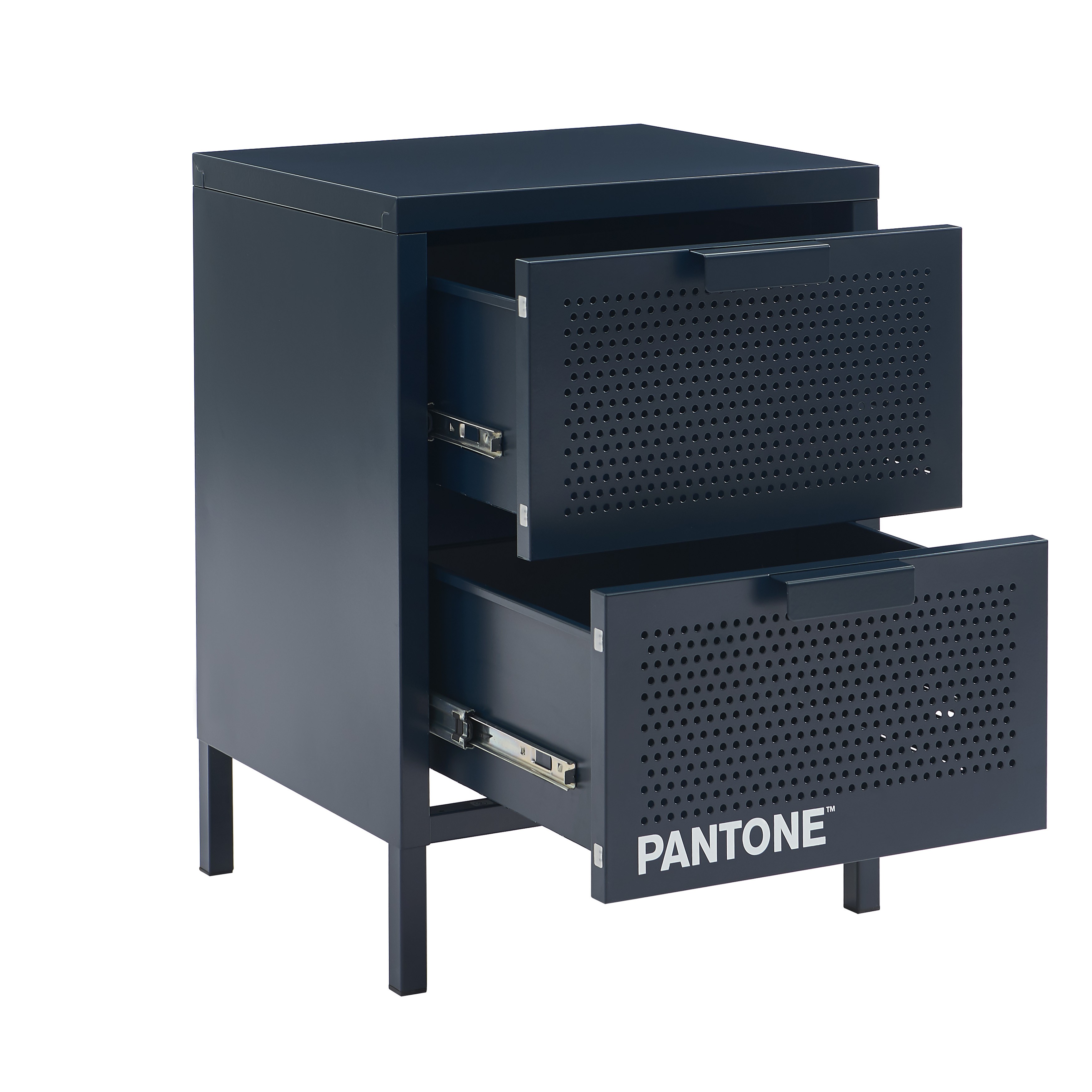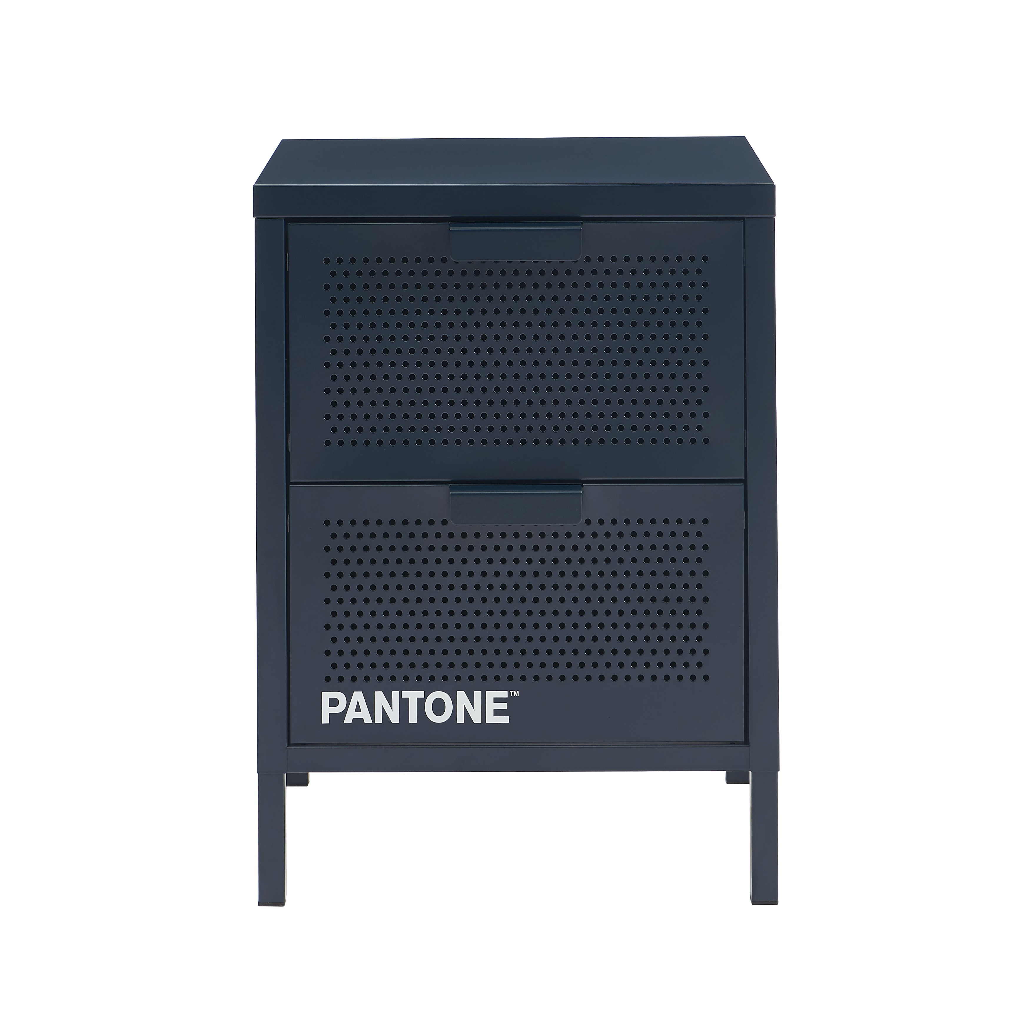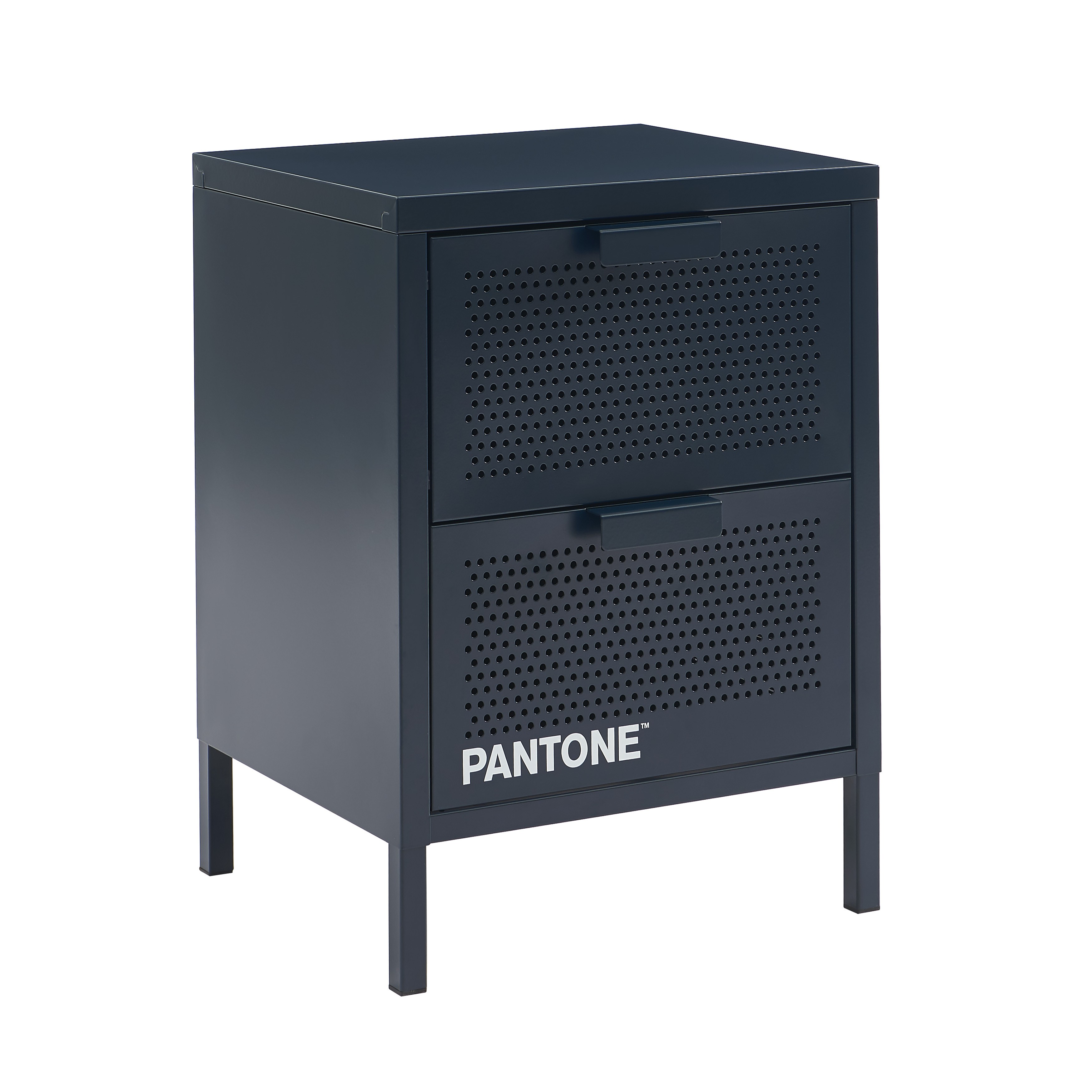 Nachttisch PANTONE aus nachtblauem Metall mit zwei Schubladen, 40 cm