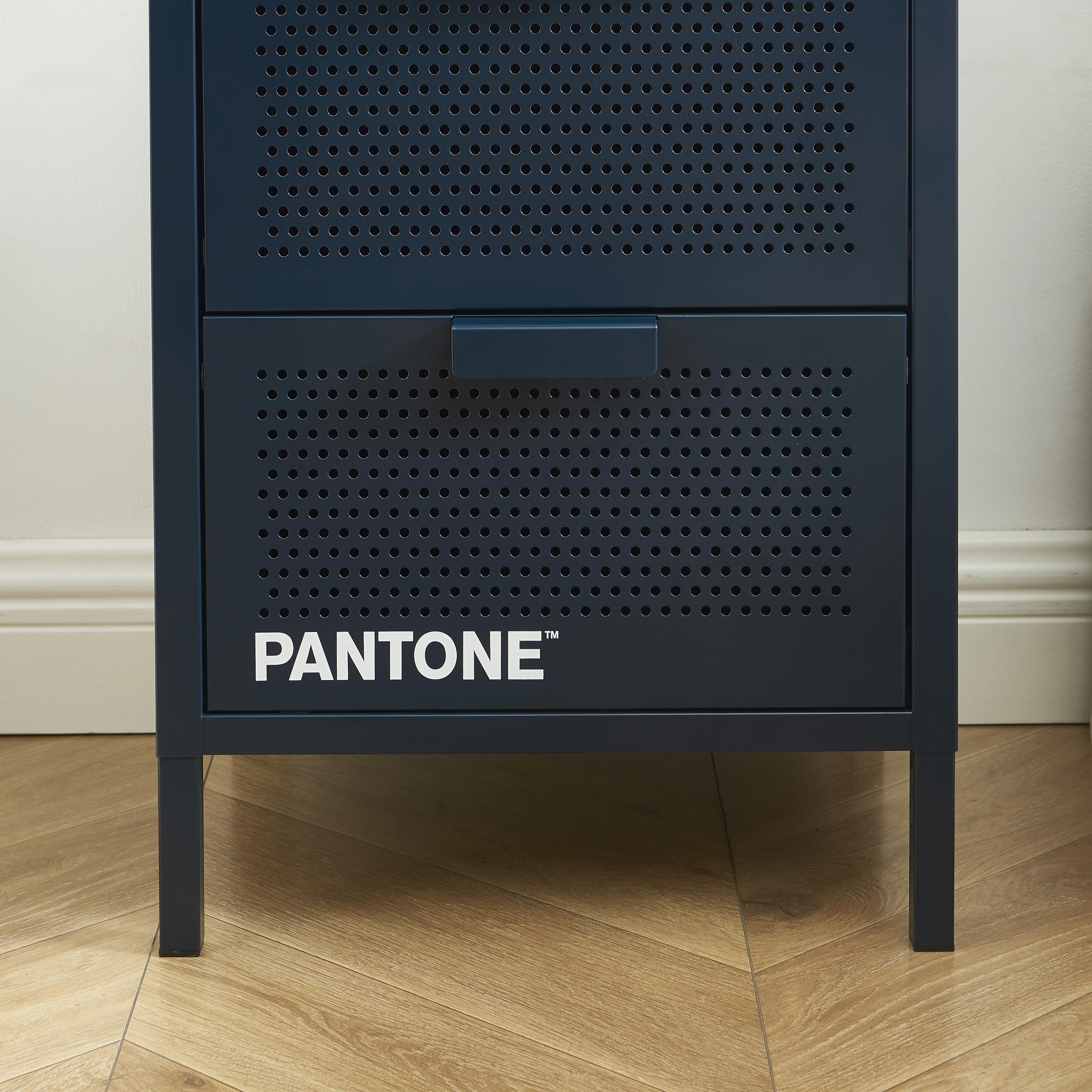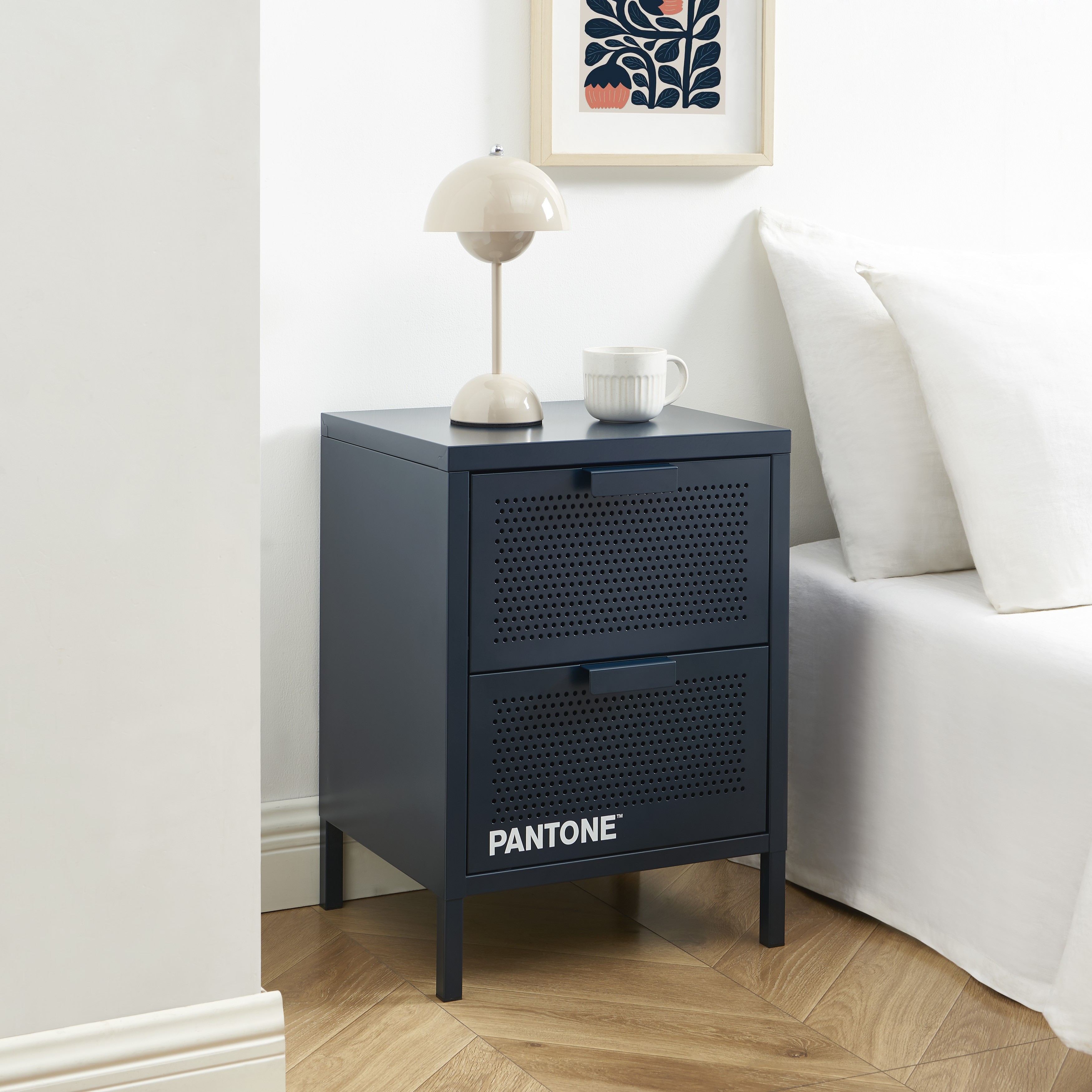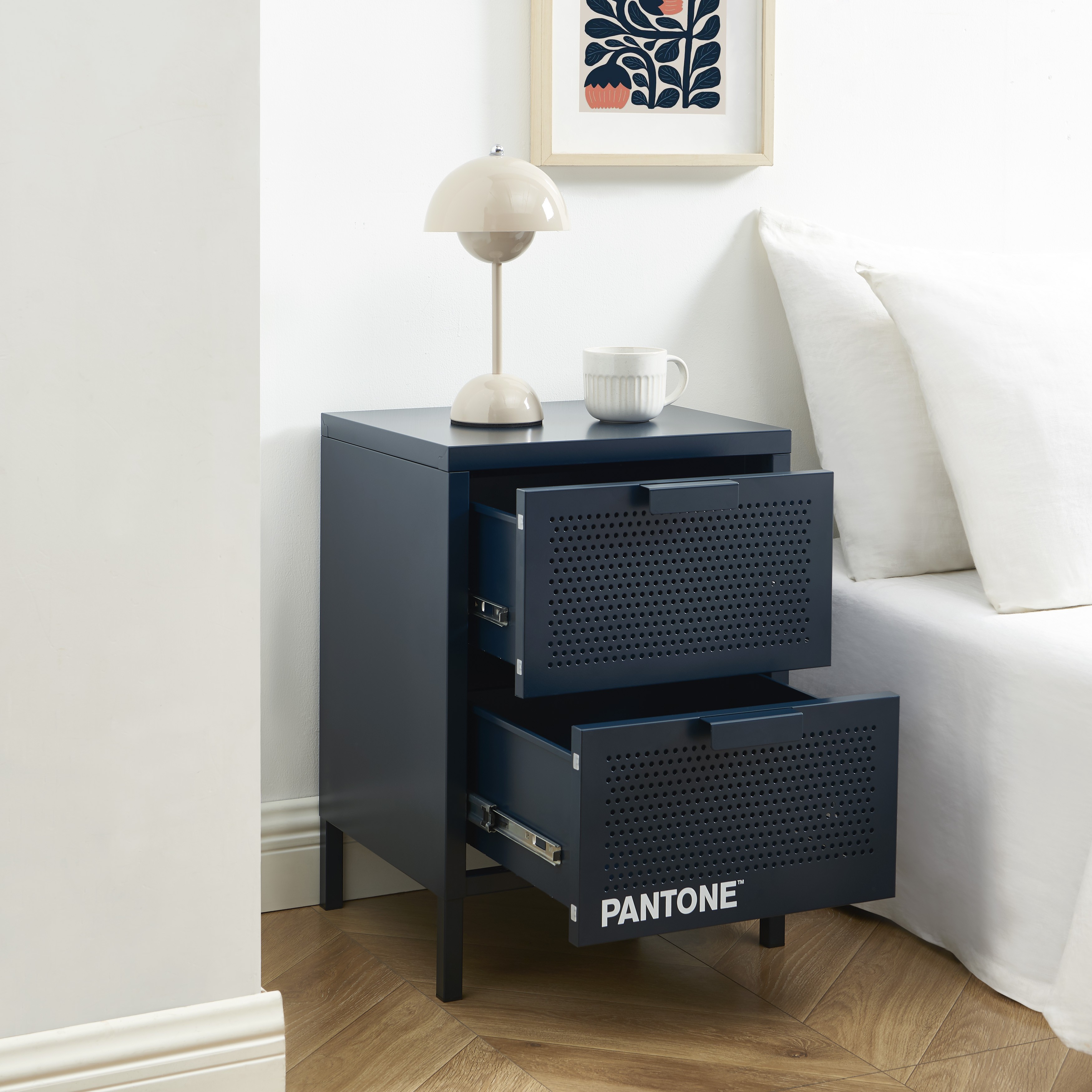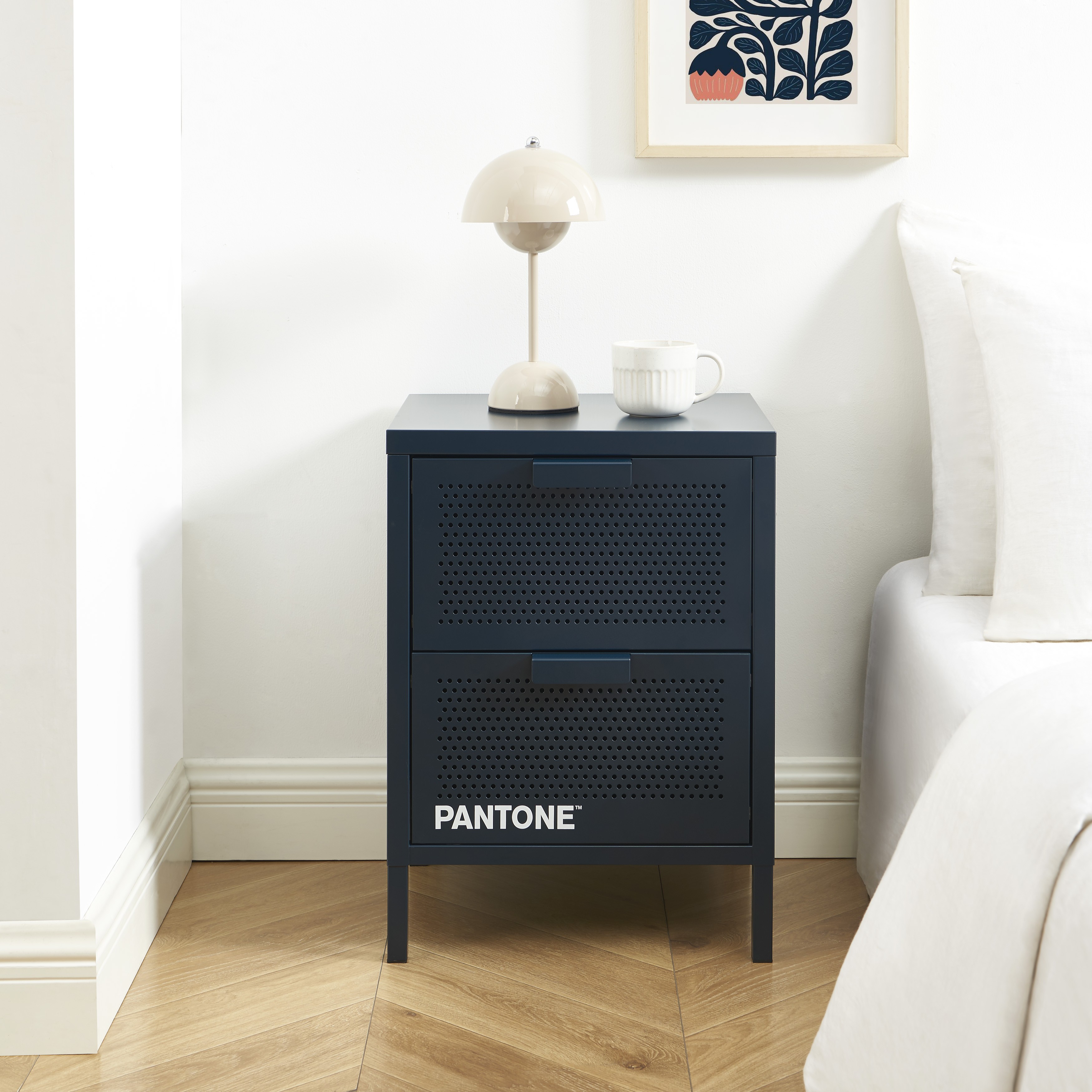 Nachttisch PANTONE aus nachtblauem Metall mit zwei Schubladen, 40 cm