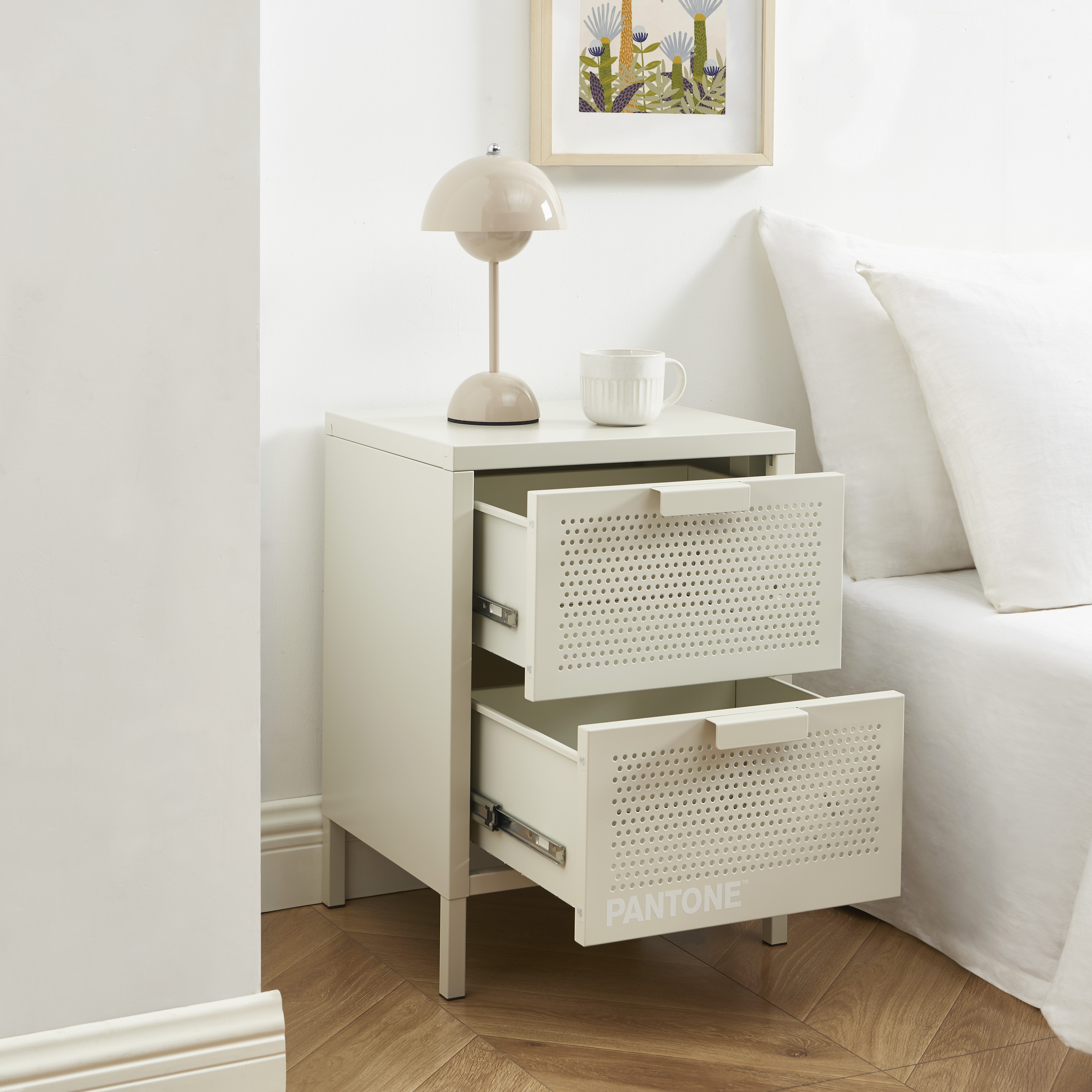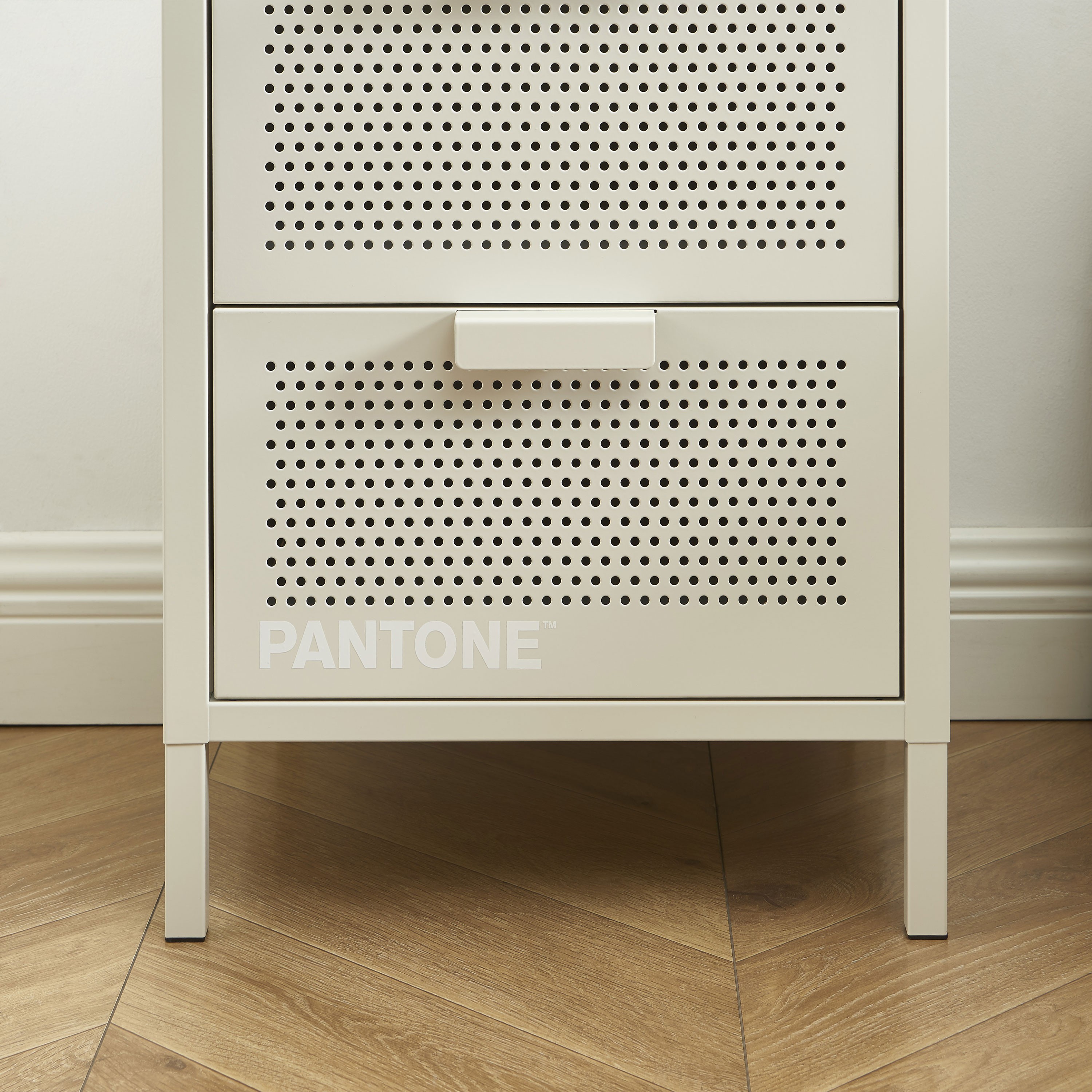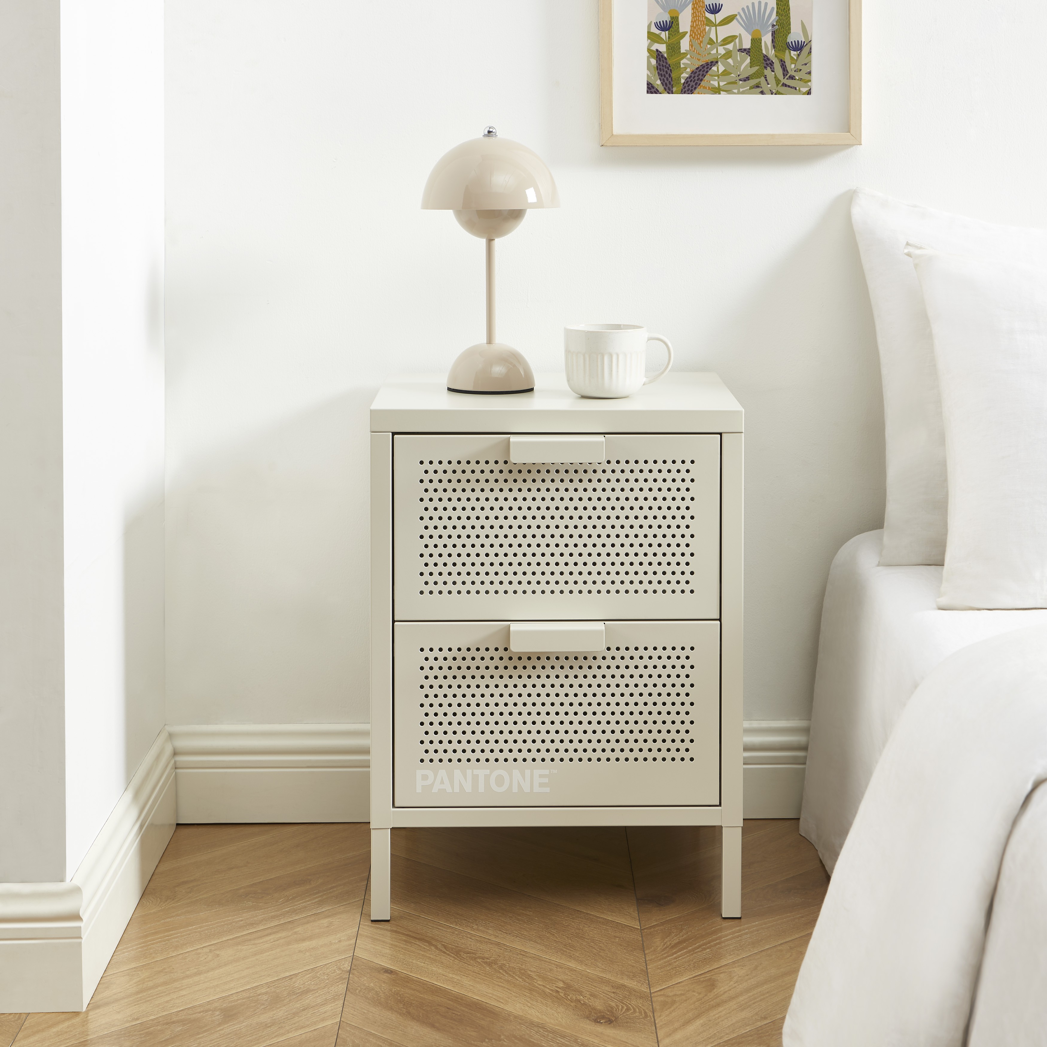 Verleihen Sie Ihrem Interieur Pepp und schaffen Sie gleichzeitig praktischen Stauraum für den Alltag mit dem Nachttisch PANTONE mit zwei Schubladen.