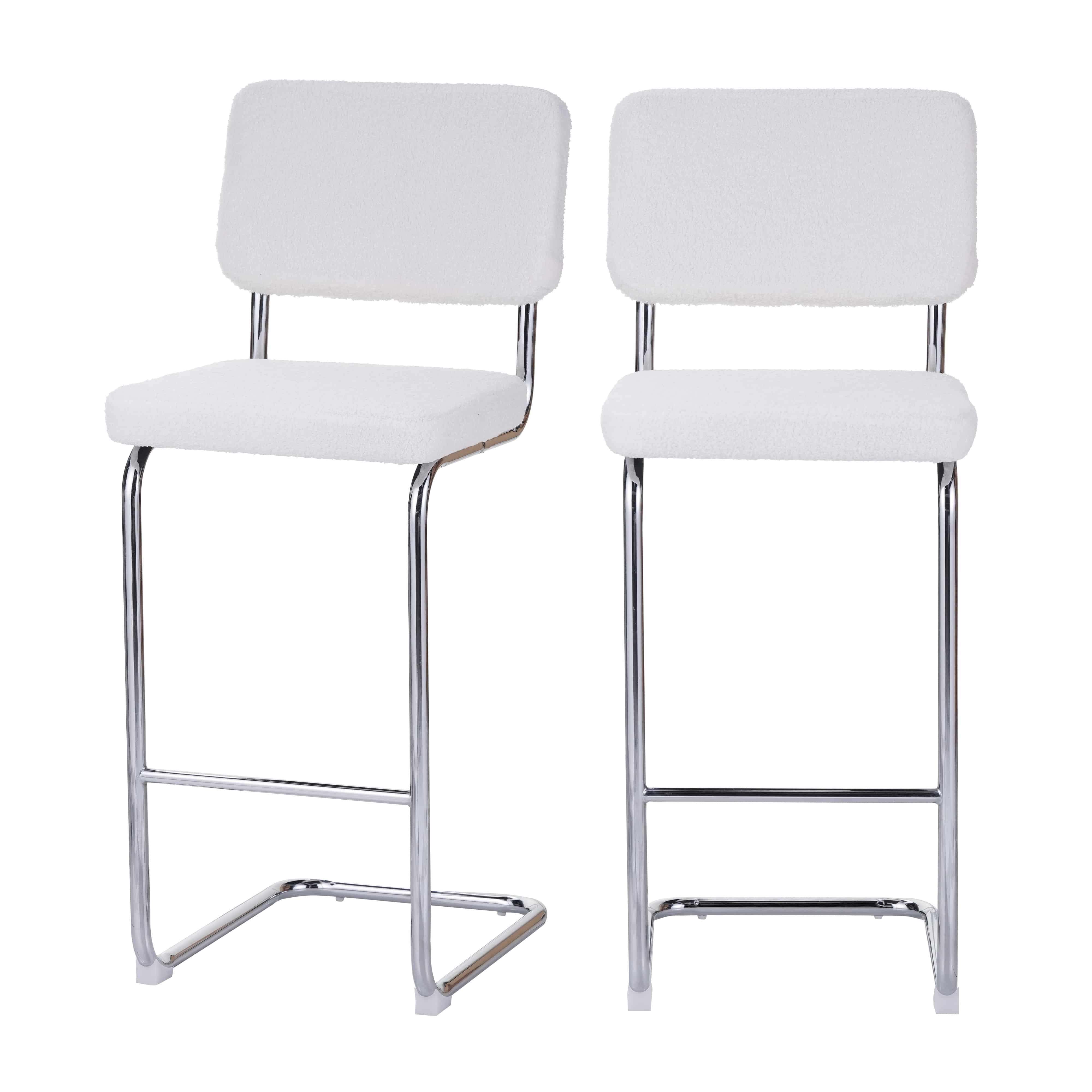 Set mit 2 Barhockern JACK aus weißem Bouclé-Stoff, H75 cm