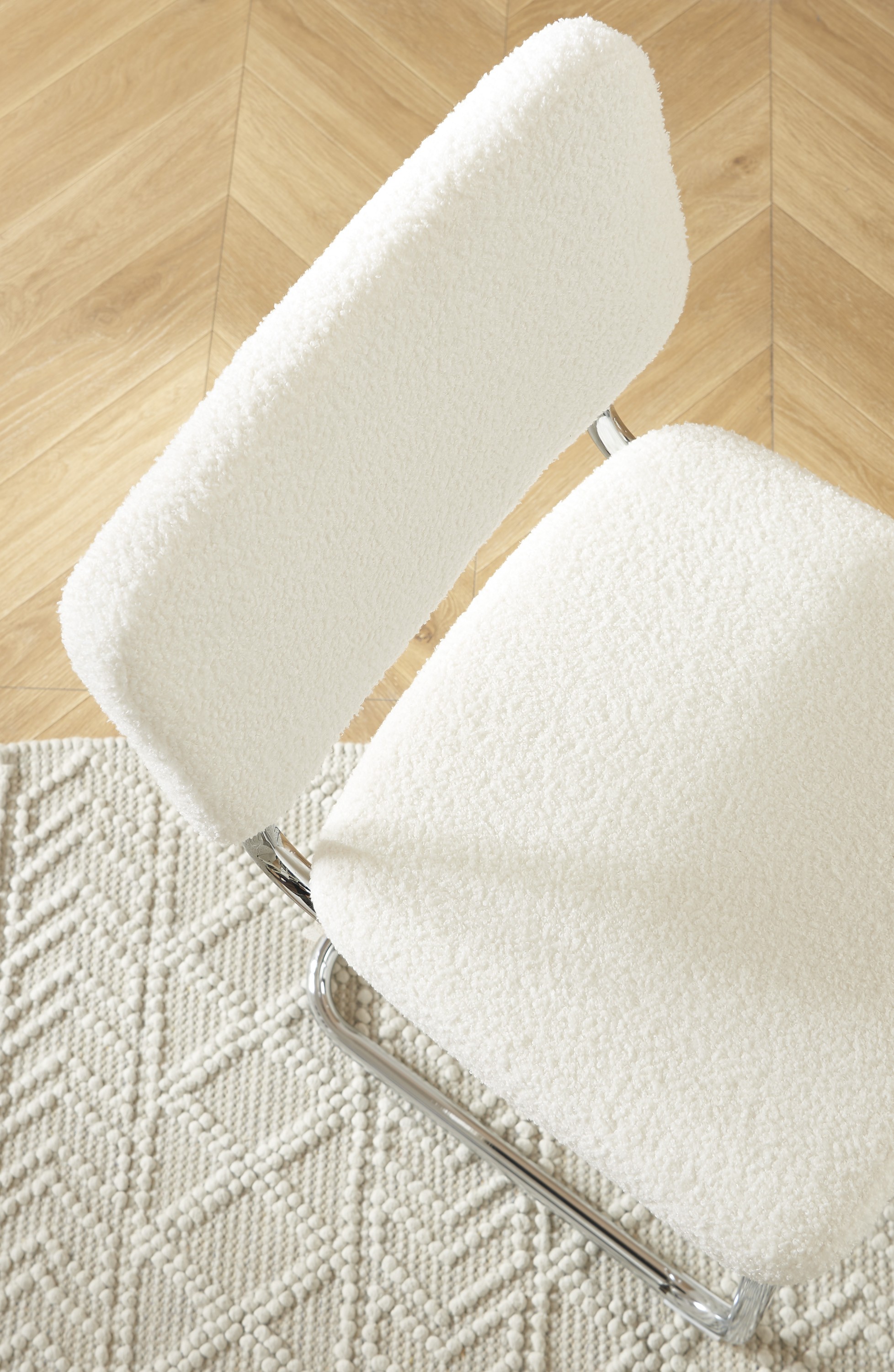 Bouclé-Stoff ist besonders beliebt wegen seiner warmen Ausstrahlung und seiner einzigartigen Textur, die einen subtilen Kontrast zur Modernität des Metalls bildet. Diese Materialkombination verleiht den JACK-Hockern einen zeitlosen Stil, der sich harmonisch in ein modernes, skandinavisches oder sogar minimalistisches Ambiente einfügt.