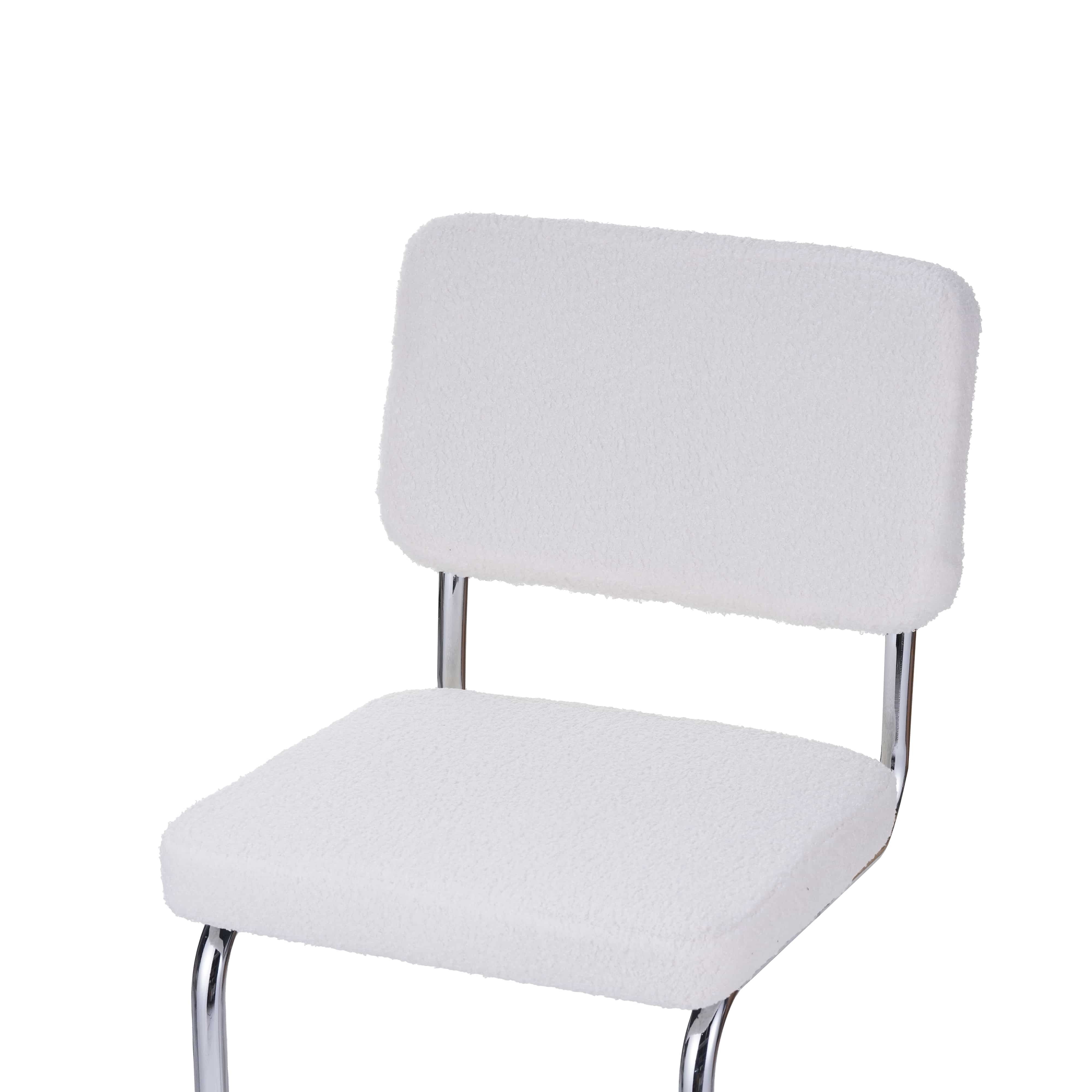 Verleihen Sie Ihrem Interieur mit dem 2er-Set Hocker JACK einen modernen Touch. Diese Hocker vereinen Komfort und Design und zeichnen sich durch ihre gepolsterte Sitzfläche und Rückenlehne aus, die mit einem weichen, trendigen weißen Bouclé-Stoff bezogen sind. Mit ihren klaren Linien und ihrem strukturierten Bezug sind sie ideal für eine moderne und gemütliche Küche oder Bar.