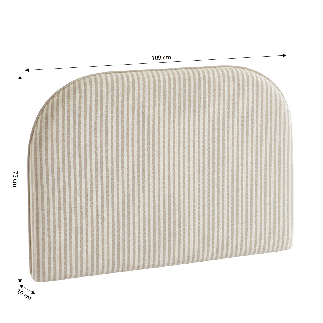 Das Kopfteil LOUISON zeichnet sich durch seinen Bezug aus gestreiftem Leinenstoff aus, ein schlichtes Design, das sich perfekt in ein Schlafzimmer im natürlichen, bohemischen oder klassischen Stil einfügt. Mit seiner Struktur aus Holz und Sperrholz ist das Kopfteil LOUISON auf Langlebigkeit ausgelegt. Mit einer Größe von 109 cm passt es problemlos zu Einzelbetten und verleiht Ihrem Schlafzimmer ein gepflegtes und harmonisches Finish. Einfache Montage Dieses Kopfteil wurde entwickelt, um Ästhetik und Funktionalität zu verbinden. Es ist einfach zu montieren und ermöglicht es Ihnen, die Atmosphäre Ihres Schlafzimmers schnell zu verändern.