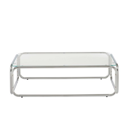 Table basse MAGGY verre trempé transparent et structure en chrome