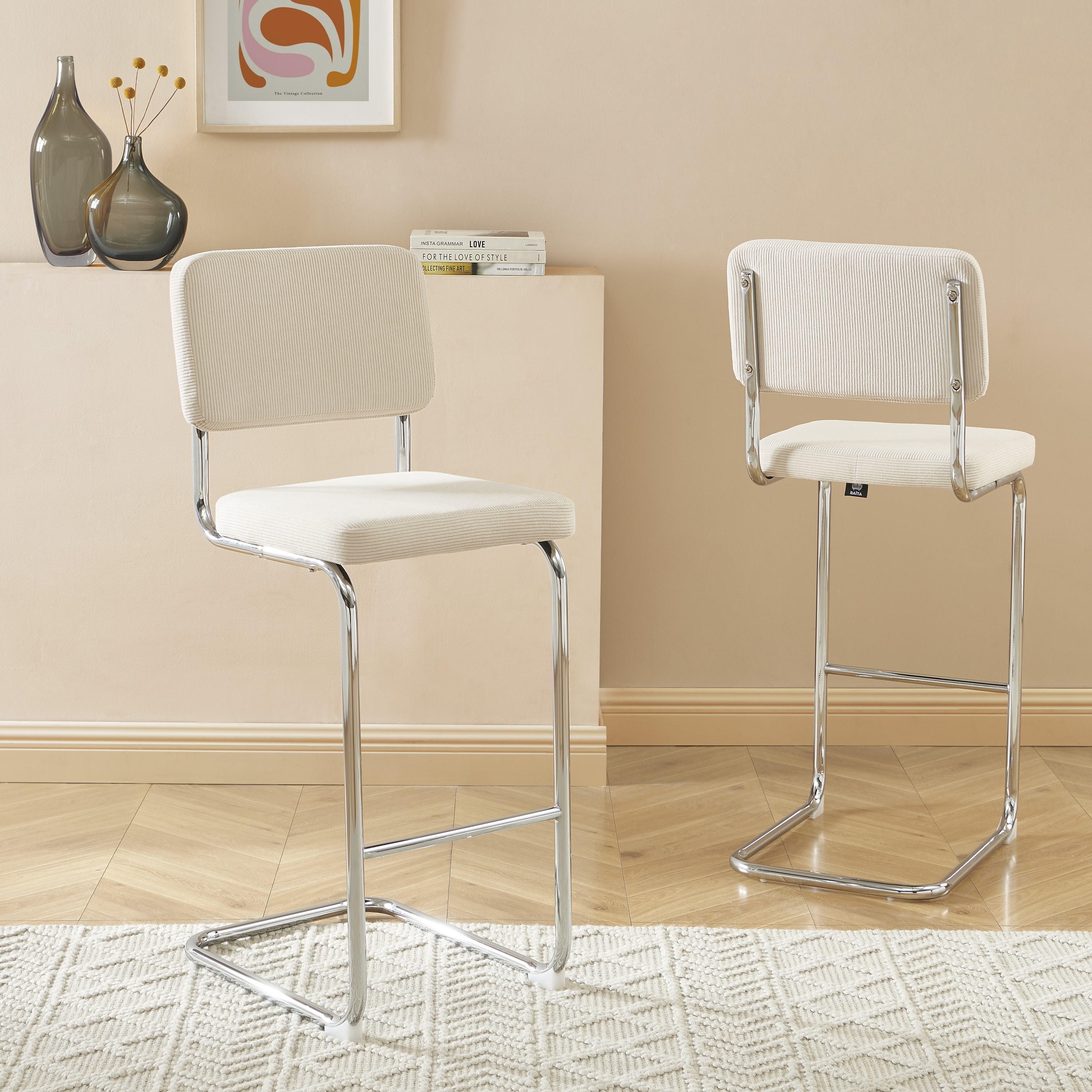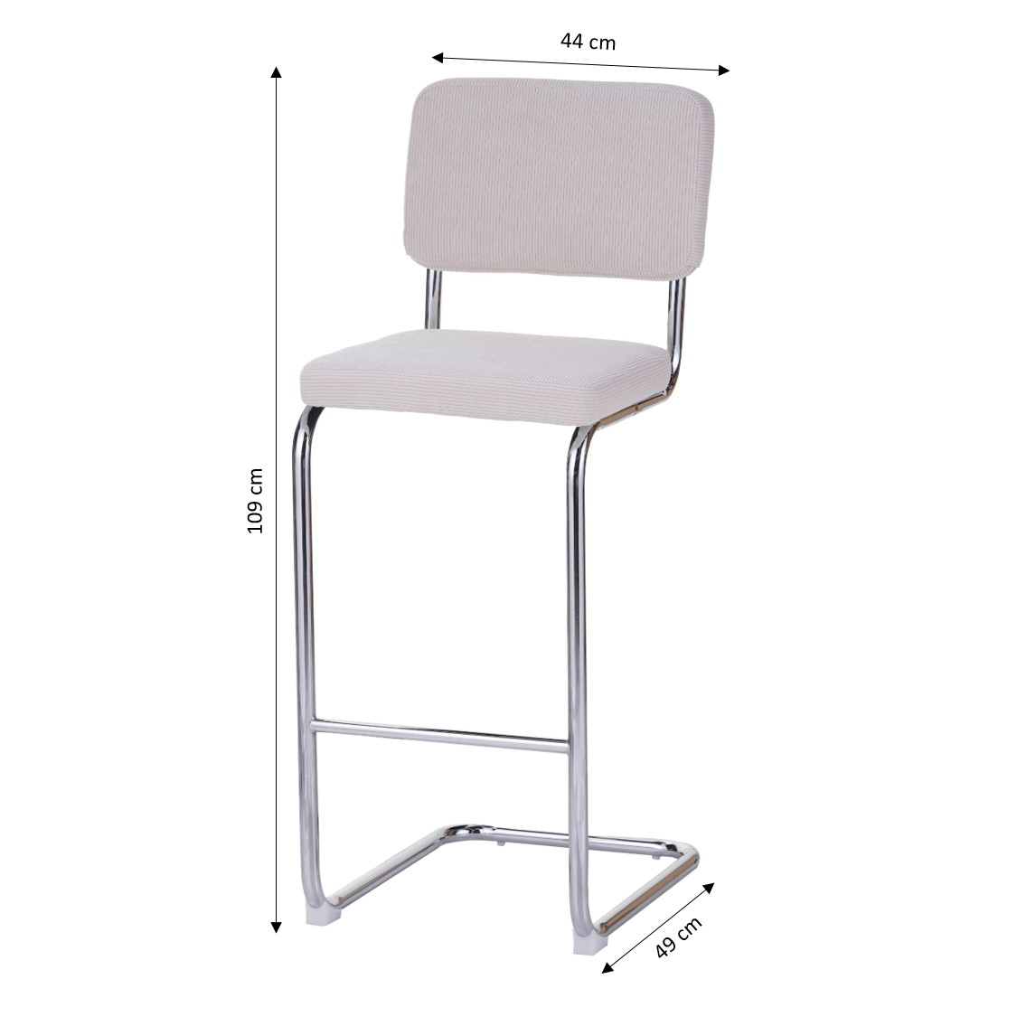 Lot de 2 tabourets JACK en velours côtelé beige avec pieds métalliques