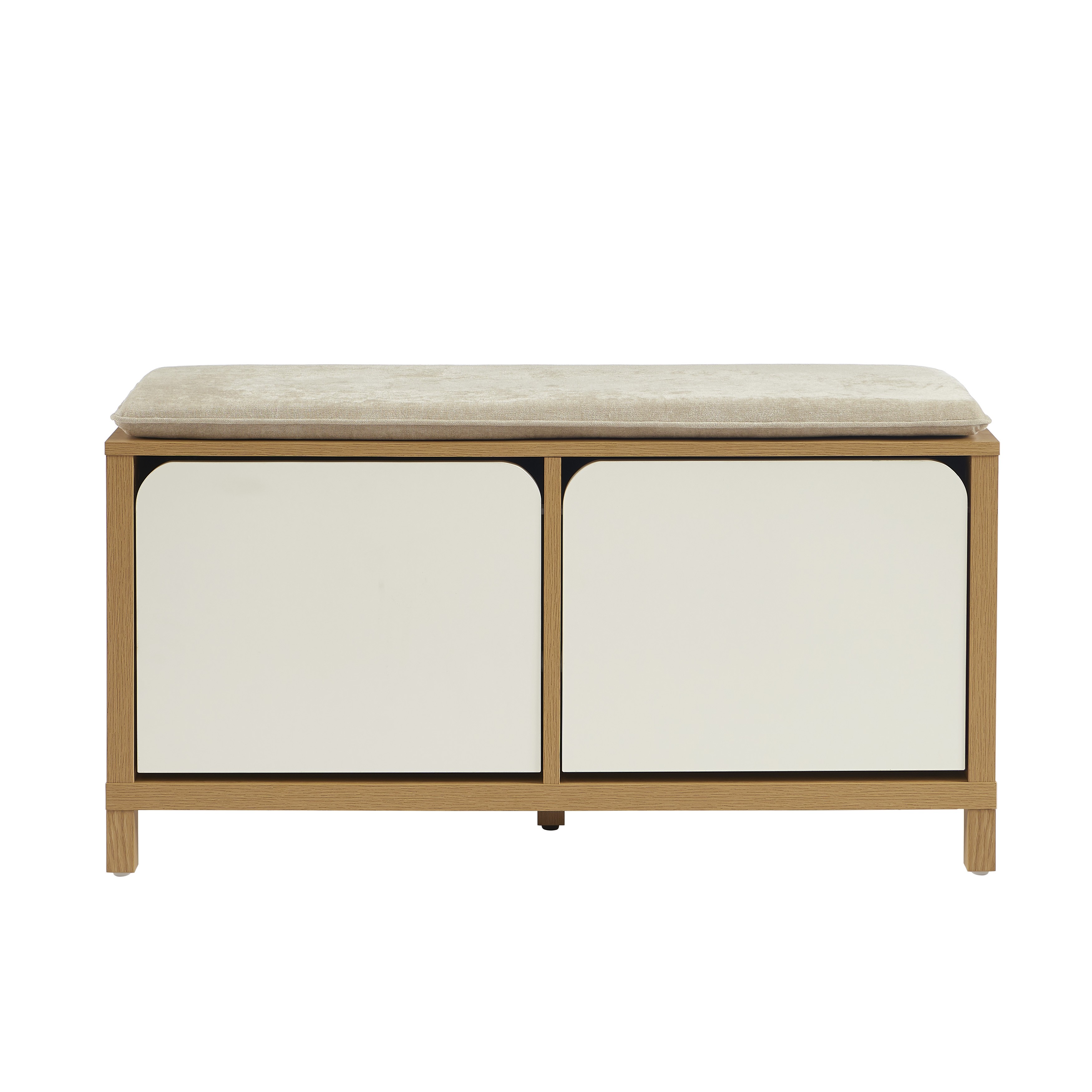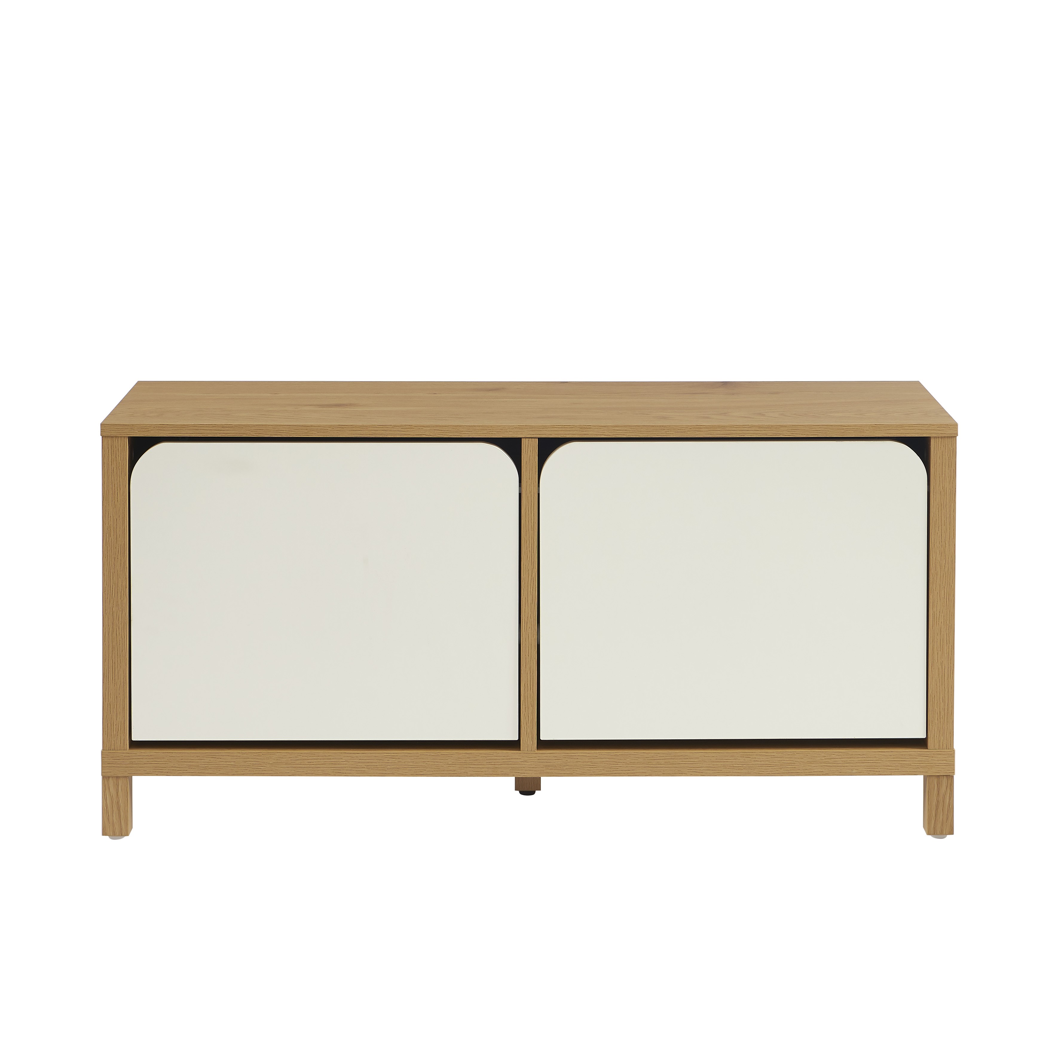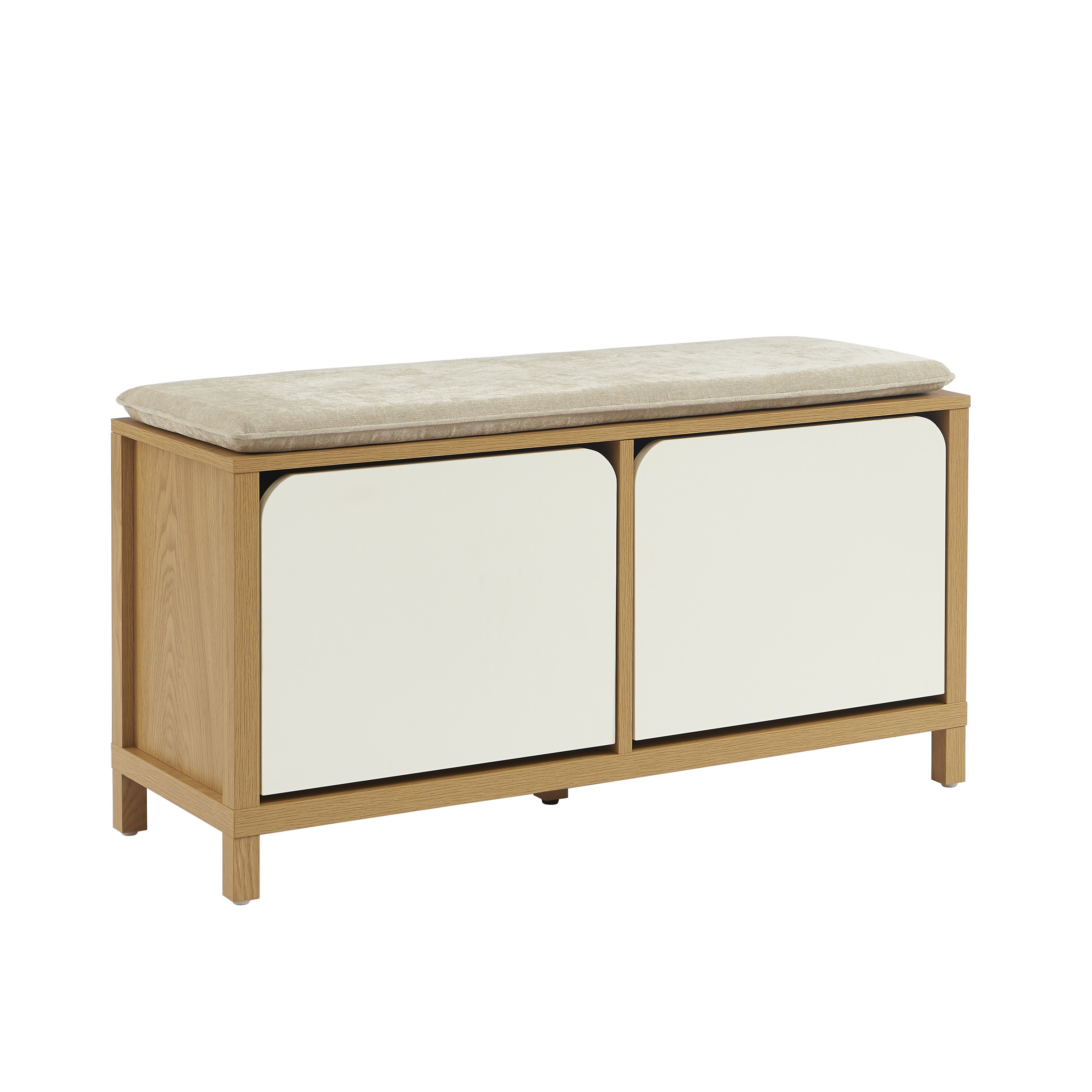Le banc à chaussures KILDA séduit par son style minimaliste et élégant. Son revêtement effet chêne naturel associé aux portes aux angles arrondis apporte une touche contemporaine et chaleureuse à votre intérieur.