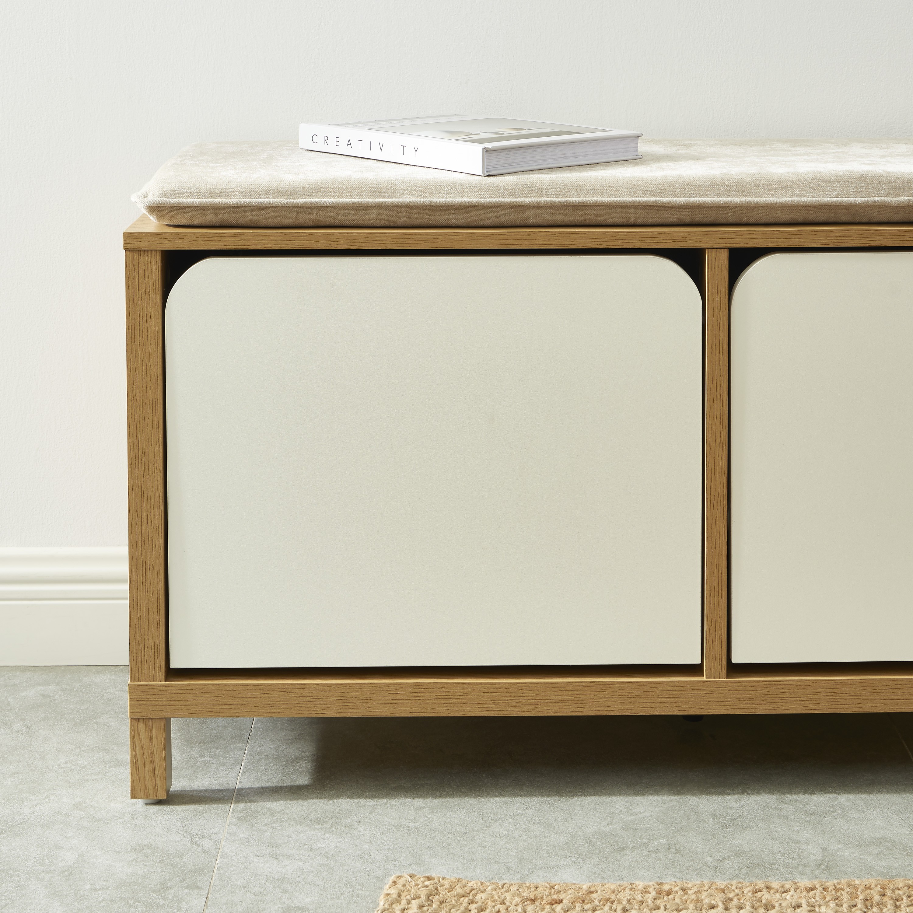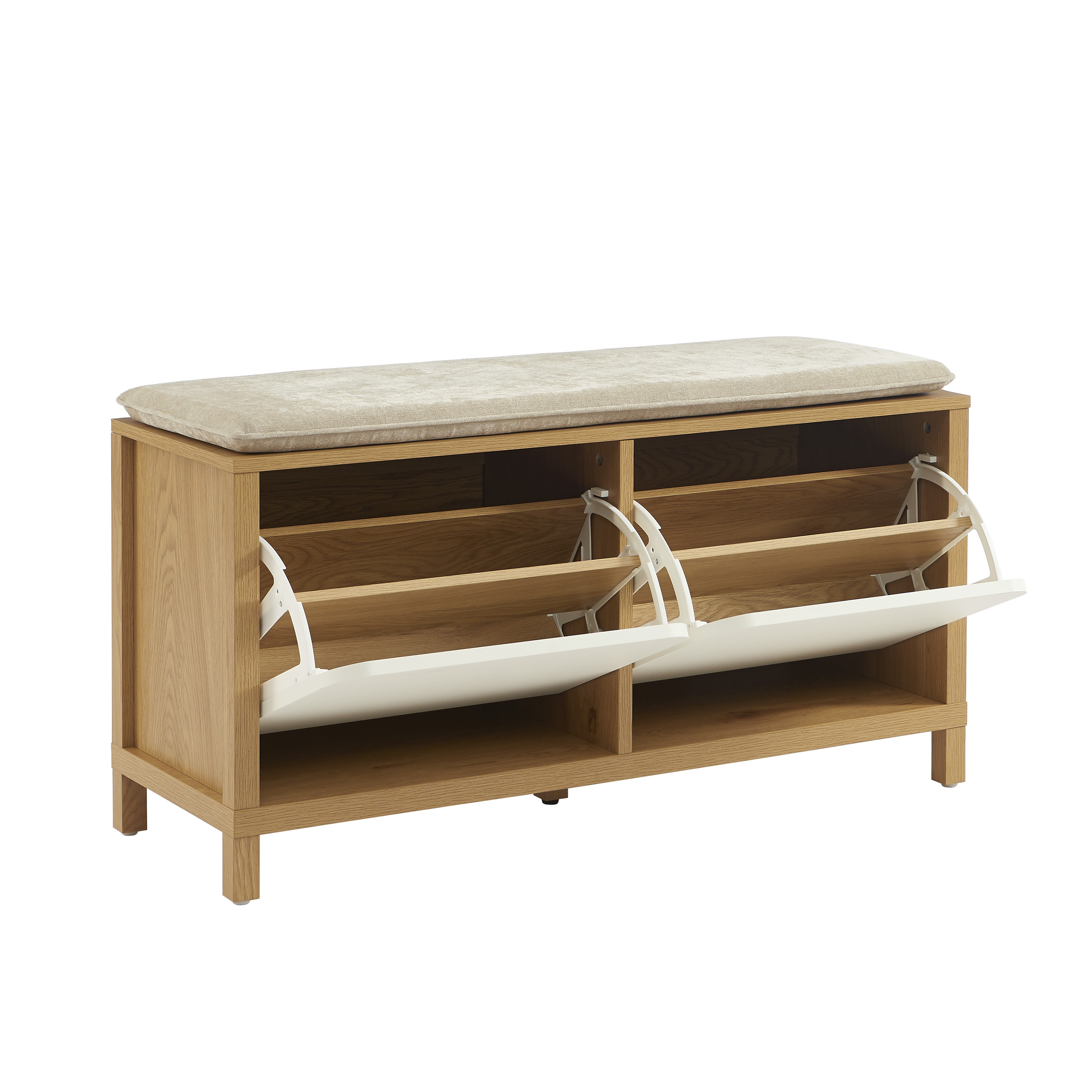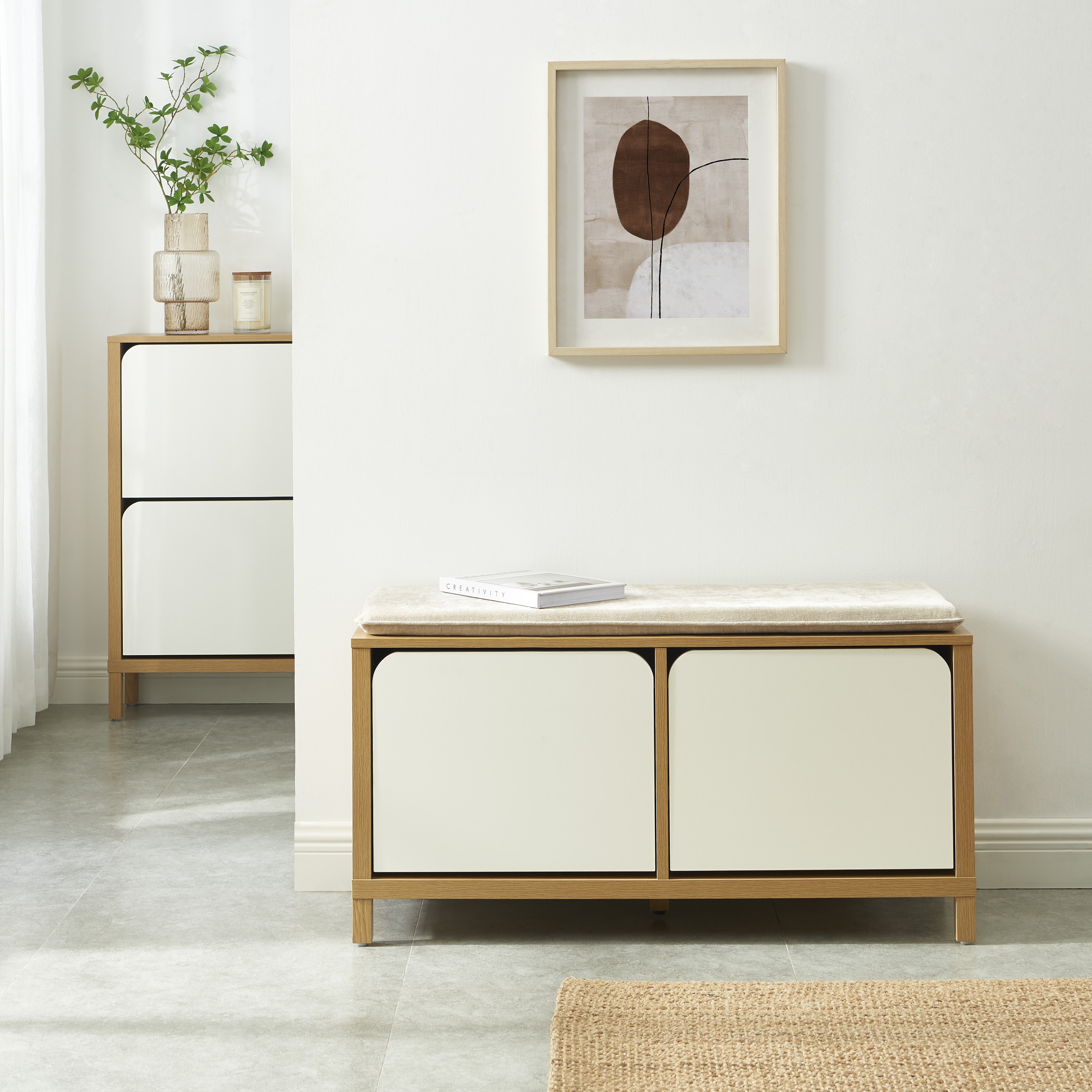Avec son effet chêne clair, son assise confortable et ses rangements discrets, le banc à chaussures KILDA combine style et praticité pour une entrée bien organisée.